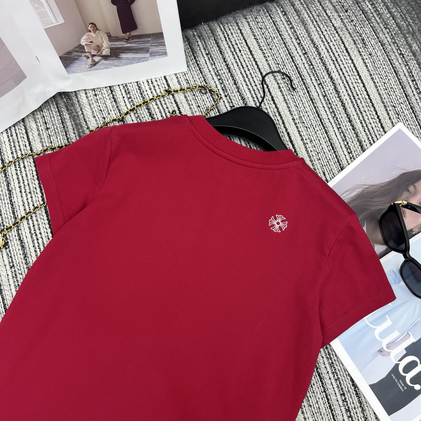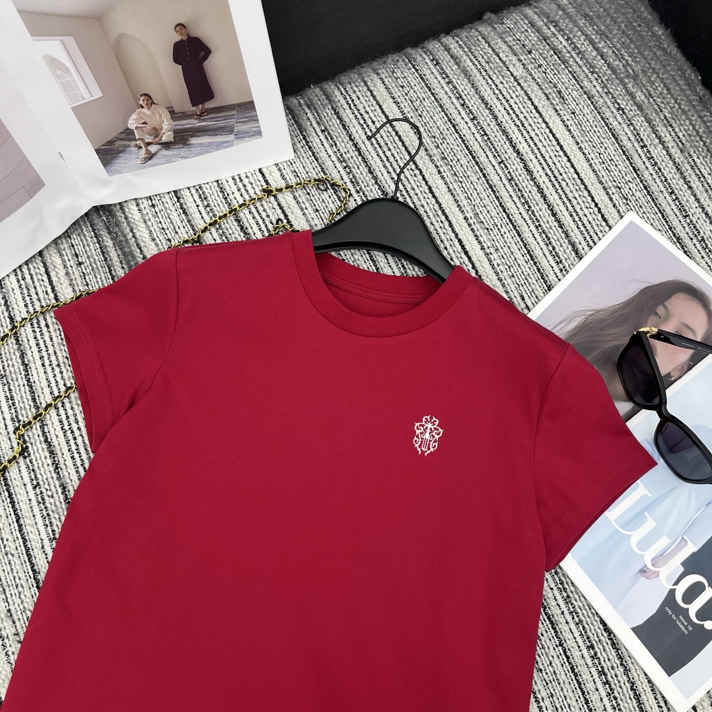 Details: Early Spring Cro Heart Logo Embroidery Short-sleeved Round-neck T-shirt in Three Colors, S, M, L Sizes. High-end Customization, Fine Craftsmanship