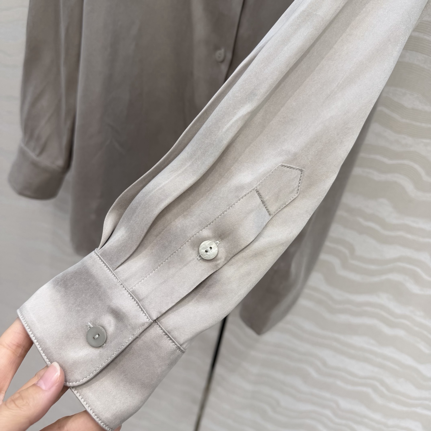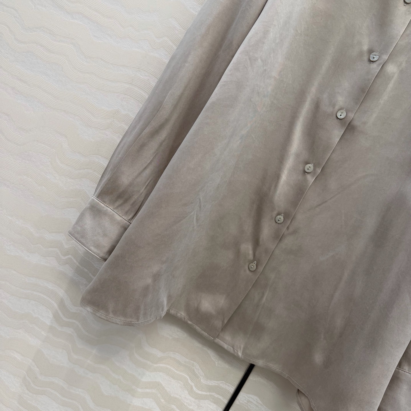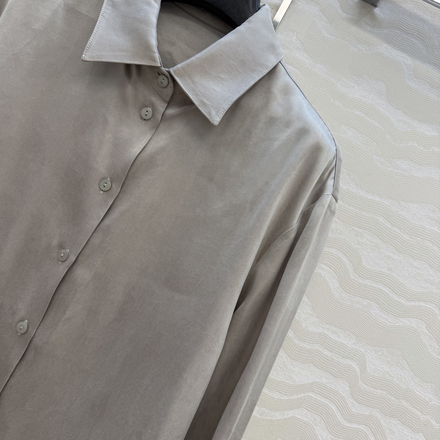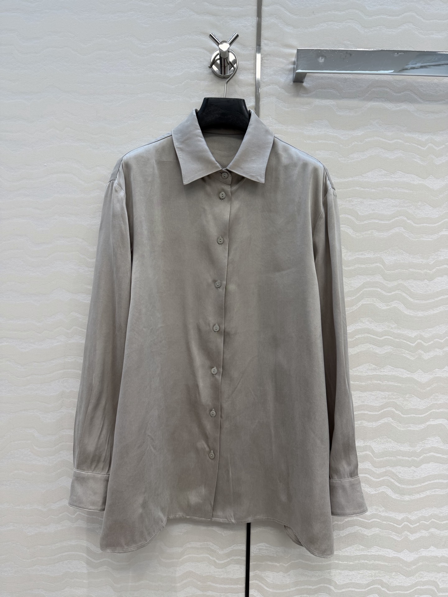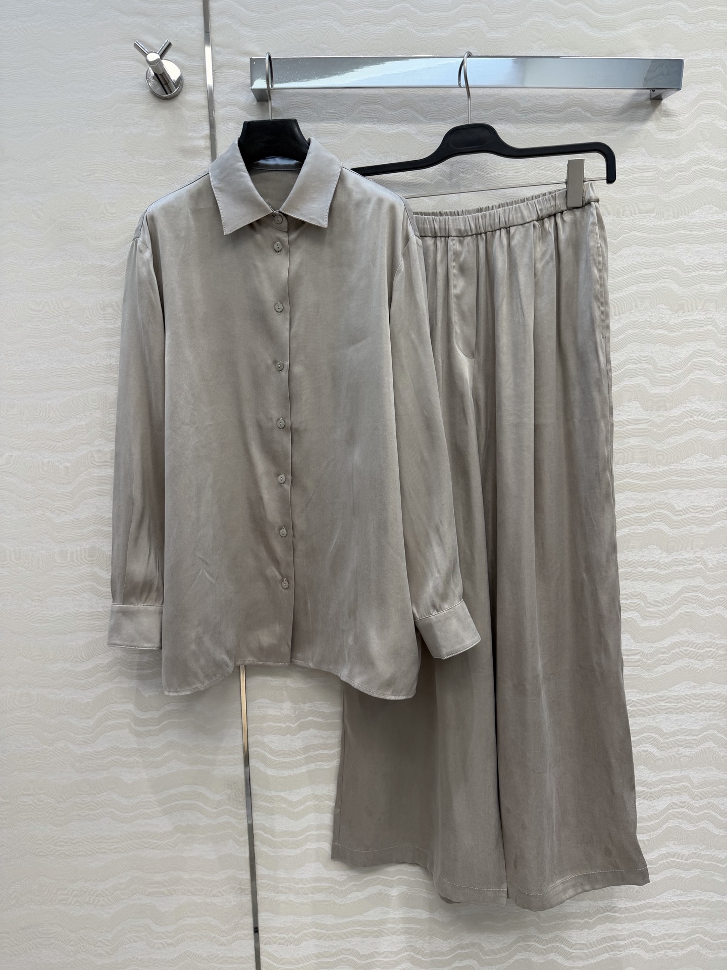 Details: Row-style minimalist silk shirt suit, suitable for pear-shaped figures.