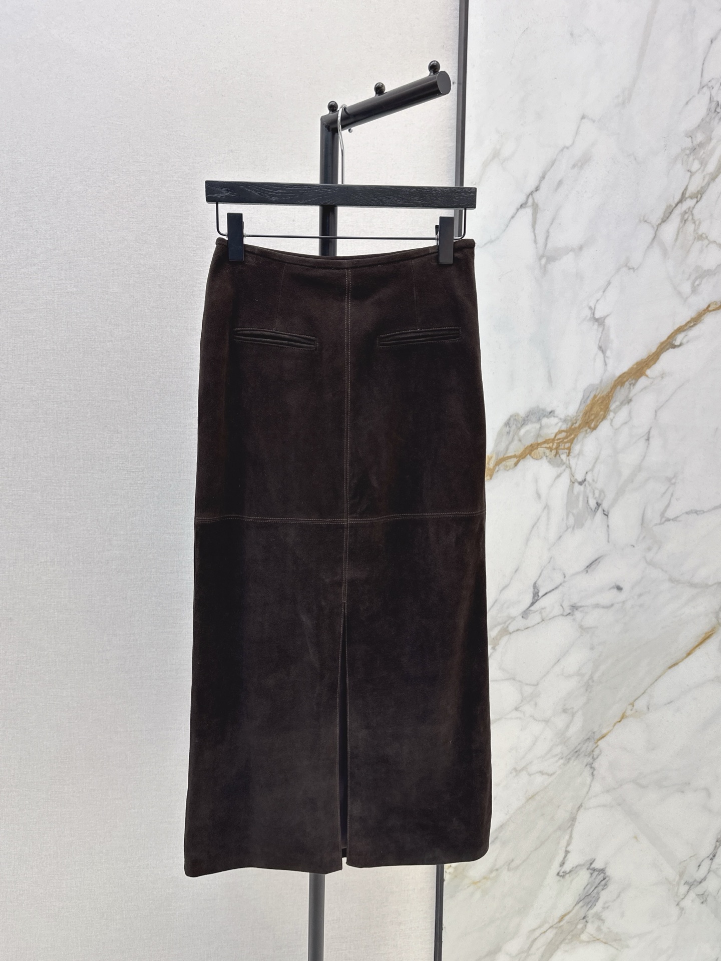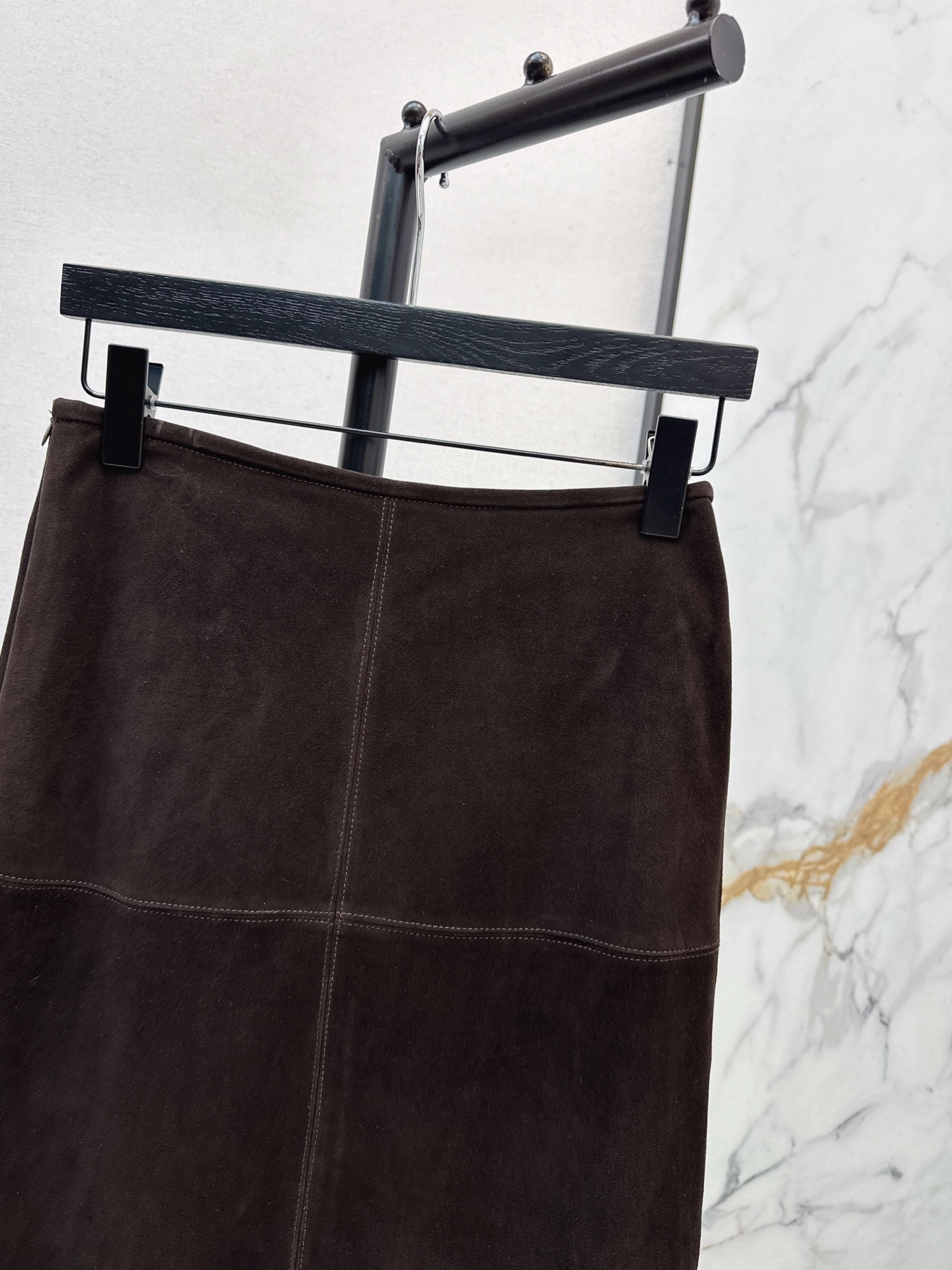 Details: Italian luxury suede leather long skirt, H - shape, elegant and fashionable, high - end customization, fine workmanship