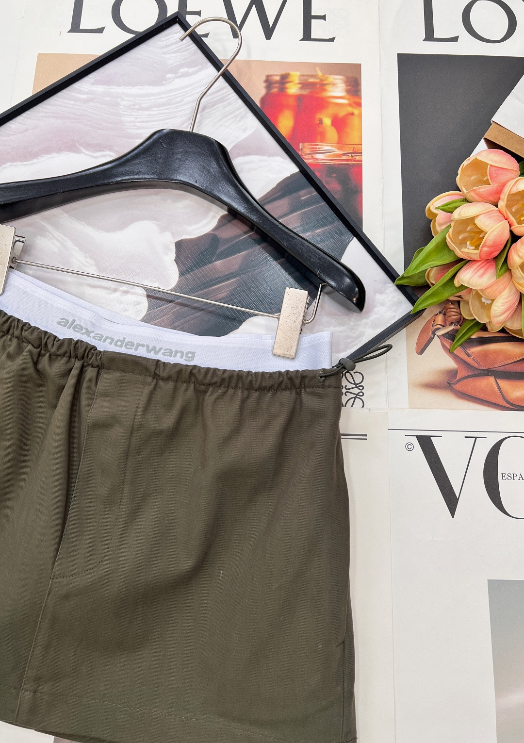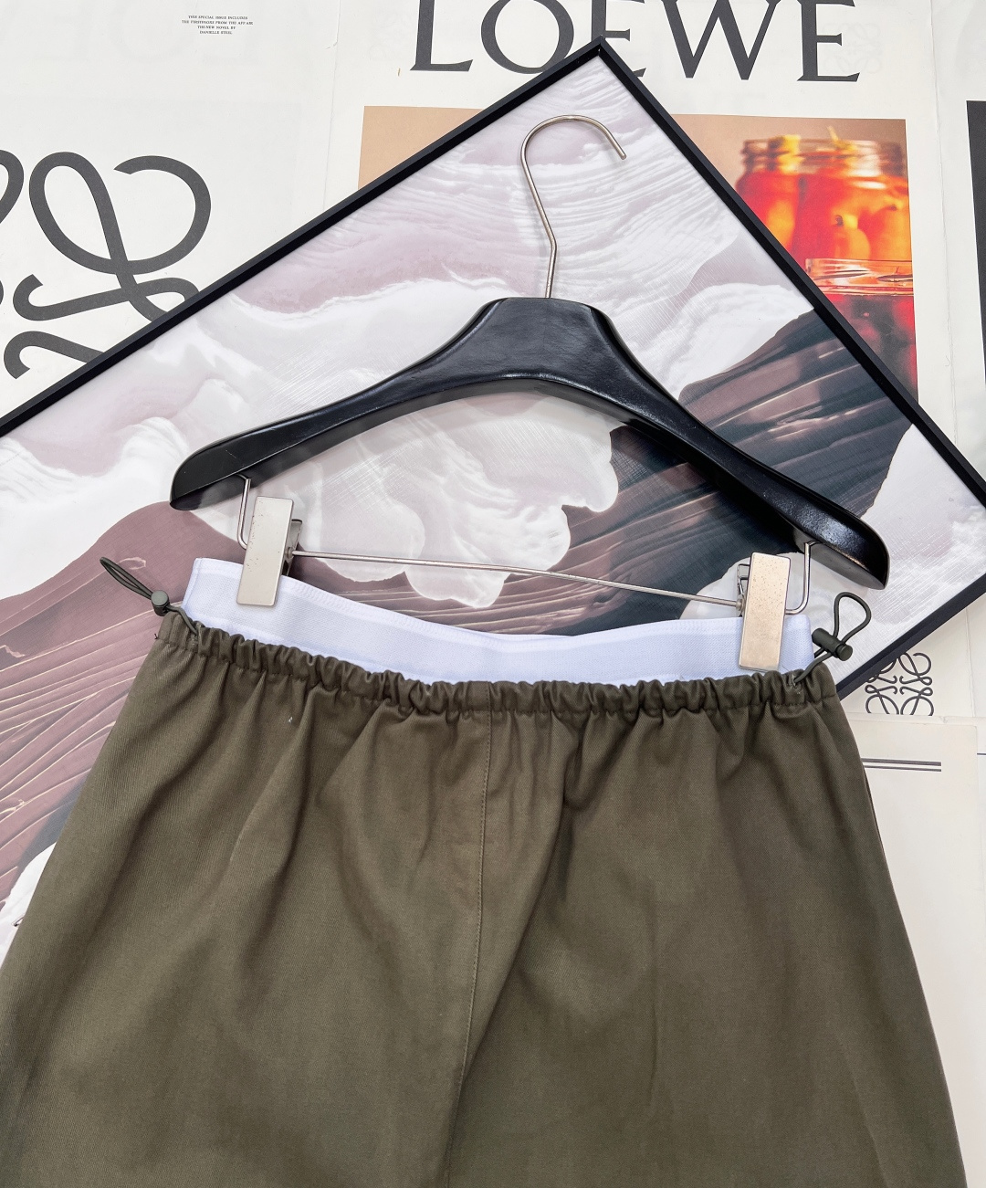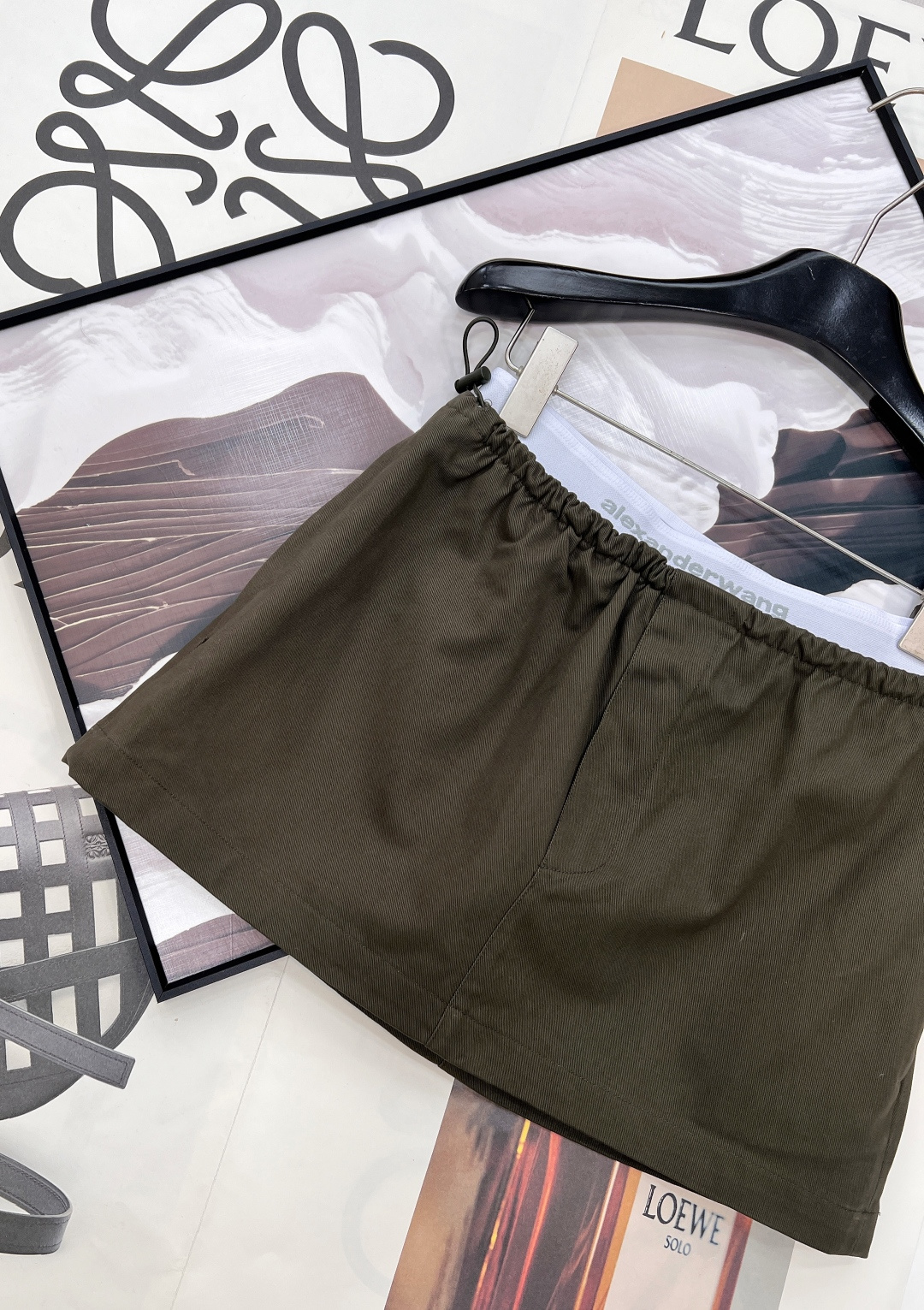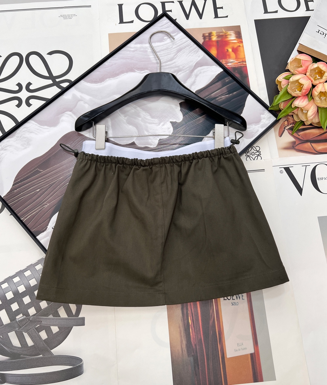 Details: Spring A-line skirt with elastic logo waist, matte fabric, hidden zipper, high-end custom, fine workmanship