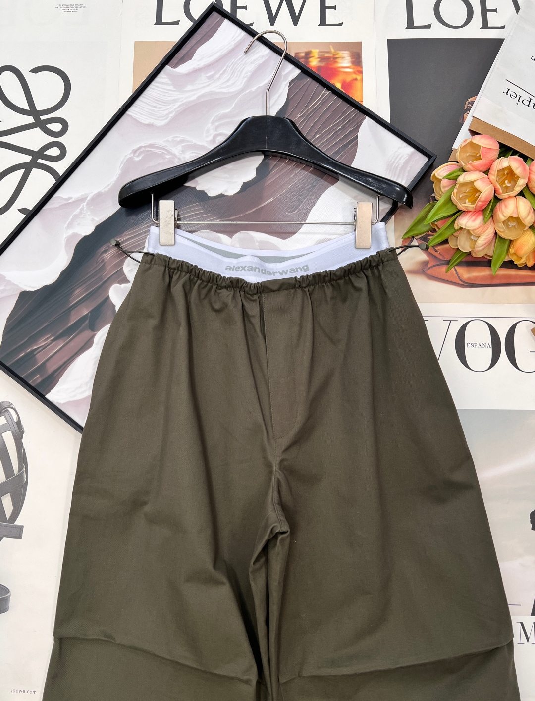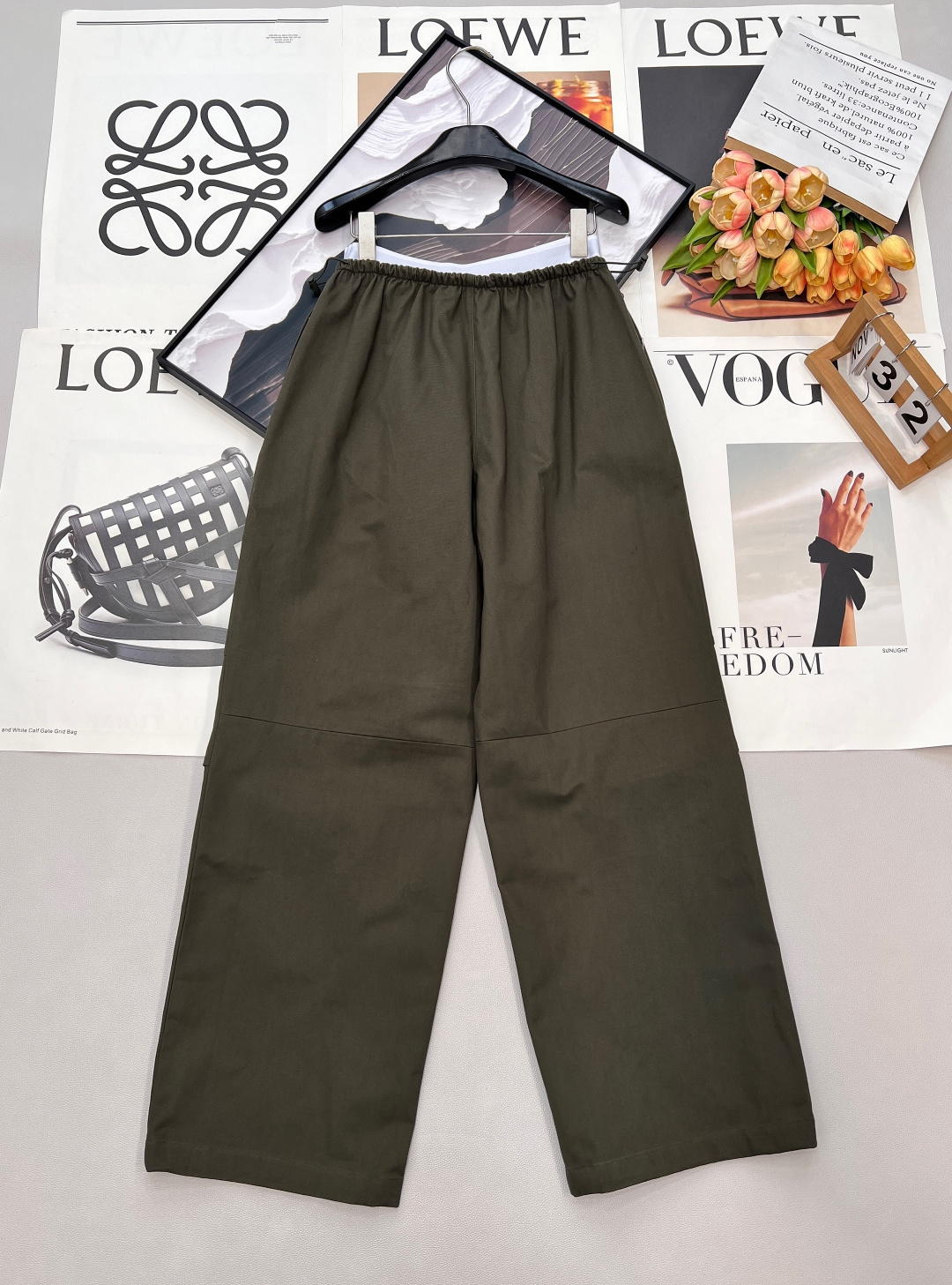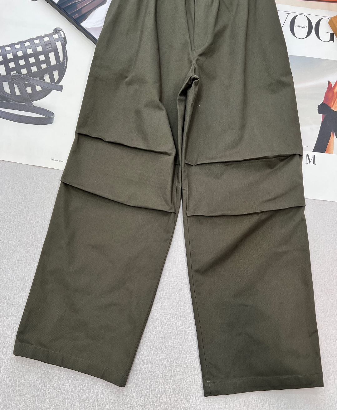 Details: Spring work pants with white-edge waist, two-tone, wide-leg, pleated, drawstring waist, high-end custom, fine workmanship