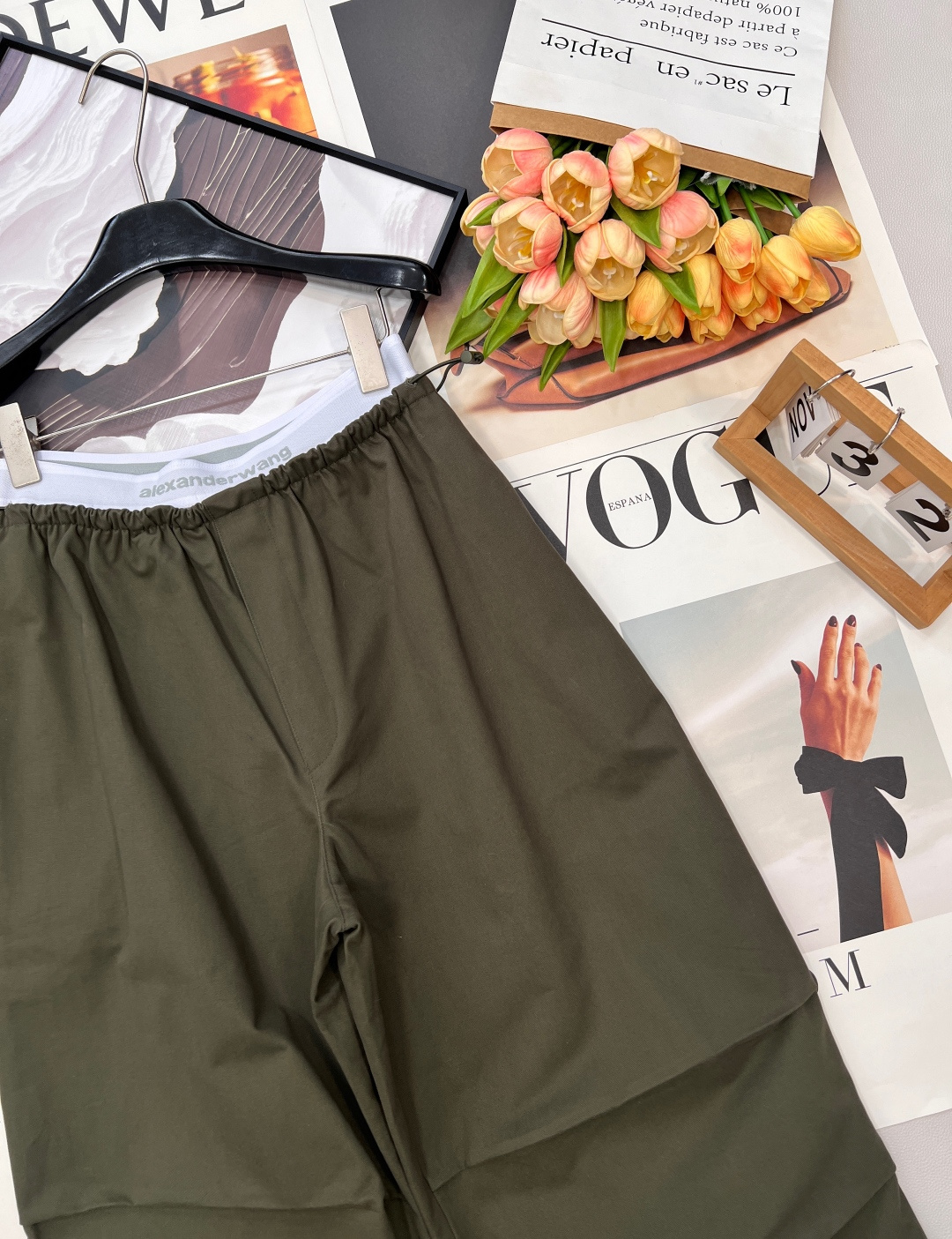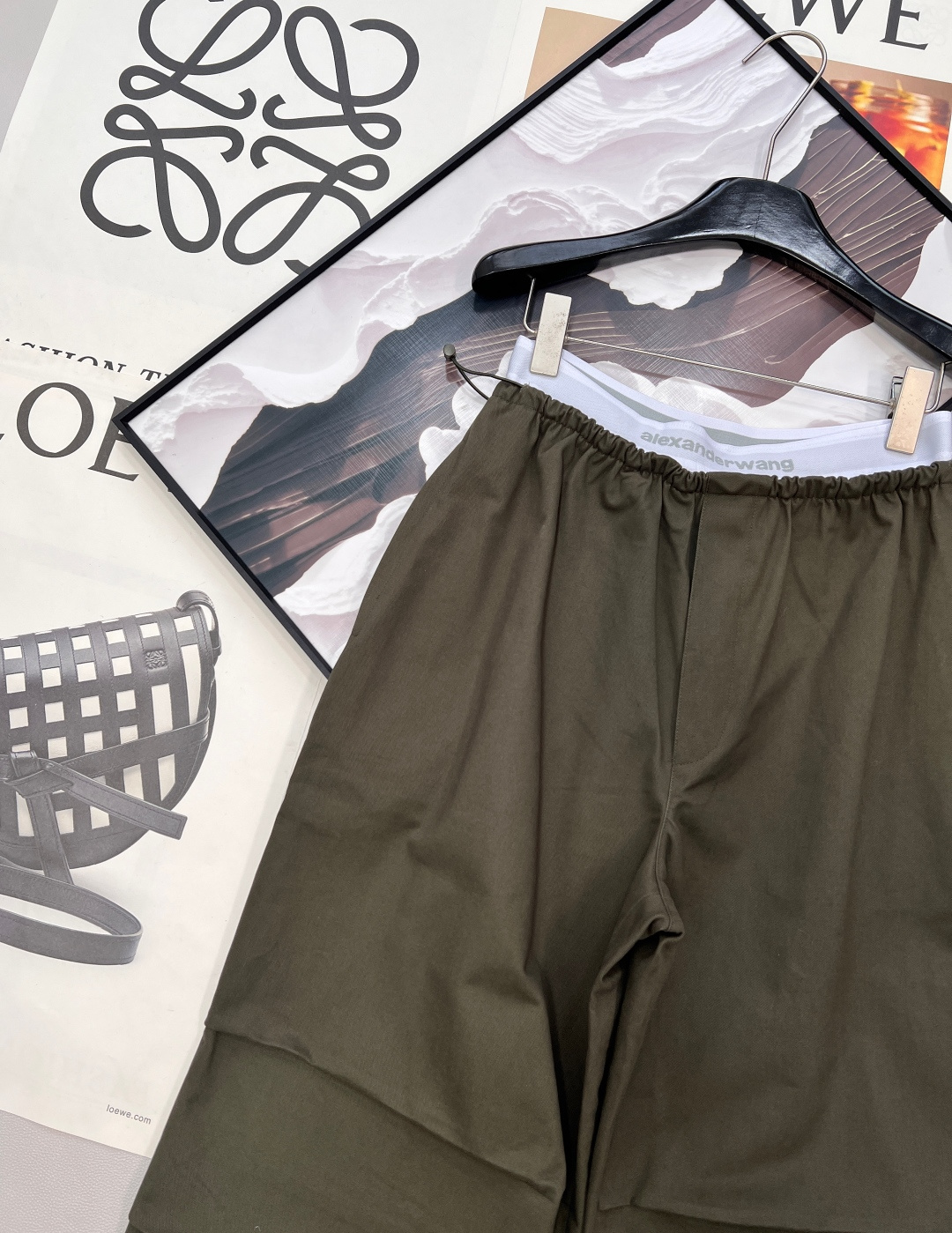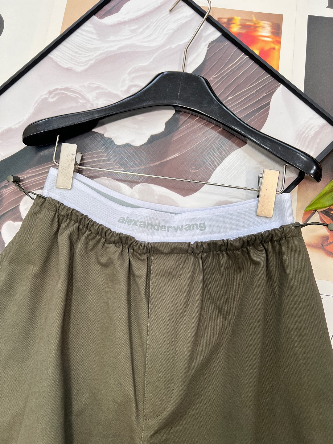 Details: Spring work pants with white-edge waist, two-tone, wide-leg, pleated, drawstring waist, high-end custom, fine workmanship