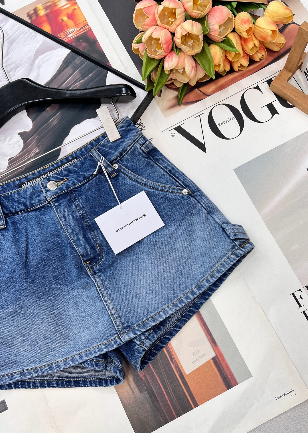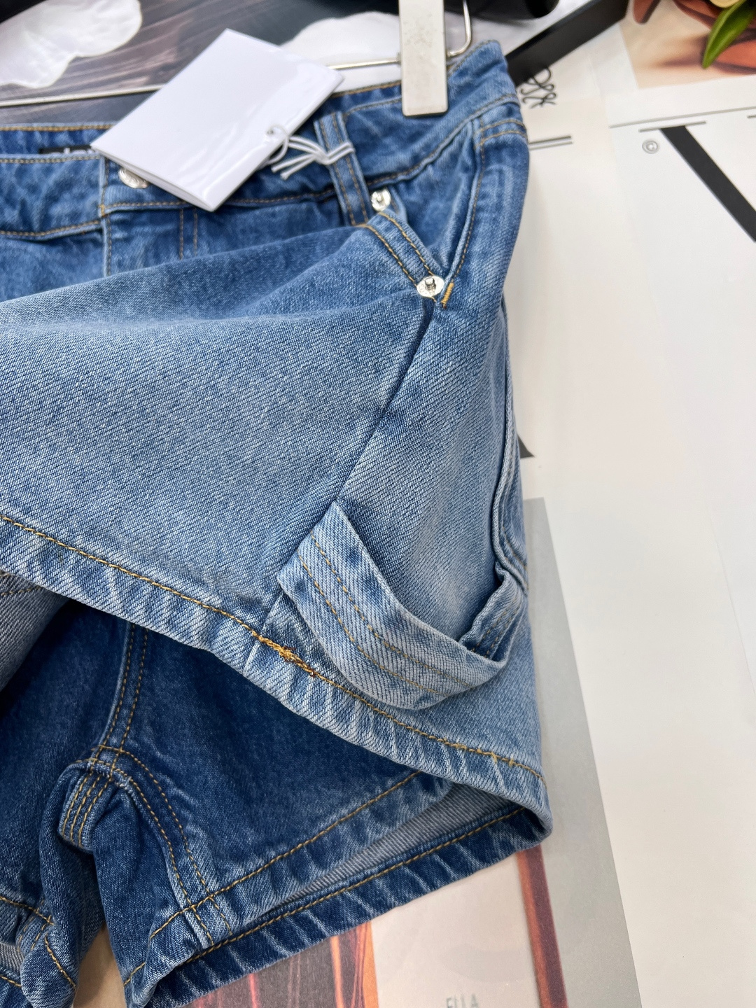 Details: New spring denim skort with a front skirt and back pants design, suitable for any occasion.