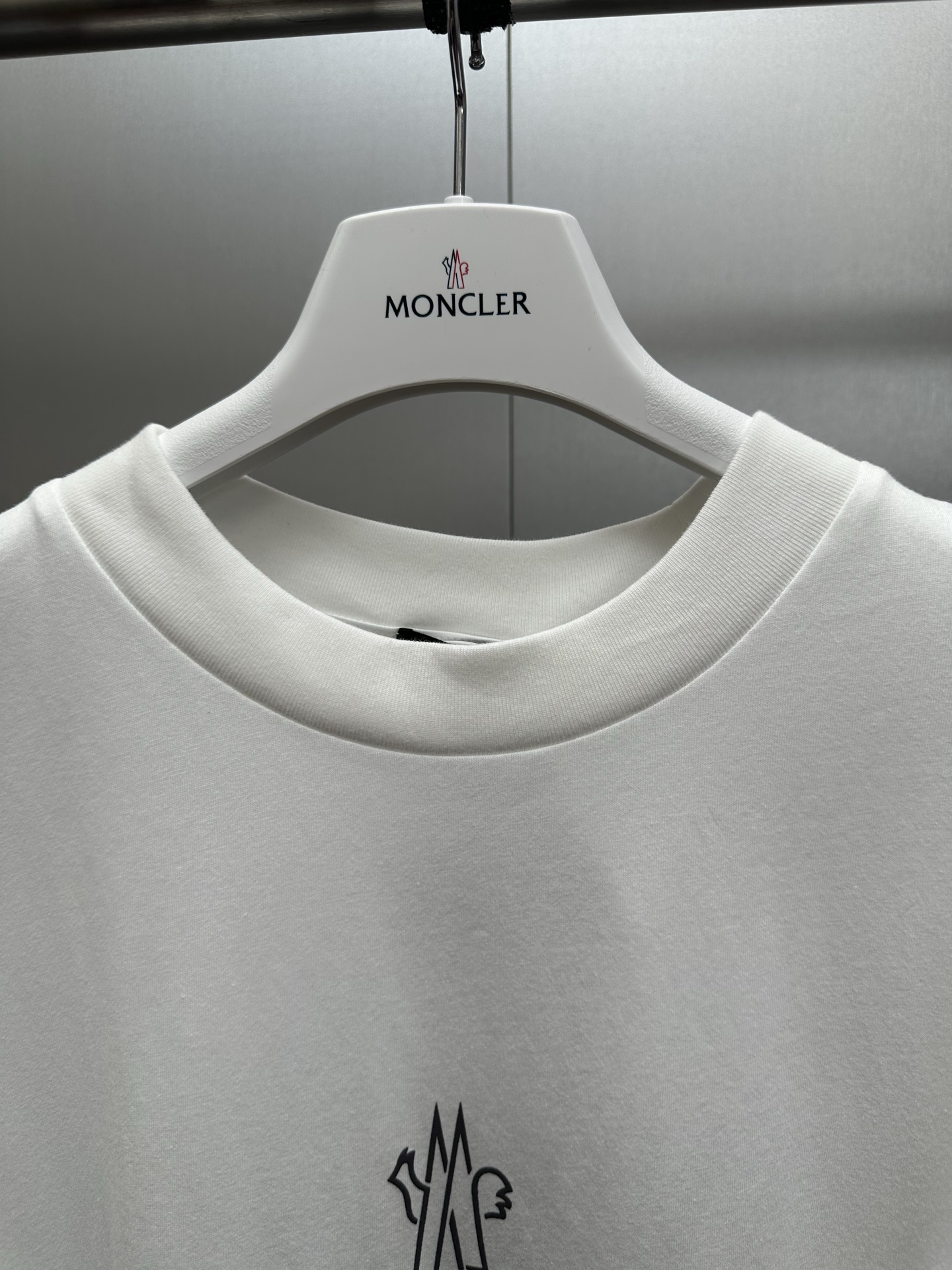Details: Round-neck short-sleeved T-shirt with rubber paste printing and template embroidery