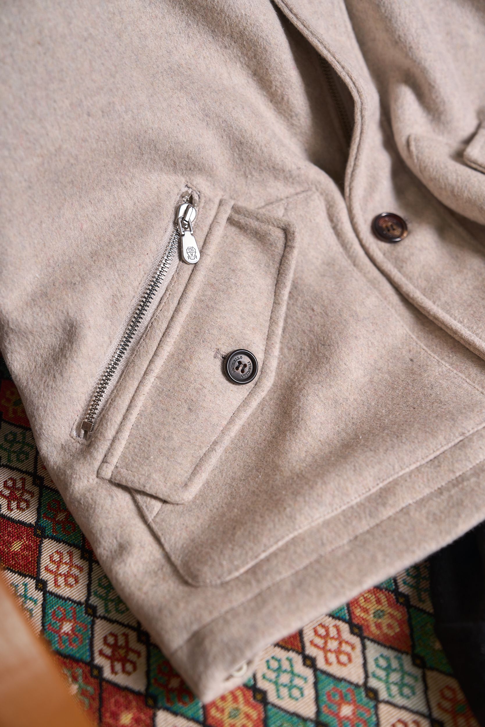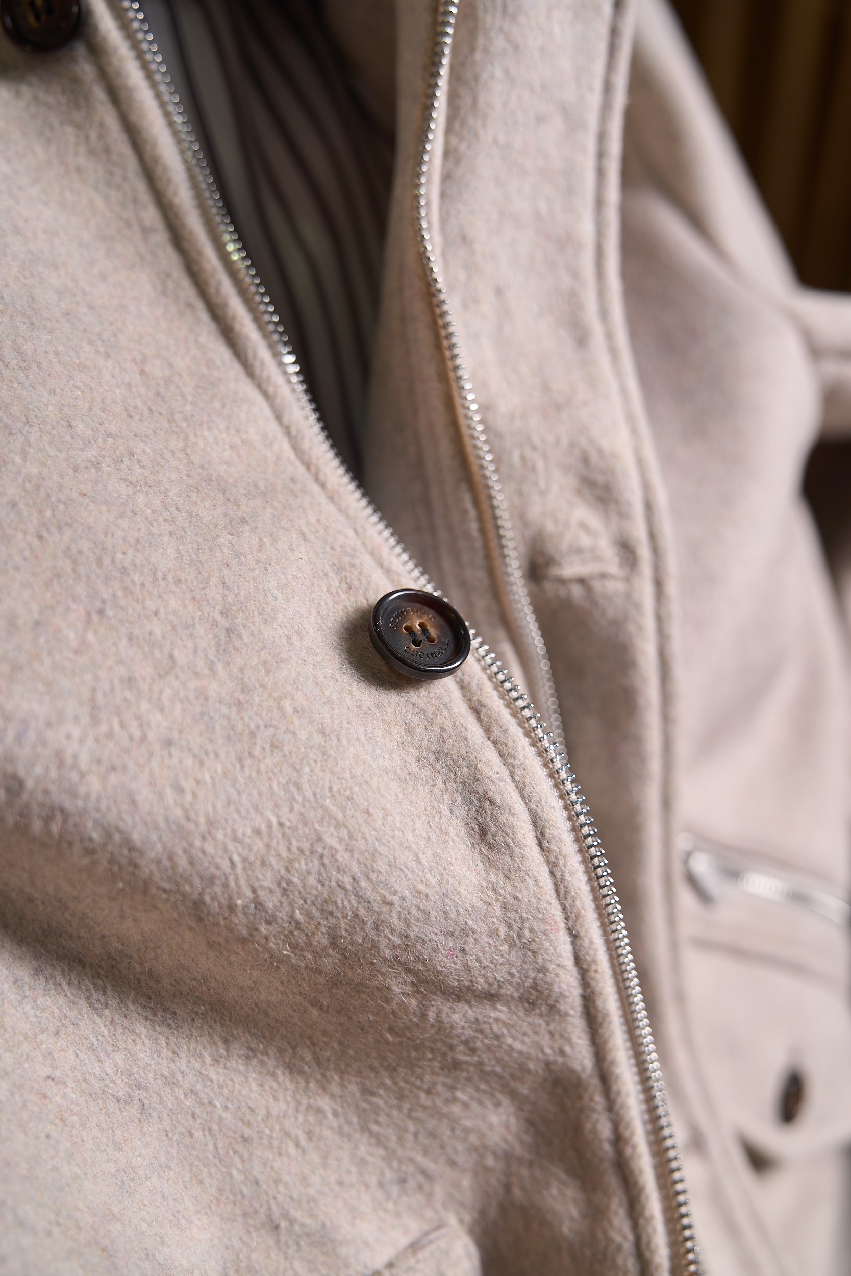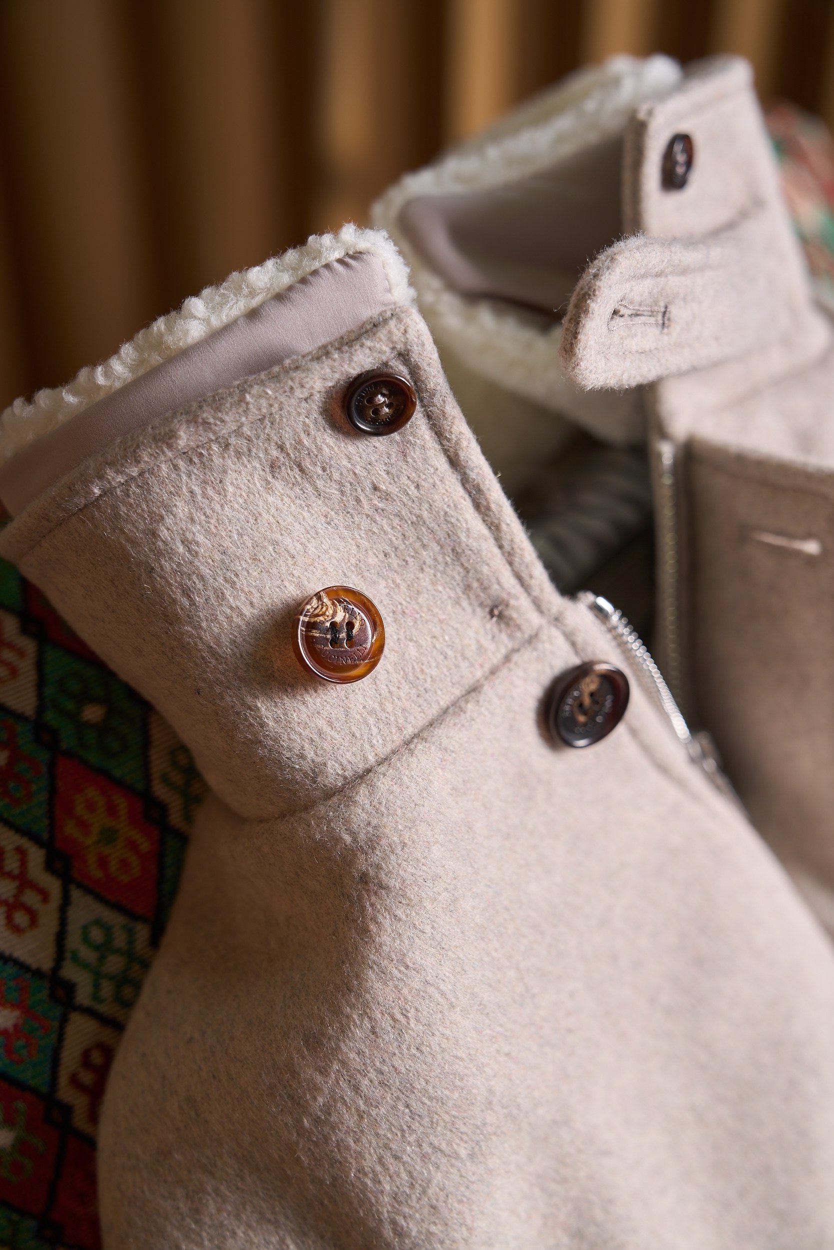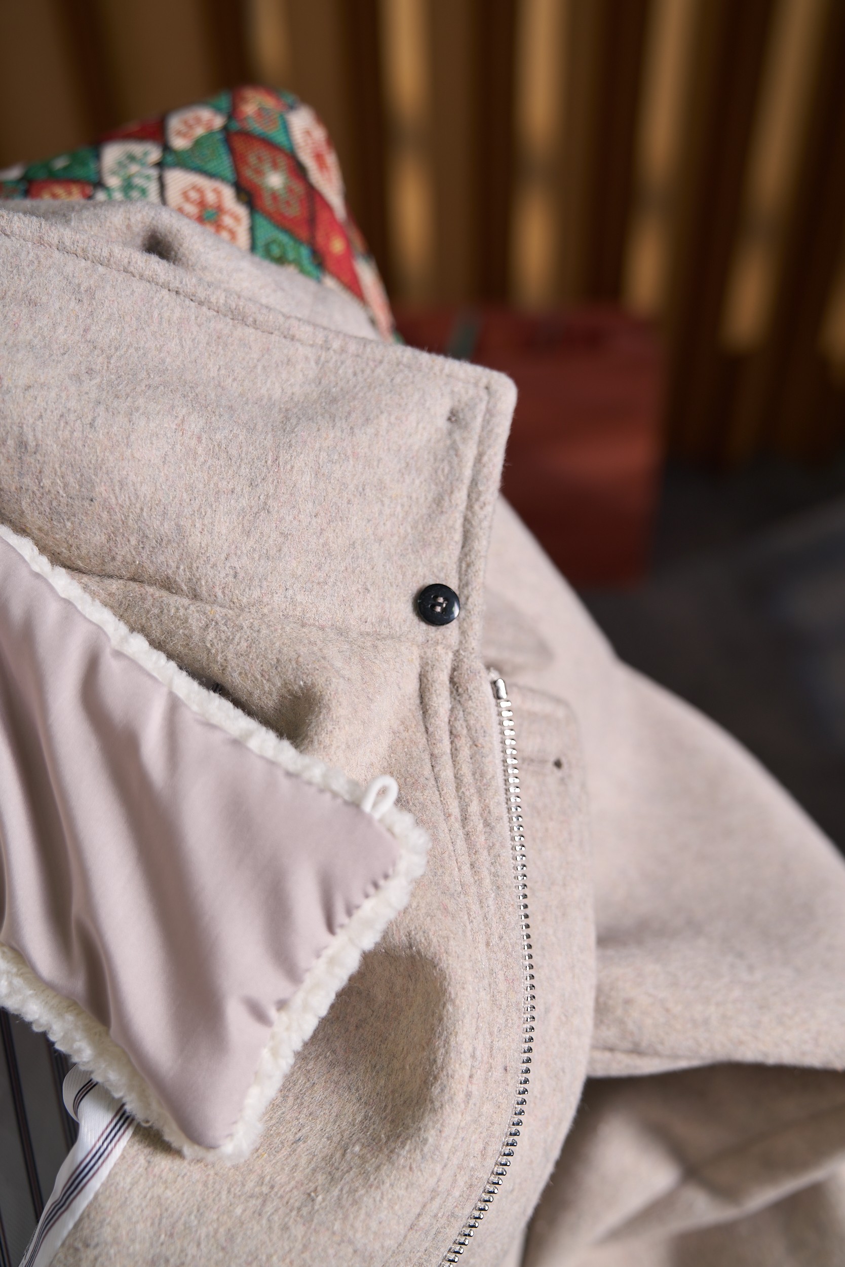 Details: Cashmere-wool blend jacket with detachable mink collar and fine details