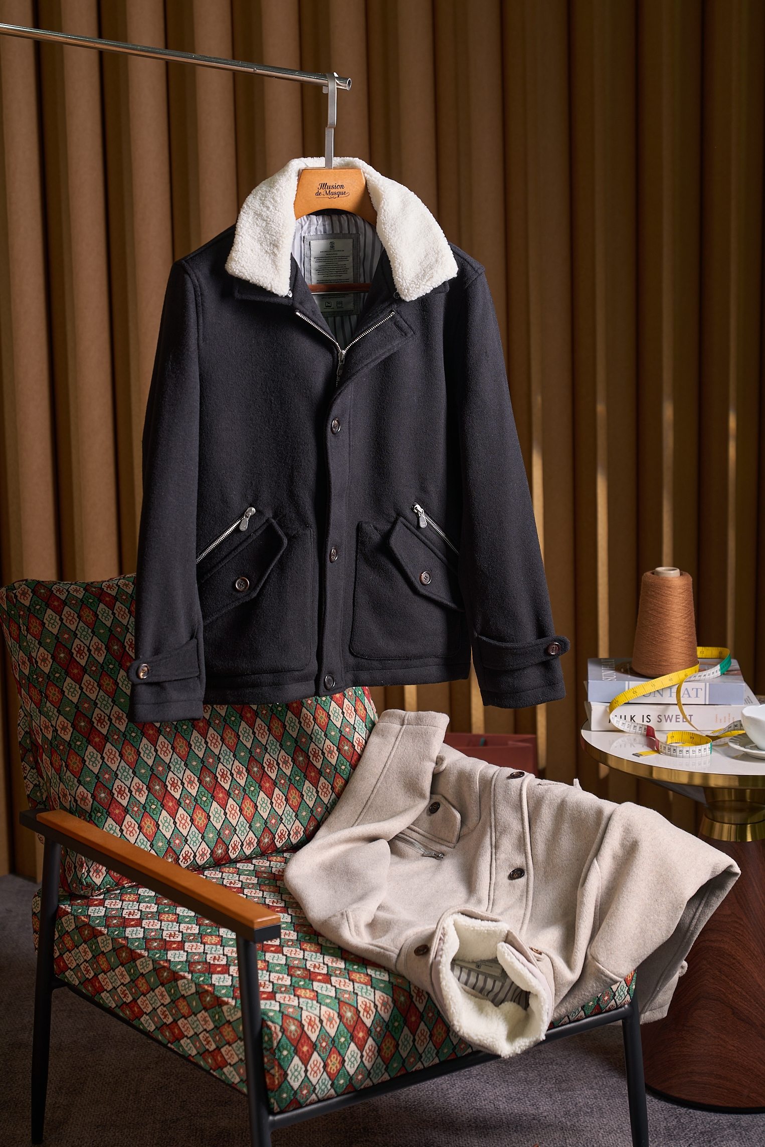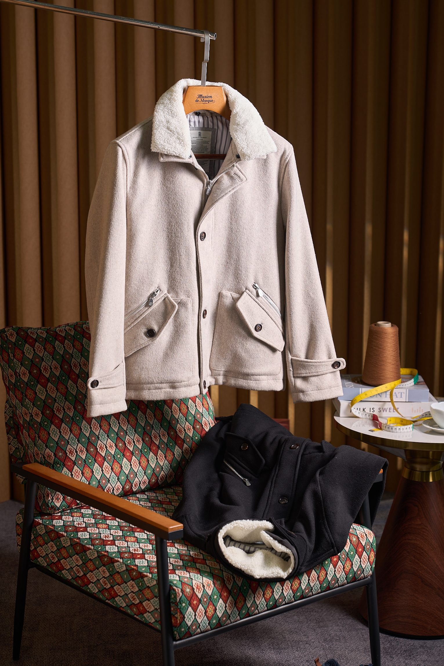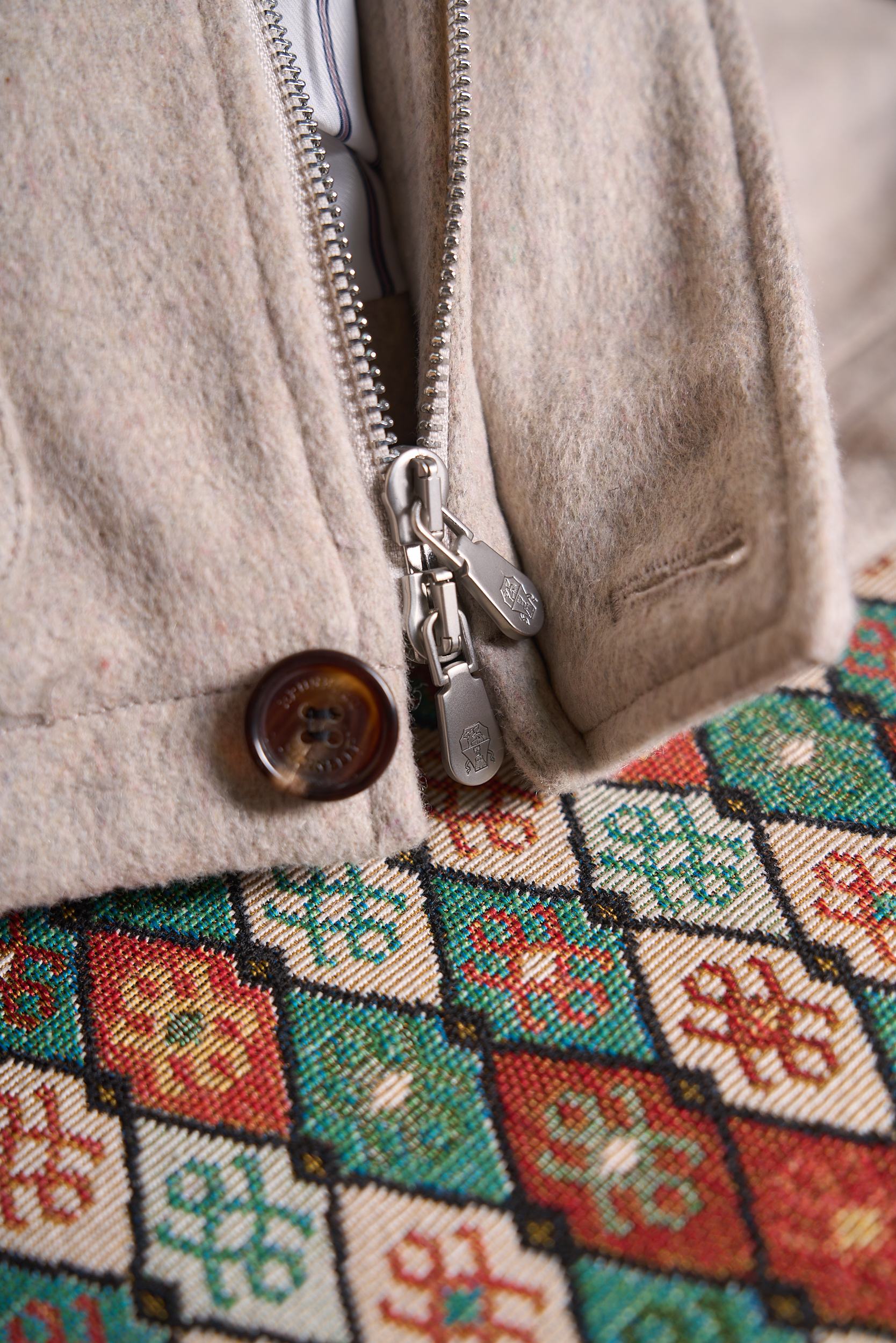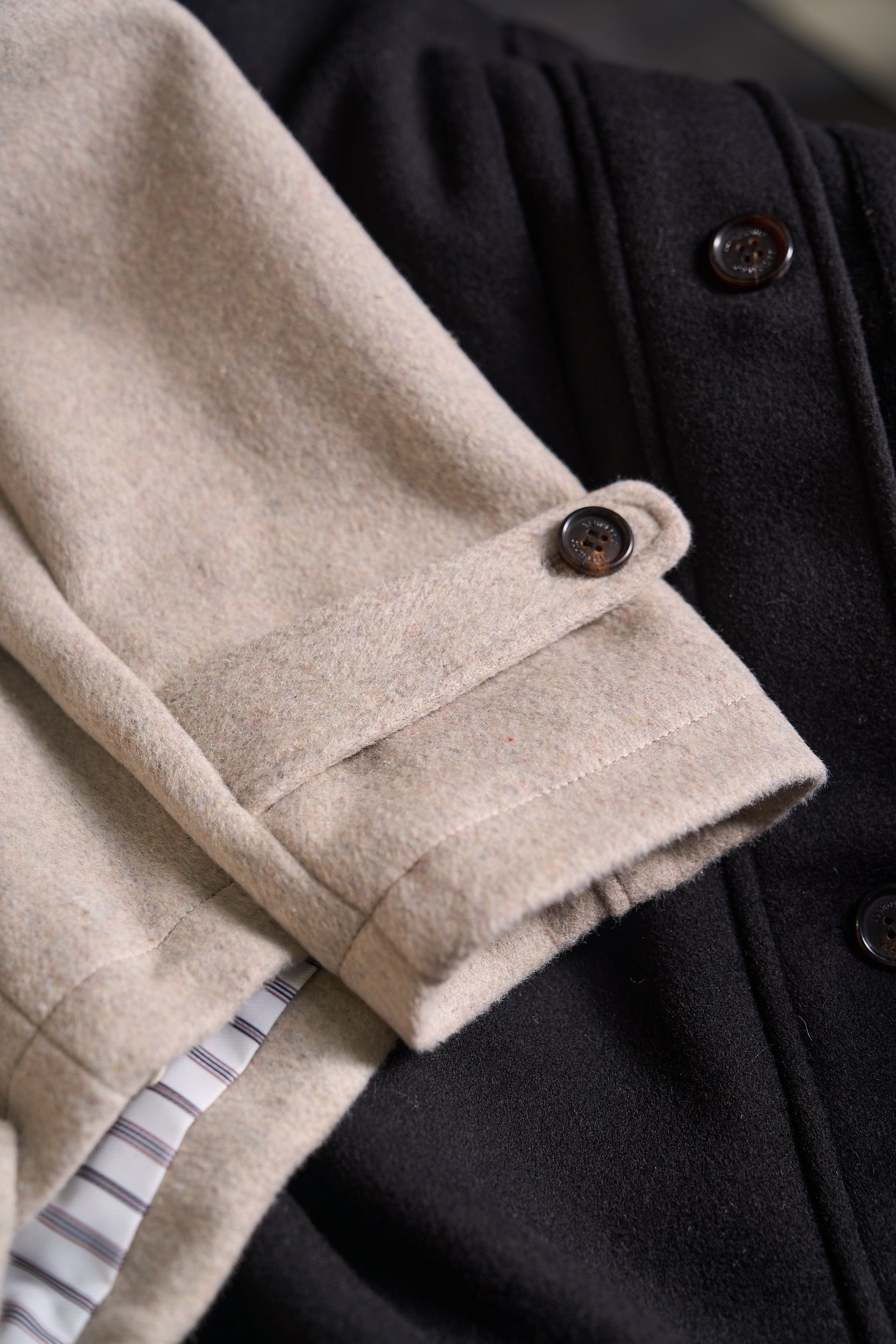 Details: Cashmere-wool blend jacket with detachable mink collar and fine details