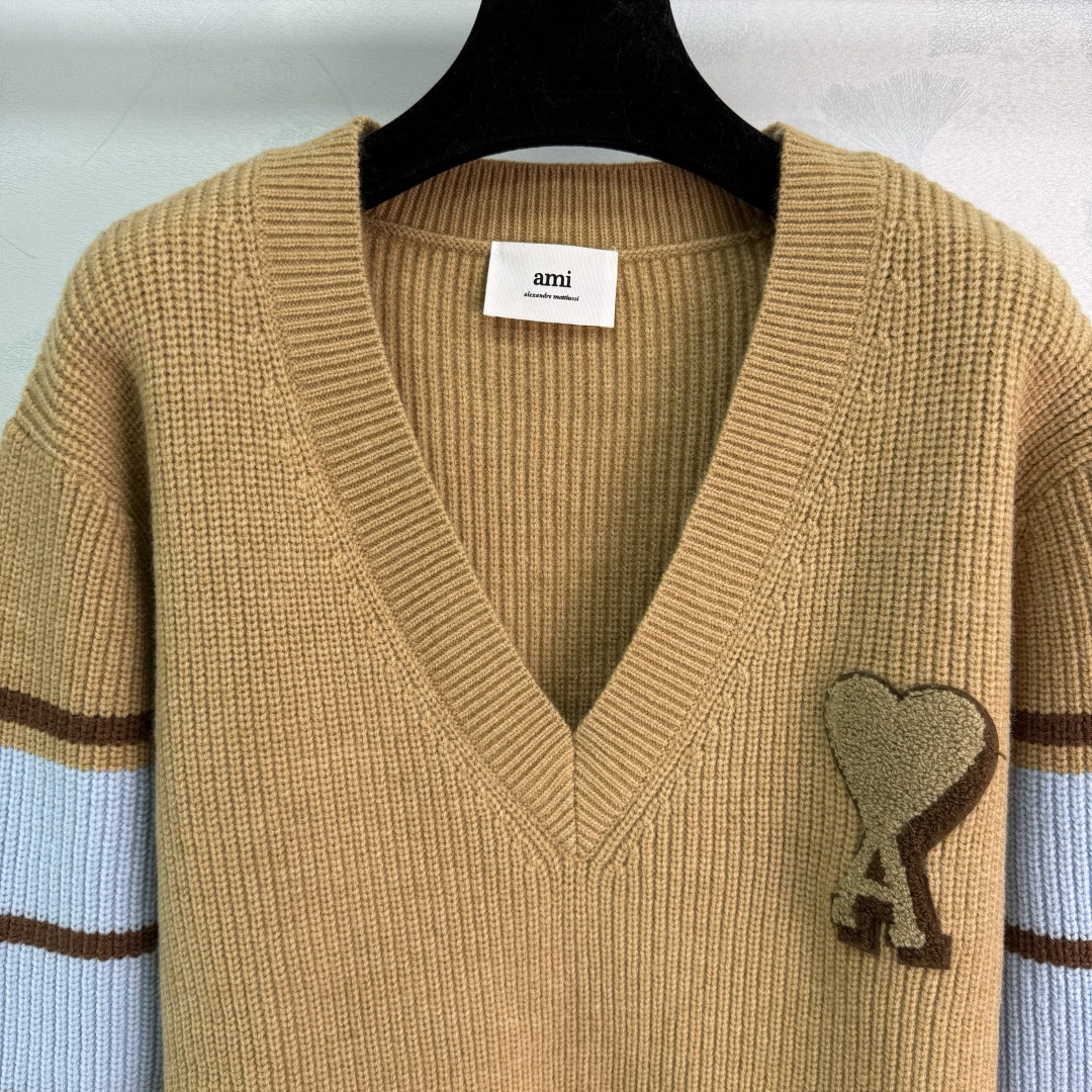 Details: Autumn-Winter V-neck wool sweater with heart embroidery, soft and stylish, suitable for high-end customization with fine craftsmanship and original quality.