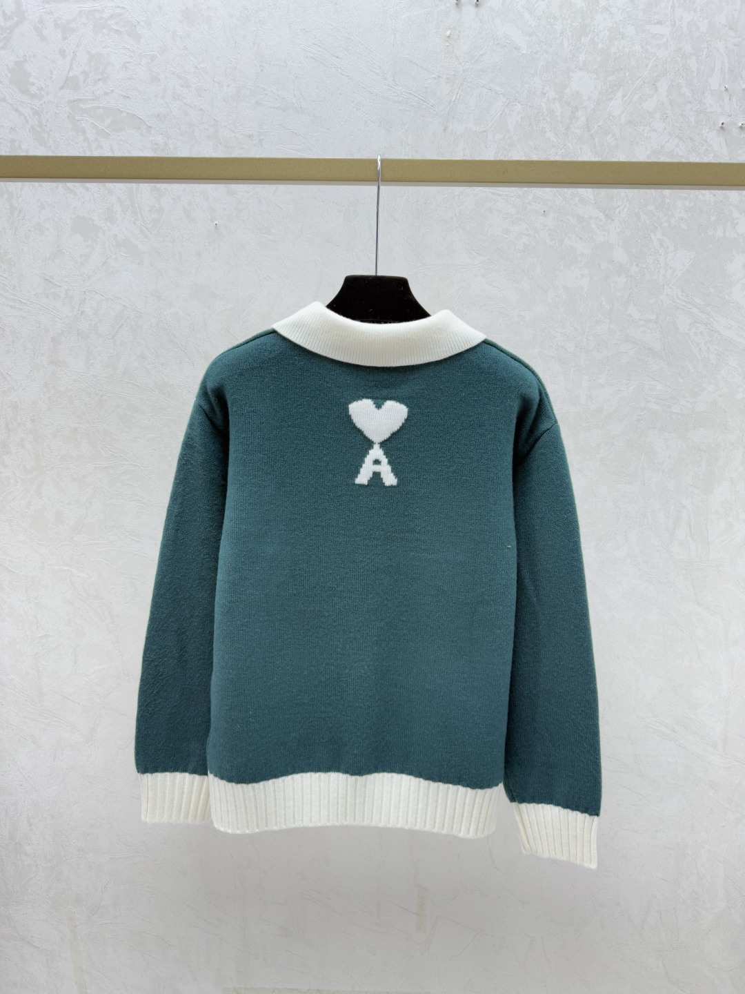 Details: Early autumn new arrival, color-blocked pony turnover collar knitted long-sleeved top in green, black, sizes 36, 38, 40.