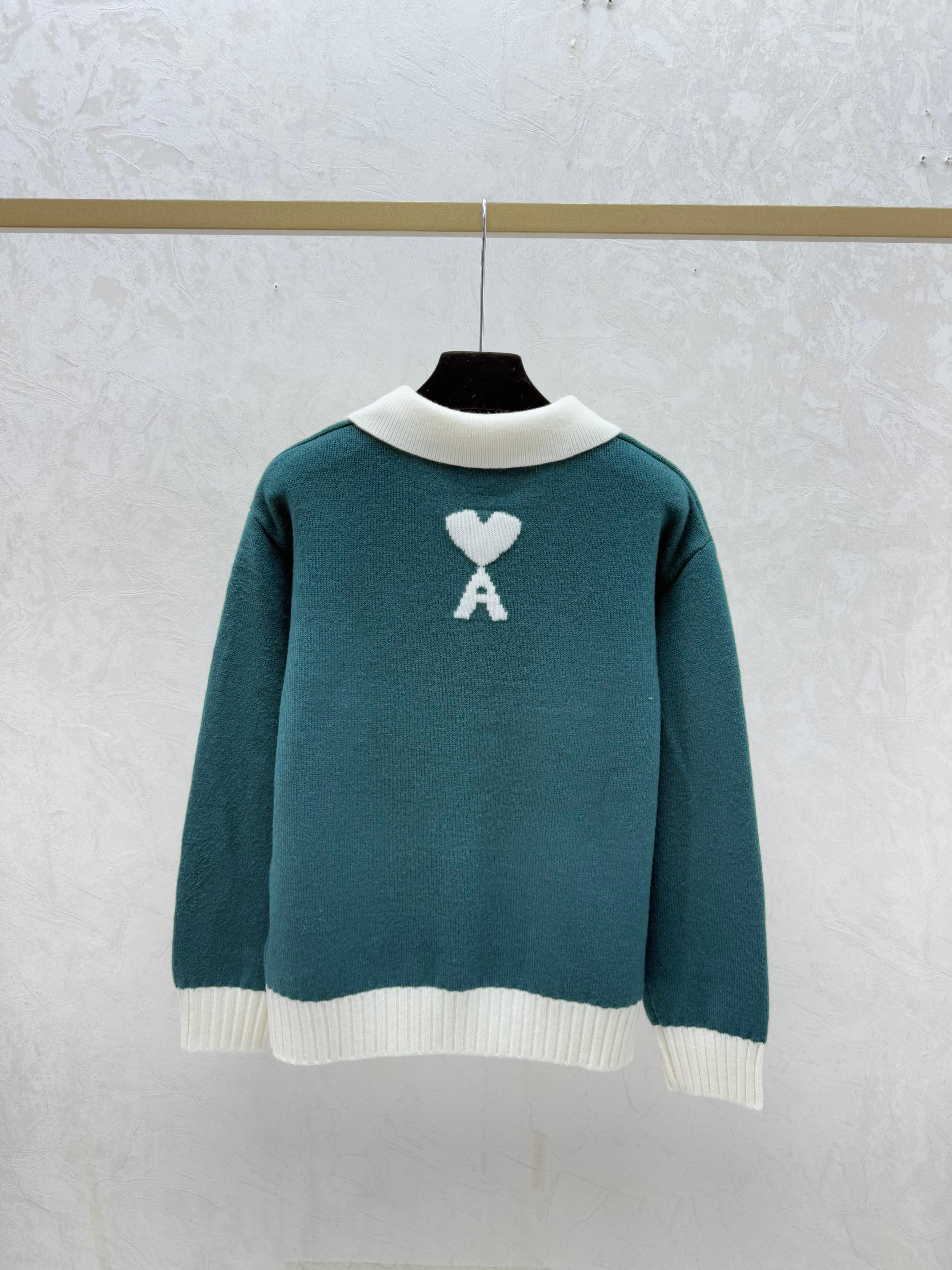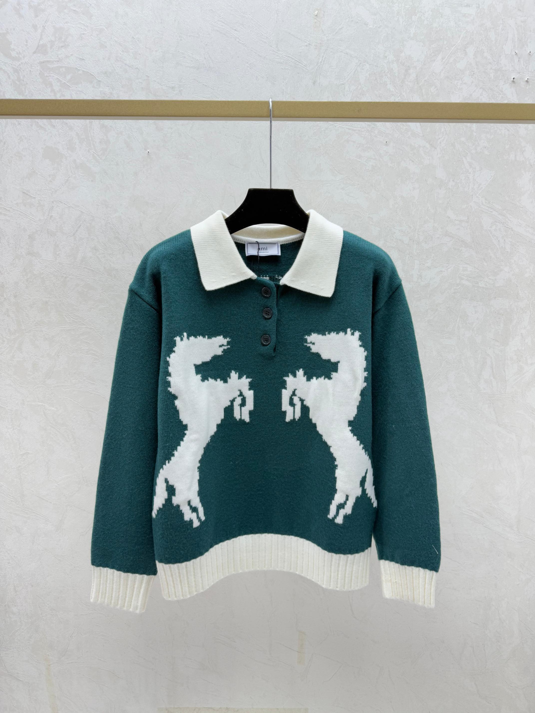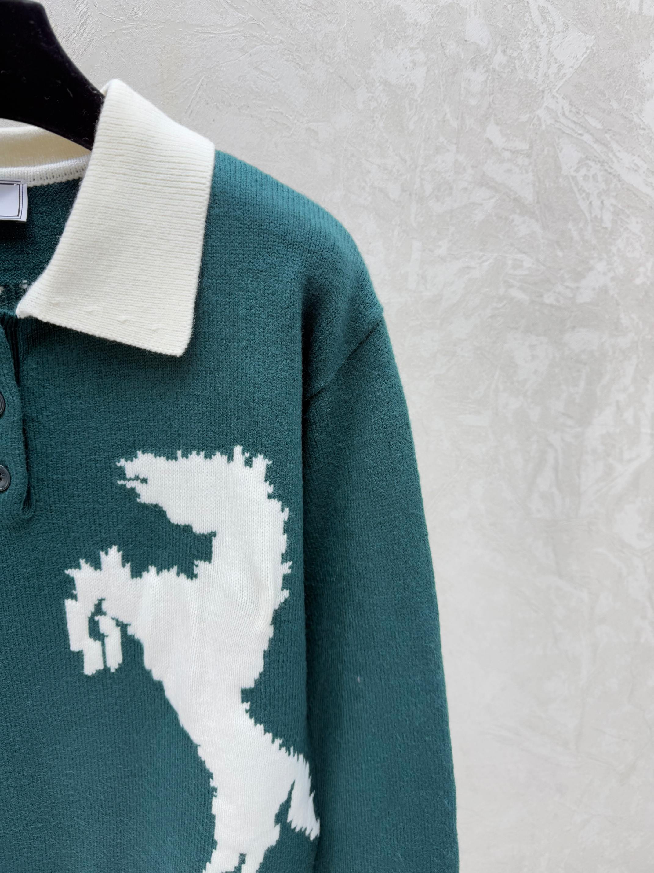 Details: Early autumn new arrival, color-blocked pony turnover collar knitted long-sleeved top in green, black, sizes 36, 38, 40.