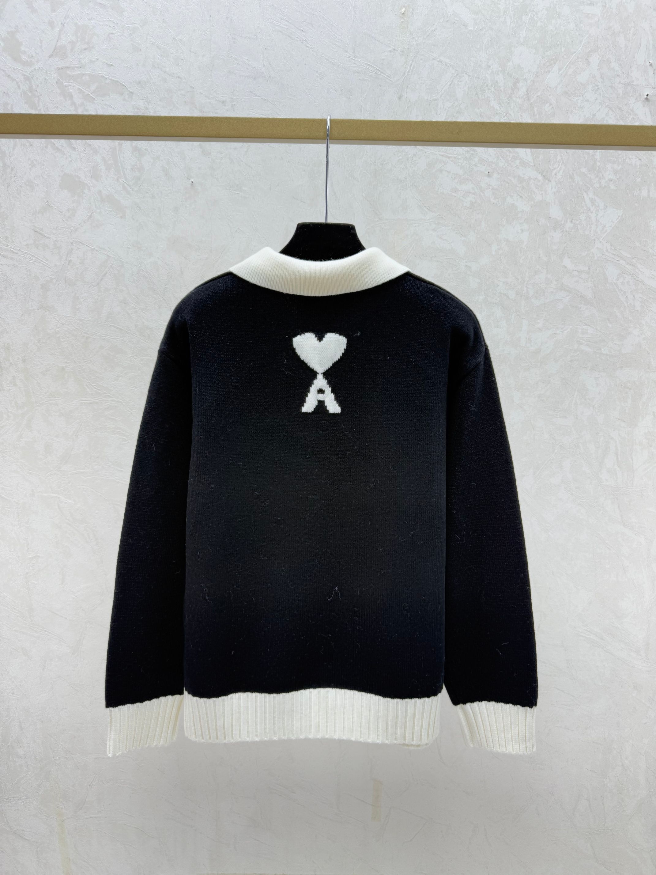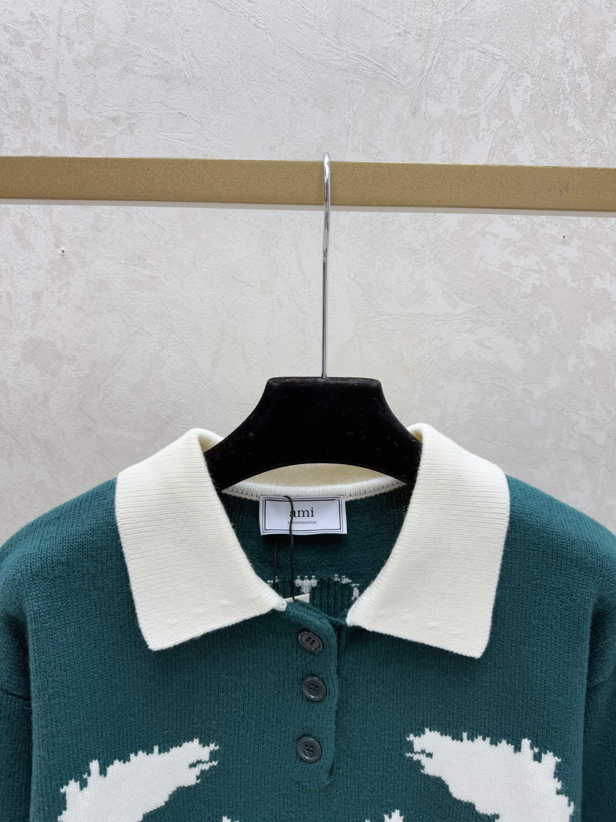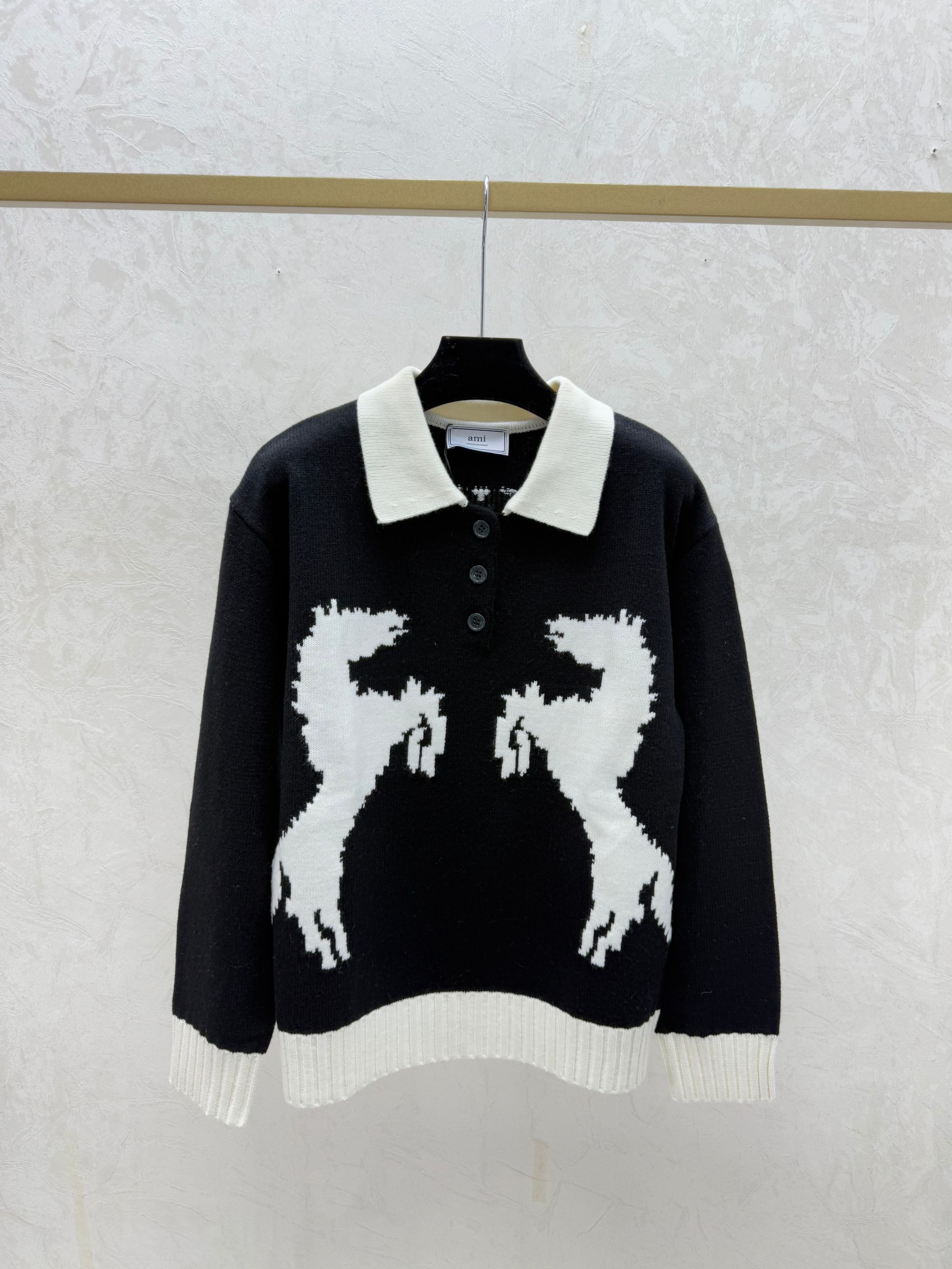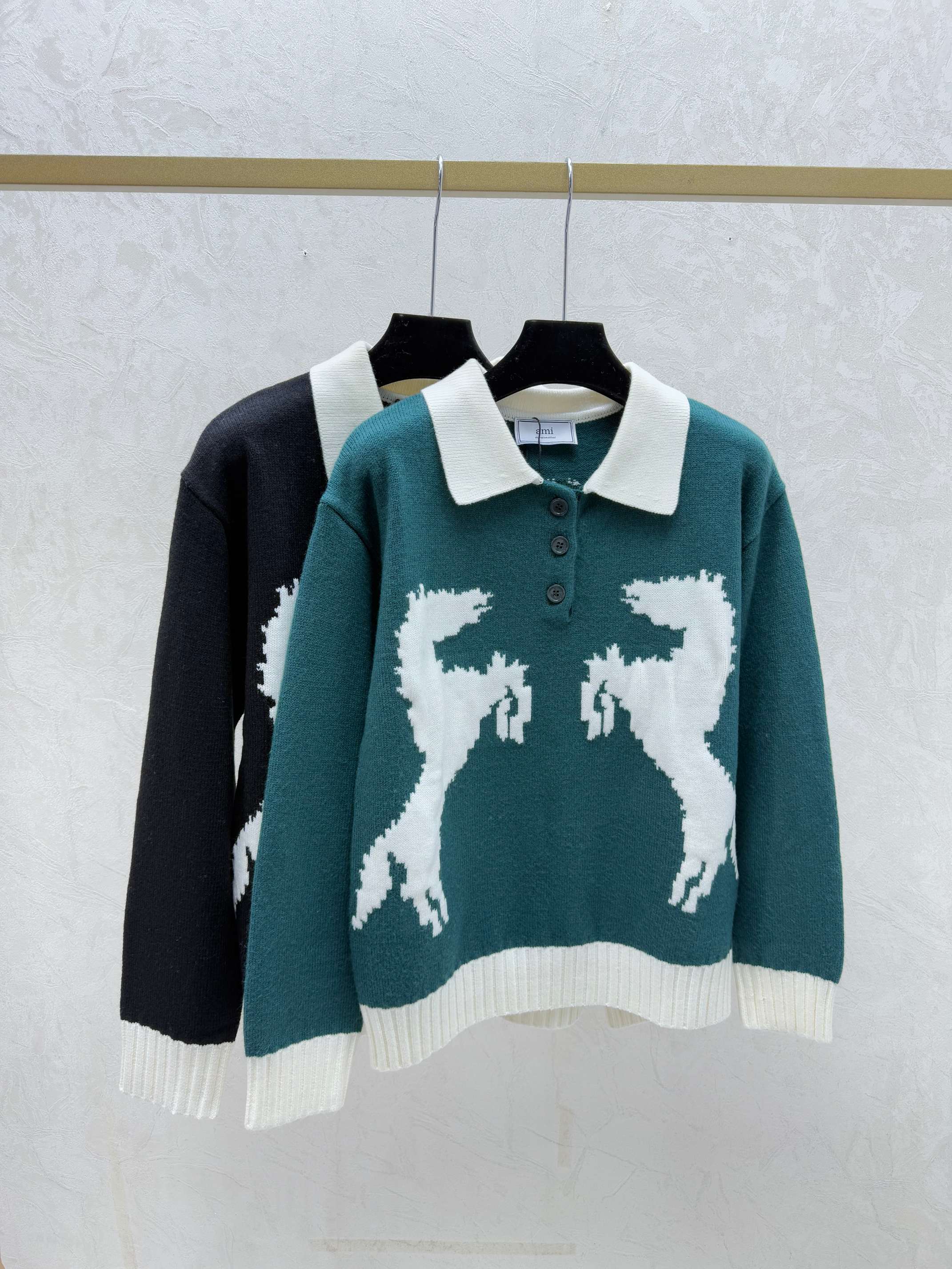 Details: Early autumn new arrival, color-blocked pony turnover collar knitted long-sleeved top in green, black, sizes 36, 38, 40.