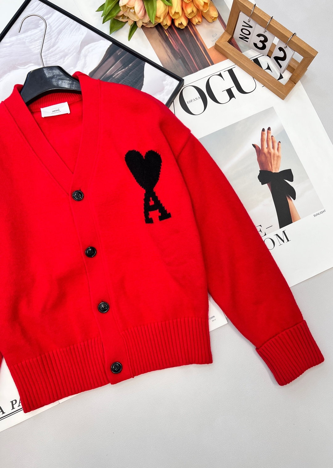 Details: Lazy Loose-fit Cardigan with Eiffel Tower Heart Pattern, Suitable for Both Men and Women.