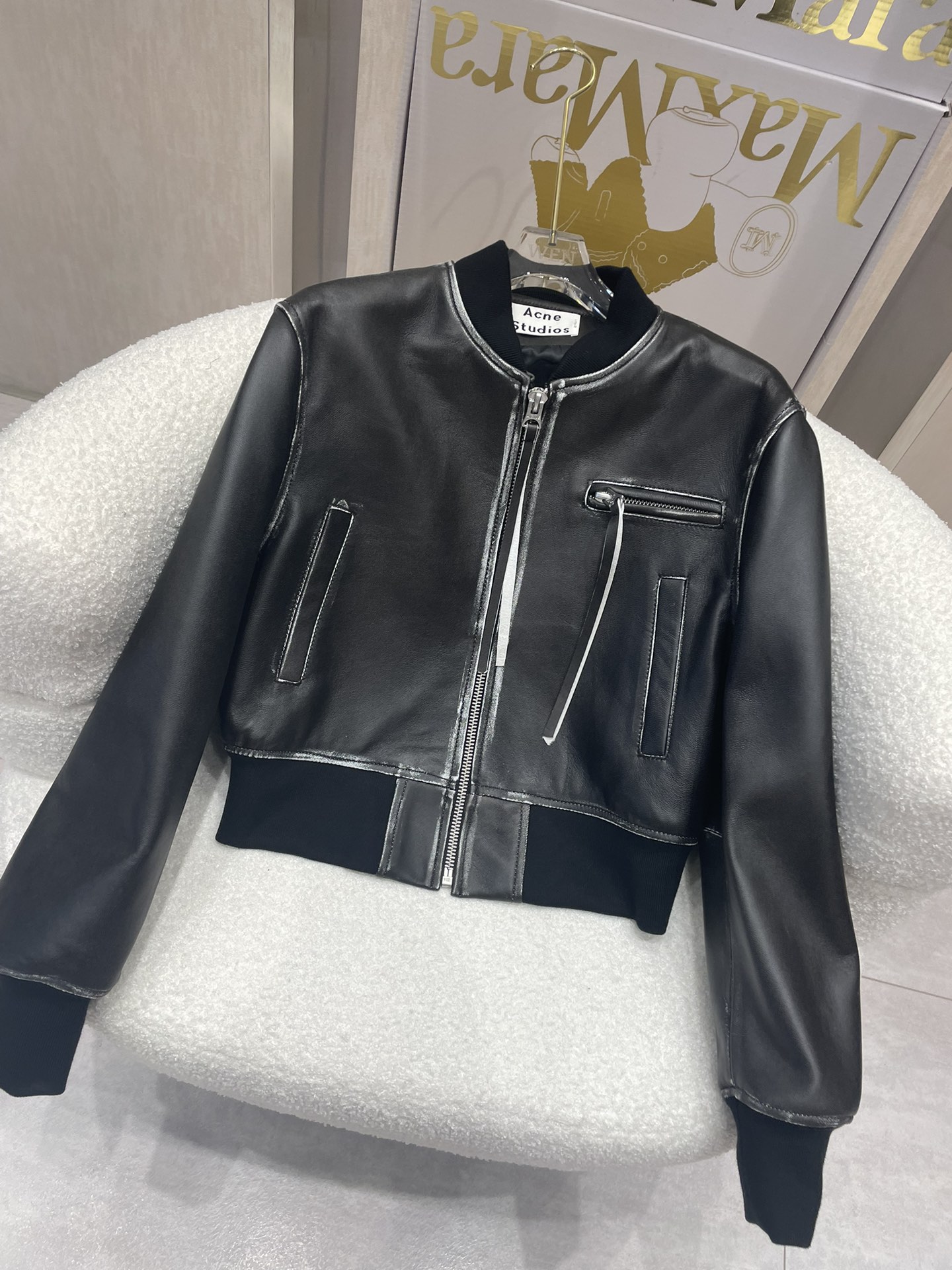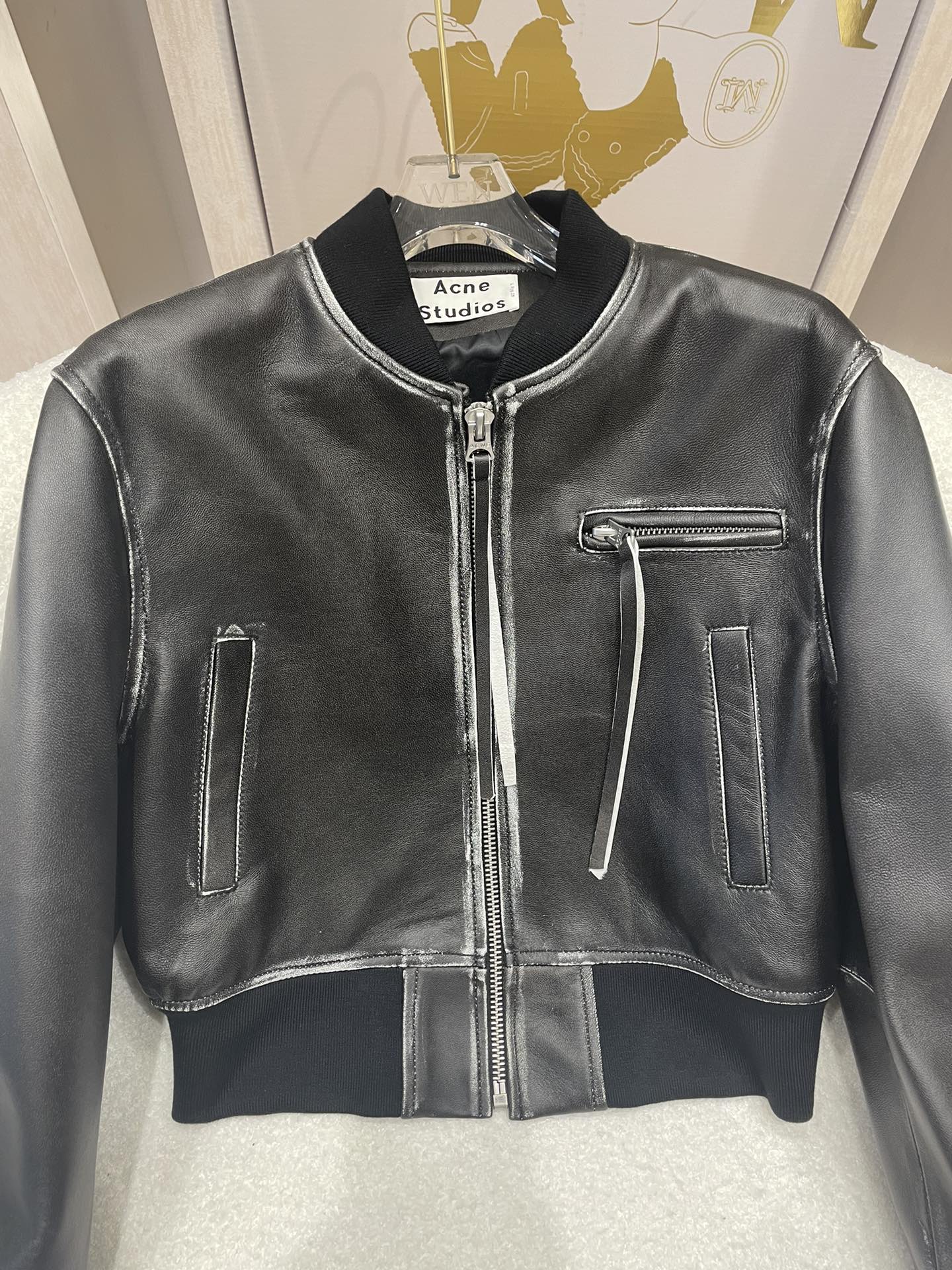 Details: Acne baseball leather jacket, imported sheepskin, hand-rubbed, sizes S - M - XL, High-end Custom, Fine Workmanship