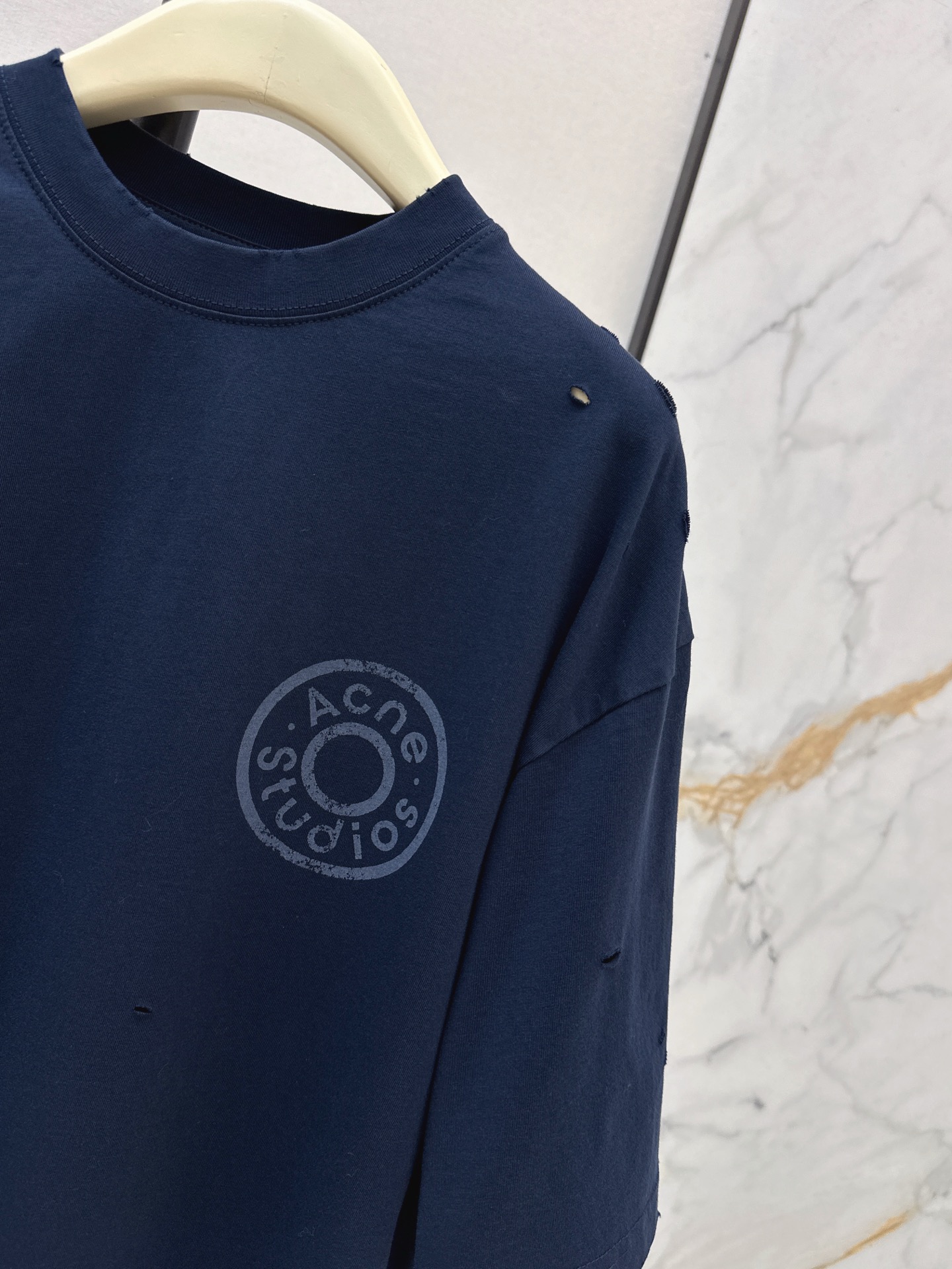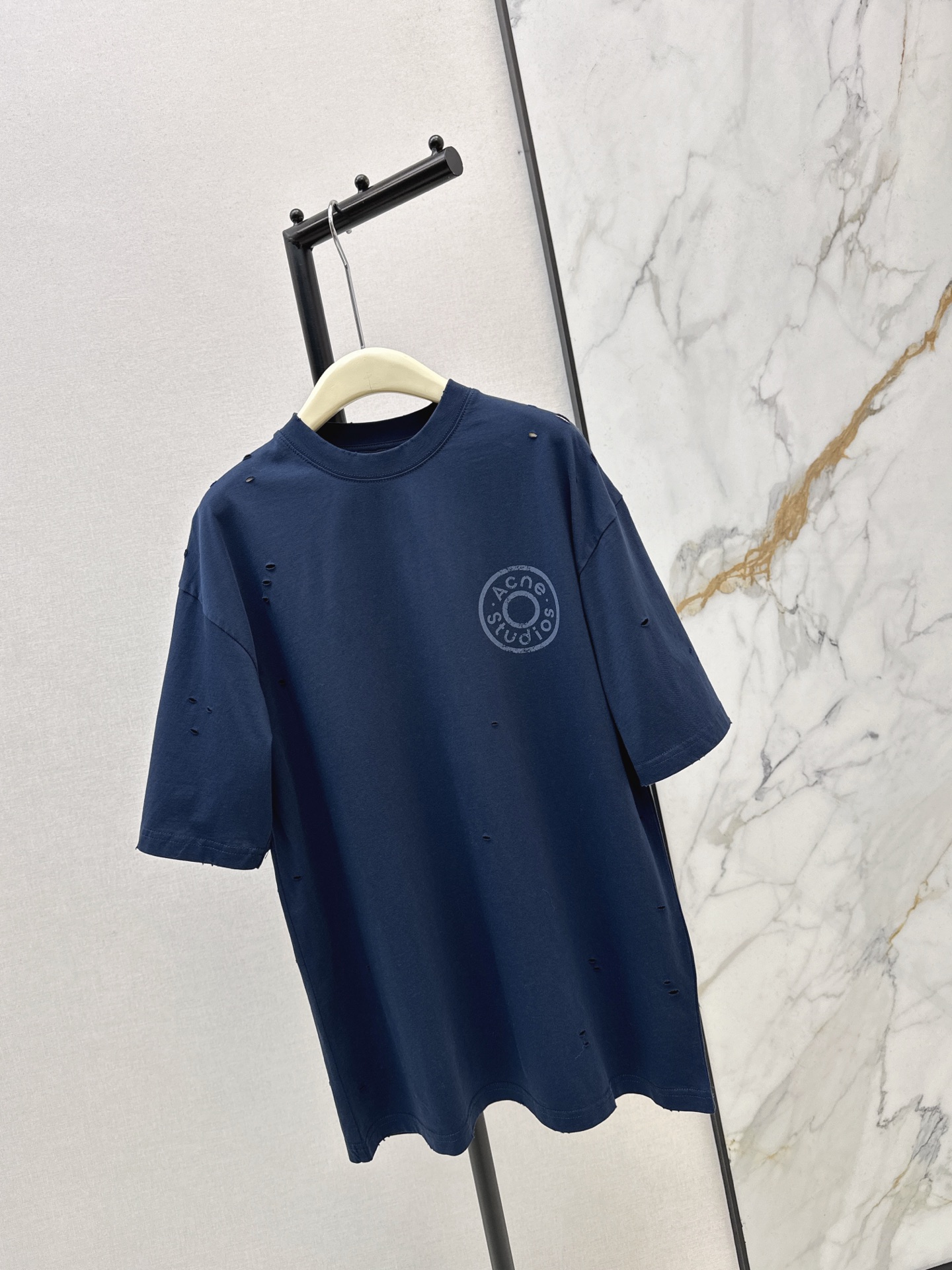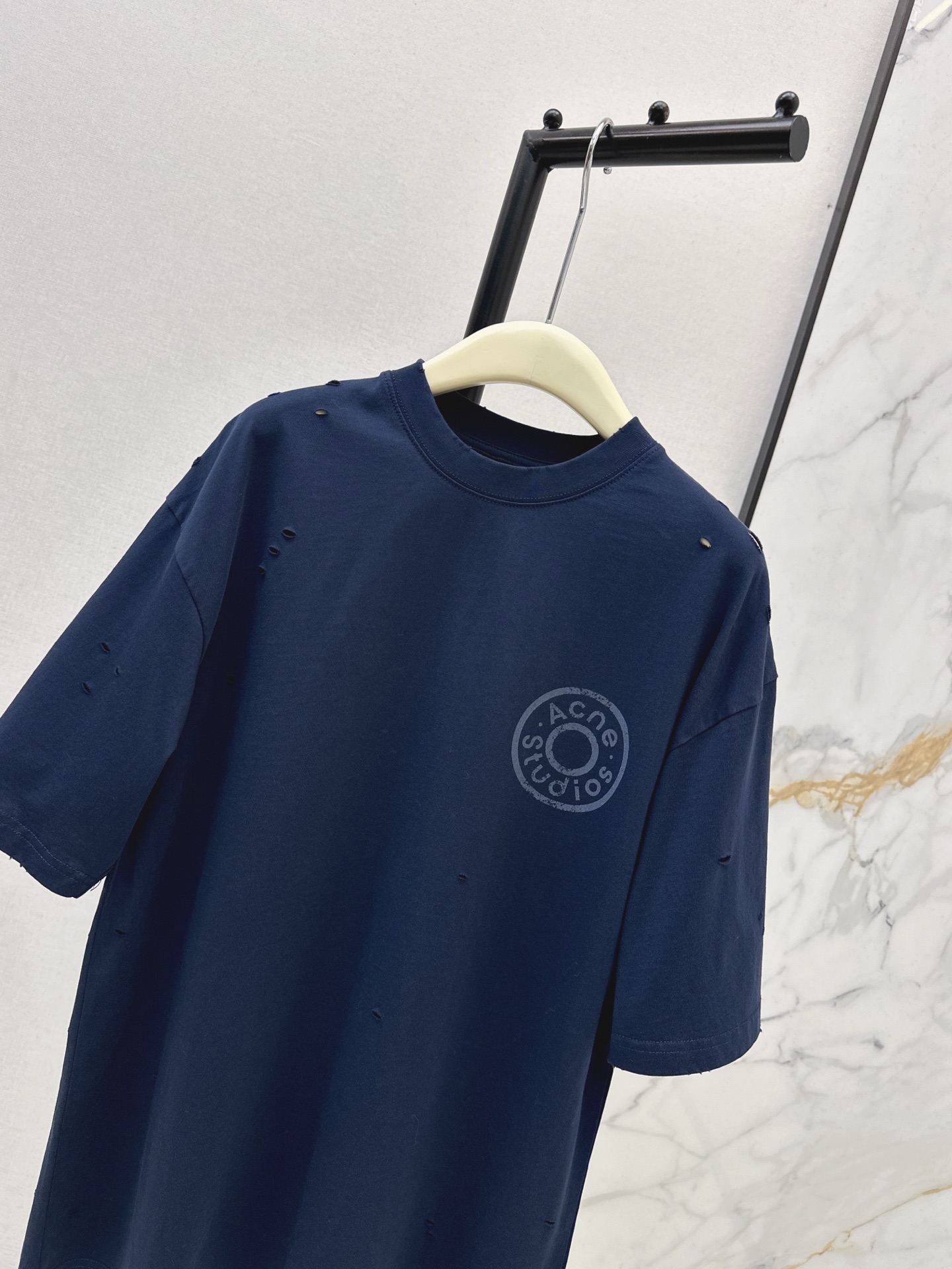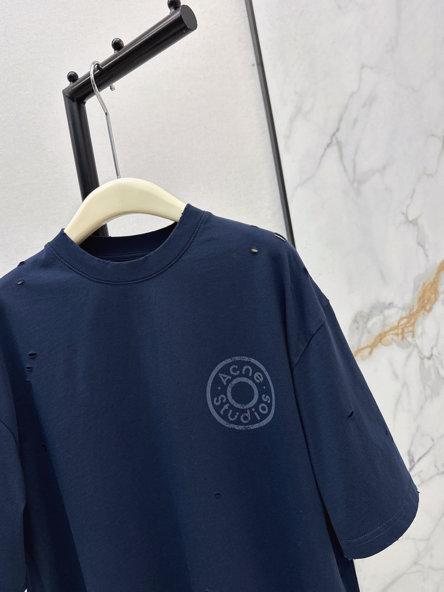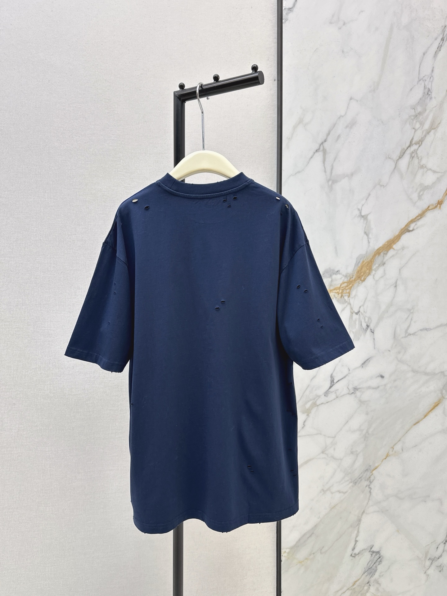 Details: Spring s latest cotton T-shirt with hole and embroidered logo, comfortable and suitable for everyday wear.