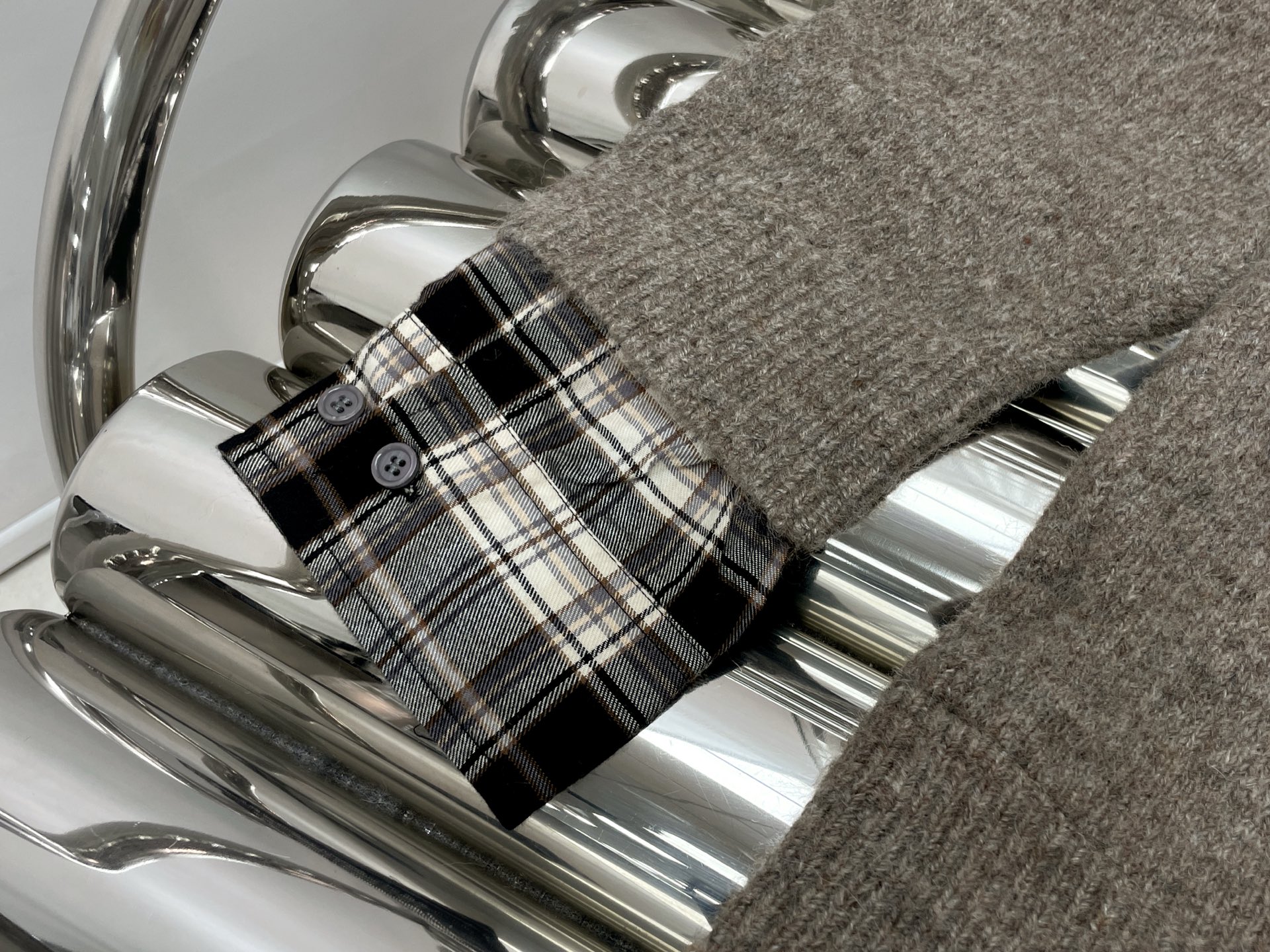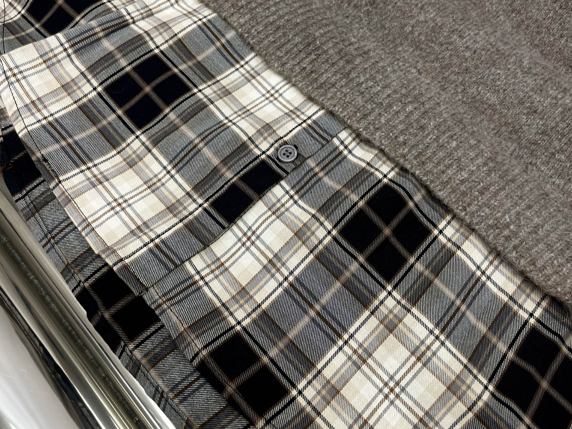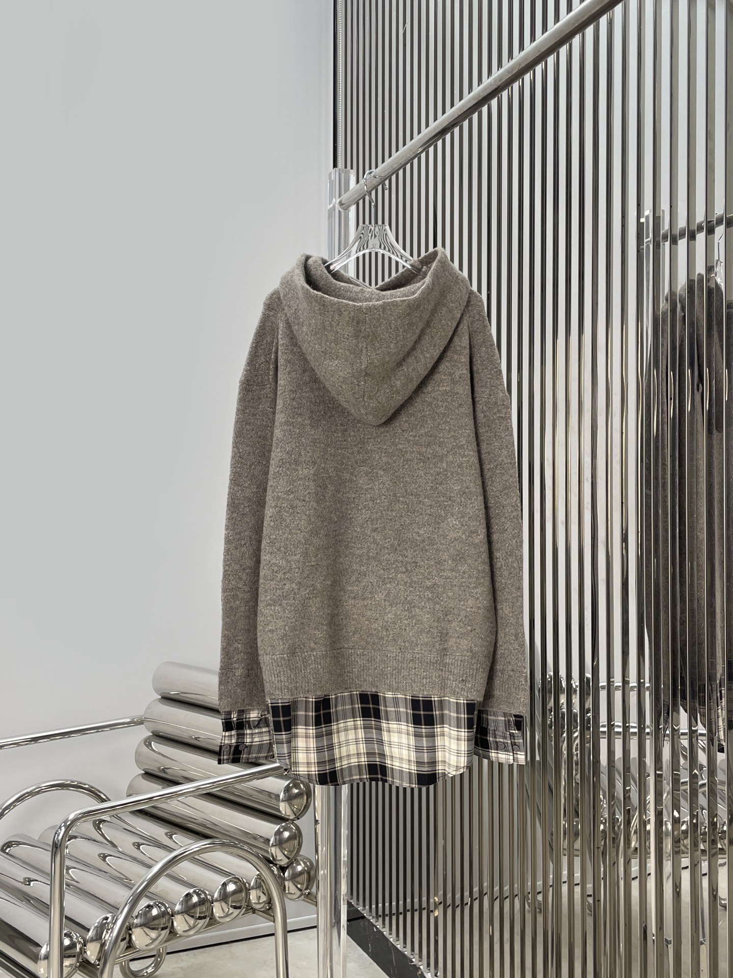 Details: Newest checkered shirt splicing hooded knitted coat, available in sizes S, M, L.