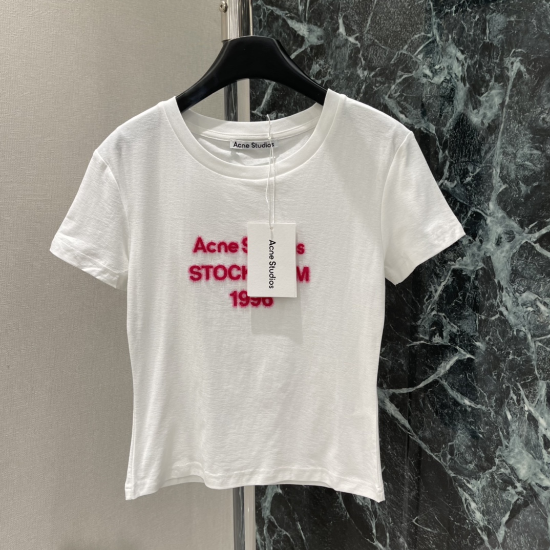 Details: Spring new letter printed T-shirt with eye-catching pink reverse letters, street style, slim fit.