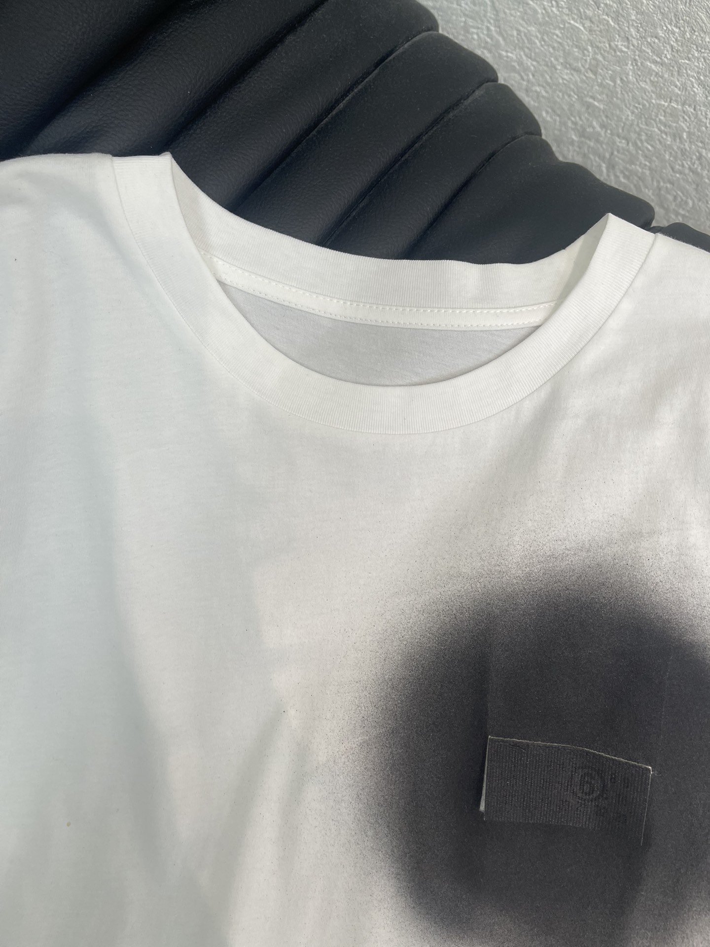Details: Spring-Summer New Splashed Ink Letter Print Round-Neck Short-Sleeve T-Shirt, Loose Fit, available in S, M, L sizes.