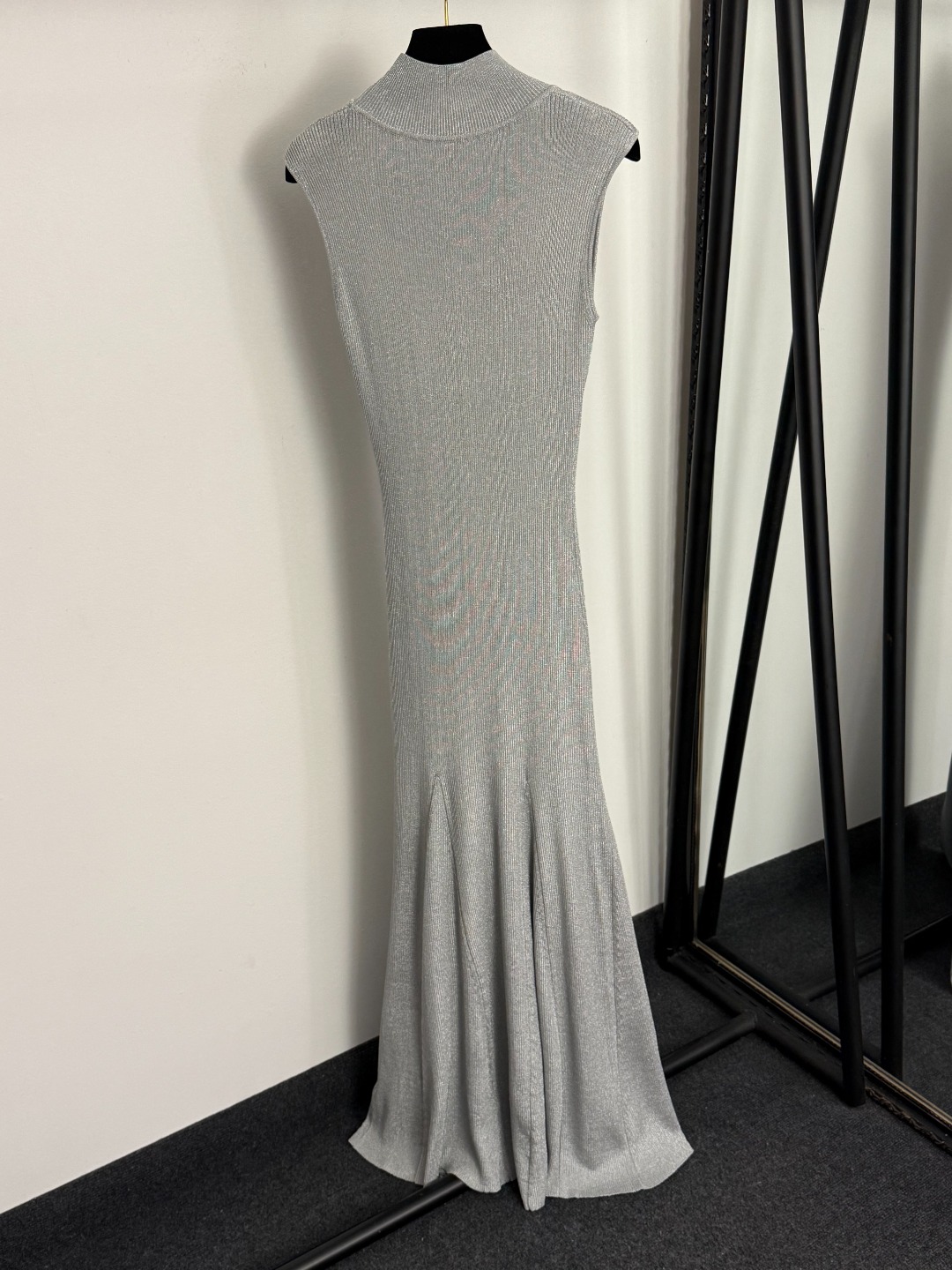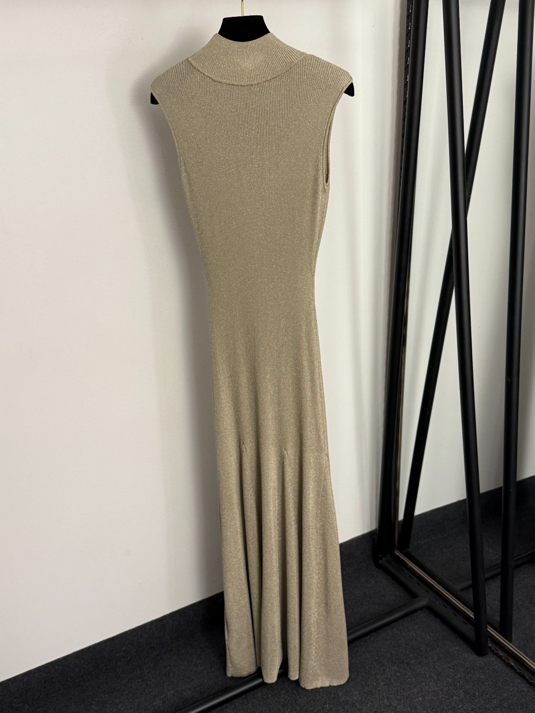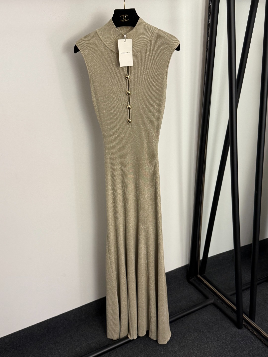 Details: New gold bead button front hollow bright silk blended high-neck knitted vest dress in gray, red or khaki, sizes S, XL, M.