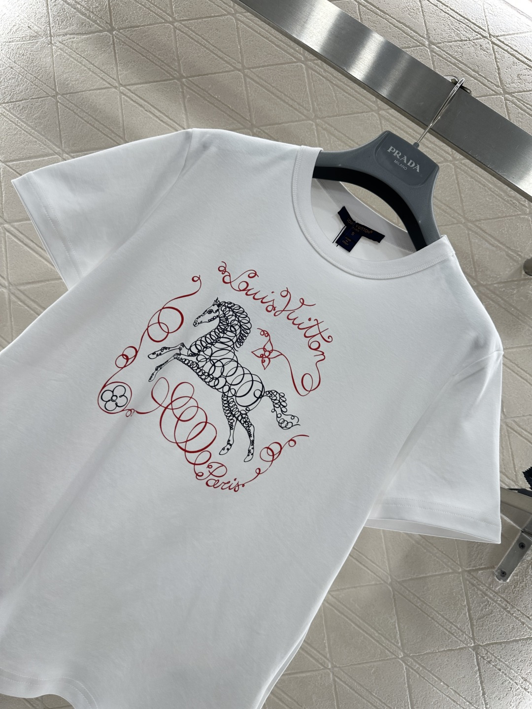 Details: Chinese New Year Horse Zodiac Cotton Tee, Exquisite Artwork, Breathable & Comfortable, High-End Customization, Fine Craftsmanship, White.