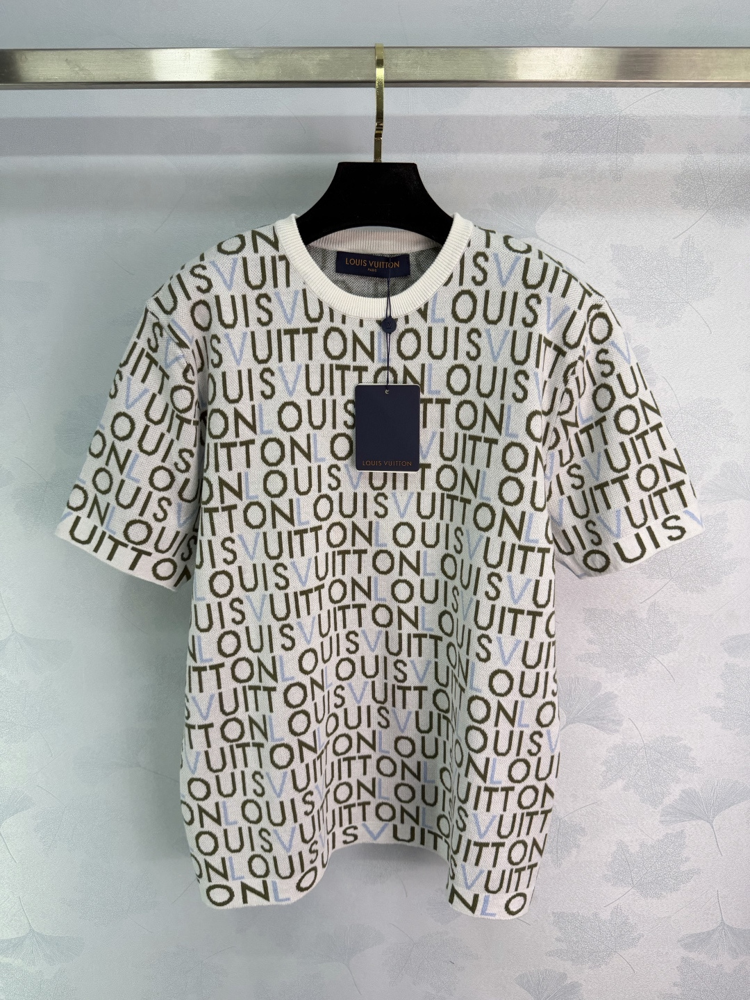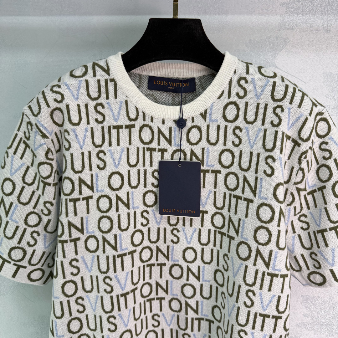 Details: Classic Monogram knit top in soft fabric, versatile for daily wear, with a luxurious feel, available in white with colorful logo, sizes S to L. Features high-end customization and exquisite craftsmanship, with 1:1 original quality.