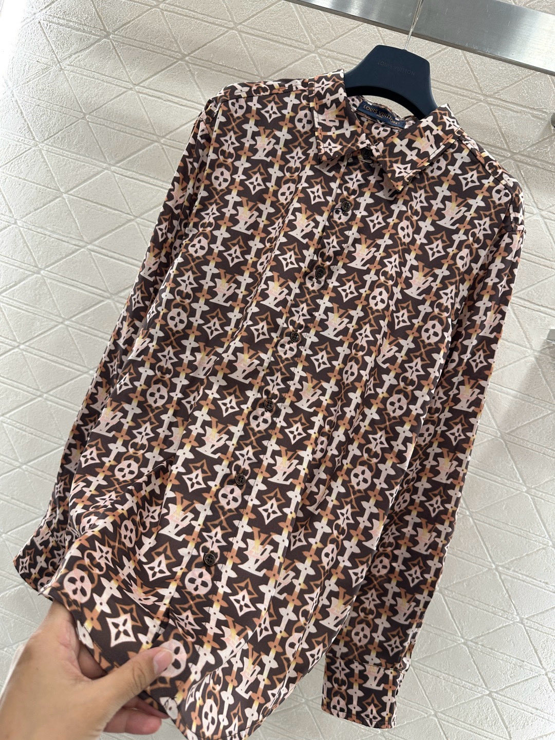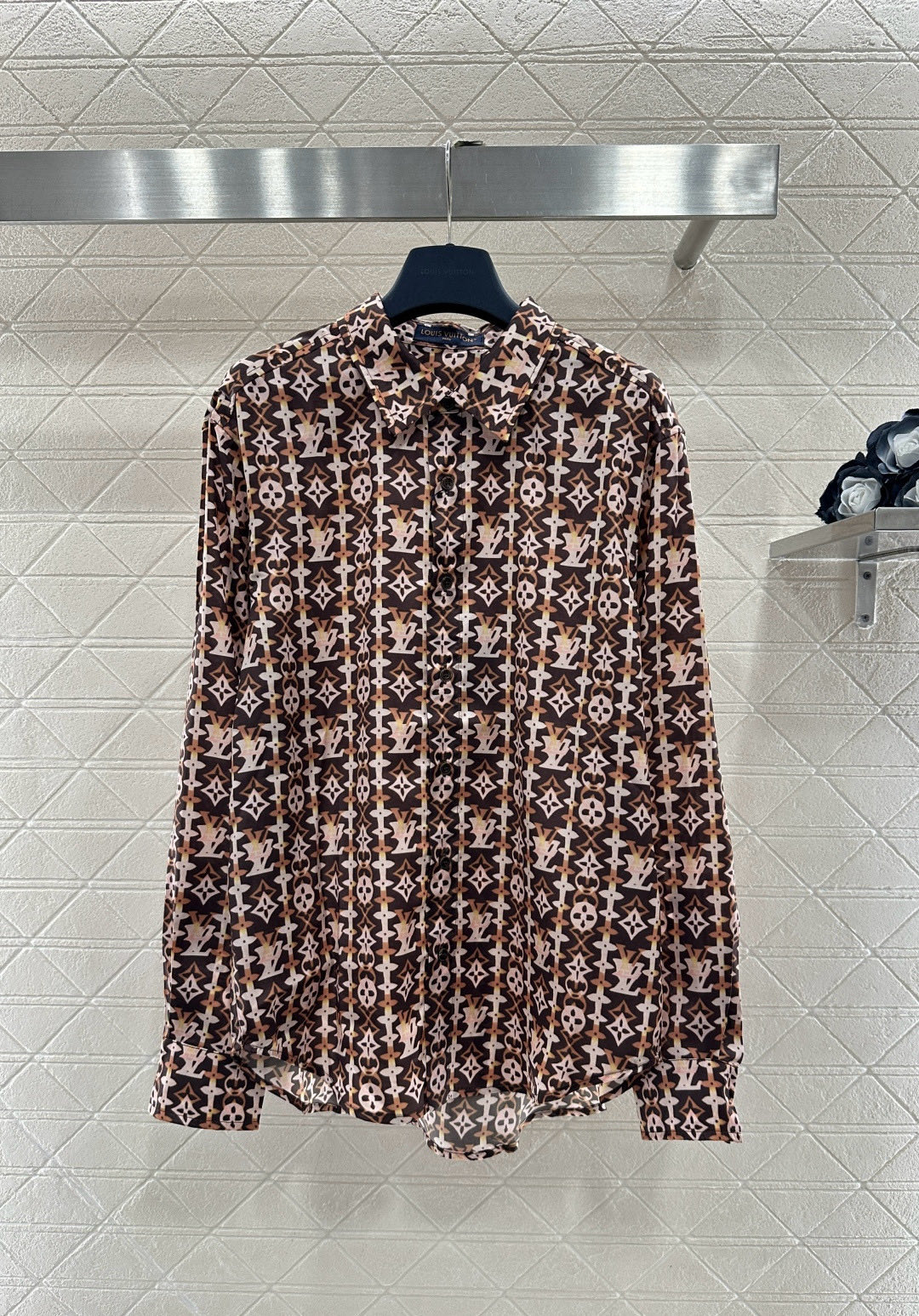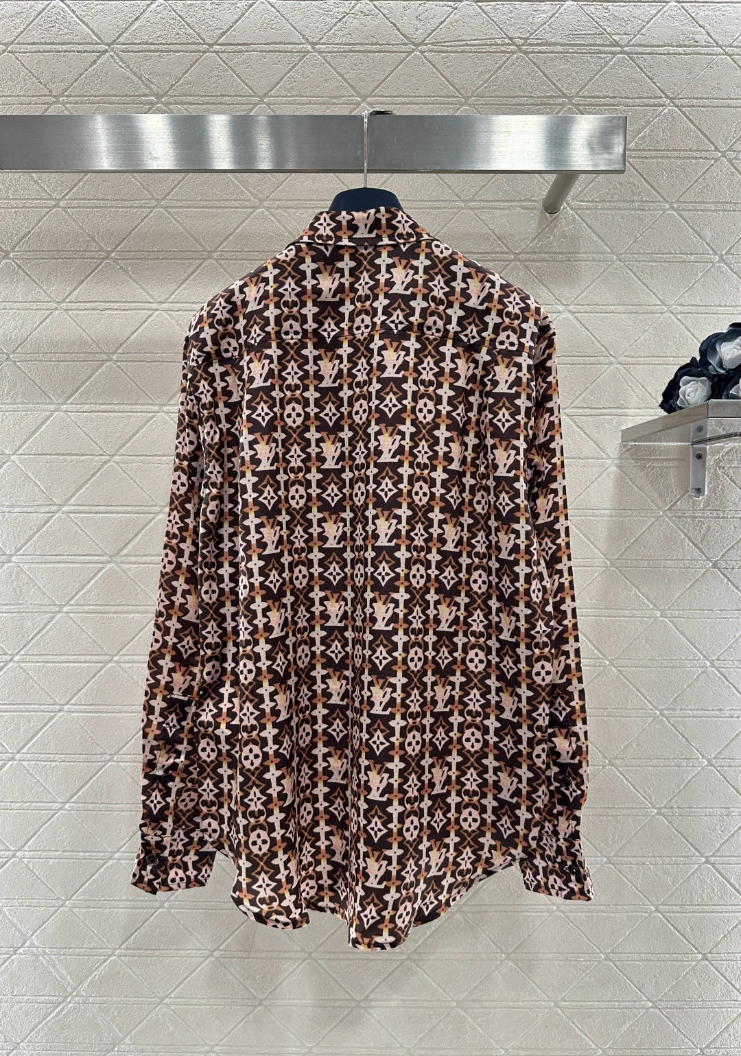 Details: New Silk Shirt with All-over Brown Monogram, Loose Fit, Ideal for Casual Wear
