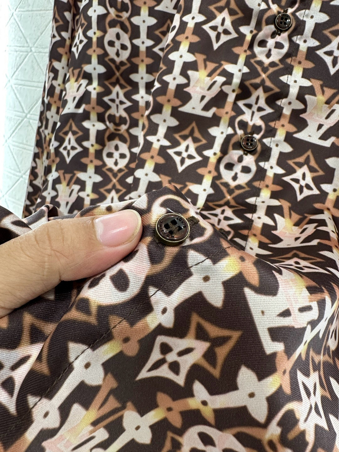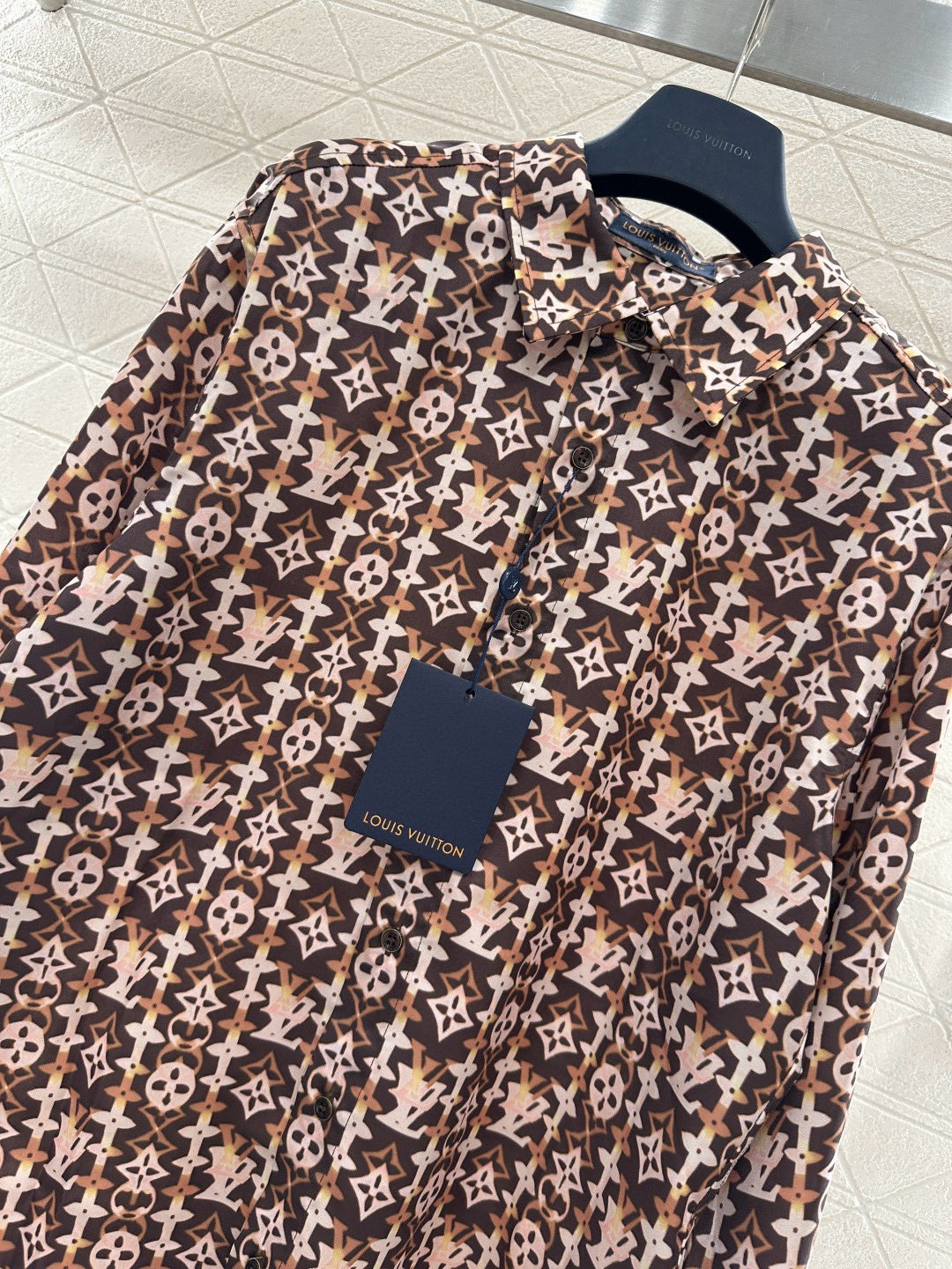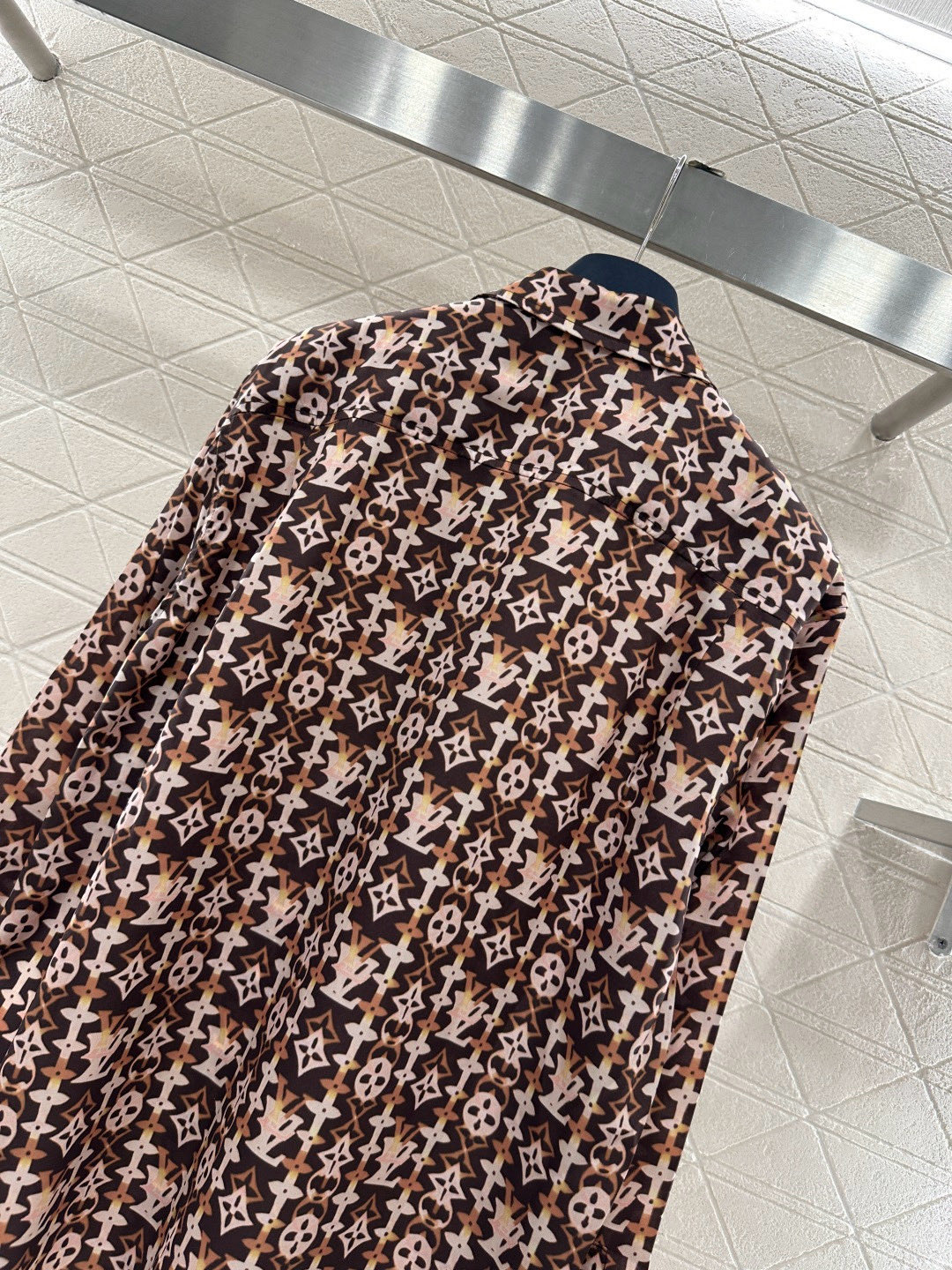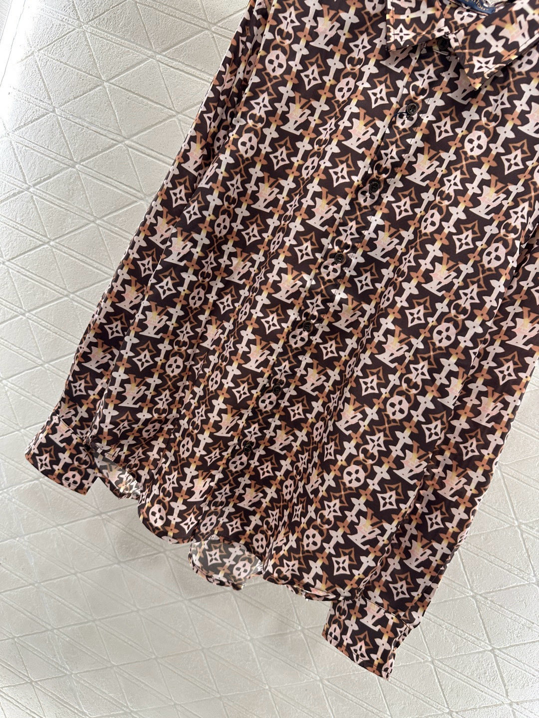 Details: New Silk Shirt with All-over Brown Monogram, Loose Fit, Ideal for Casual Wear