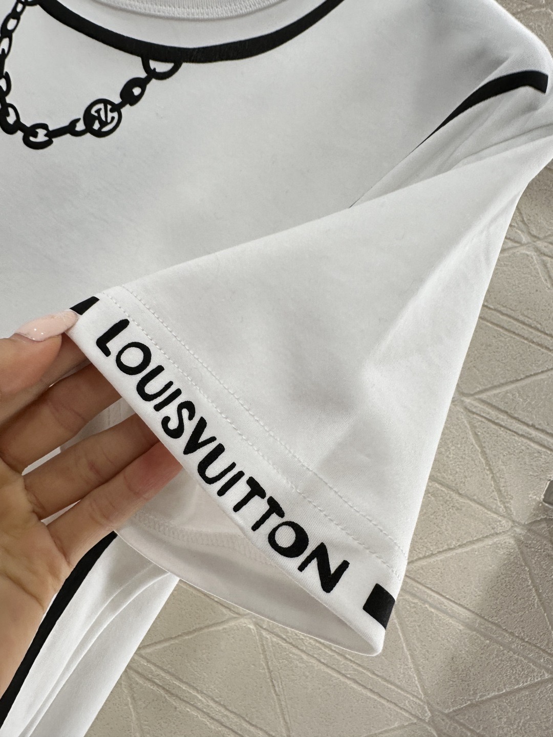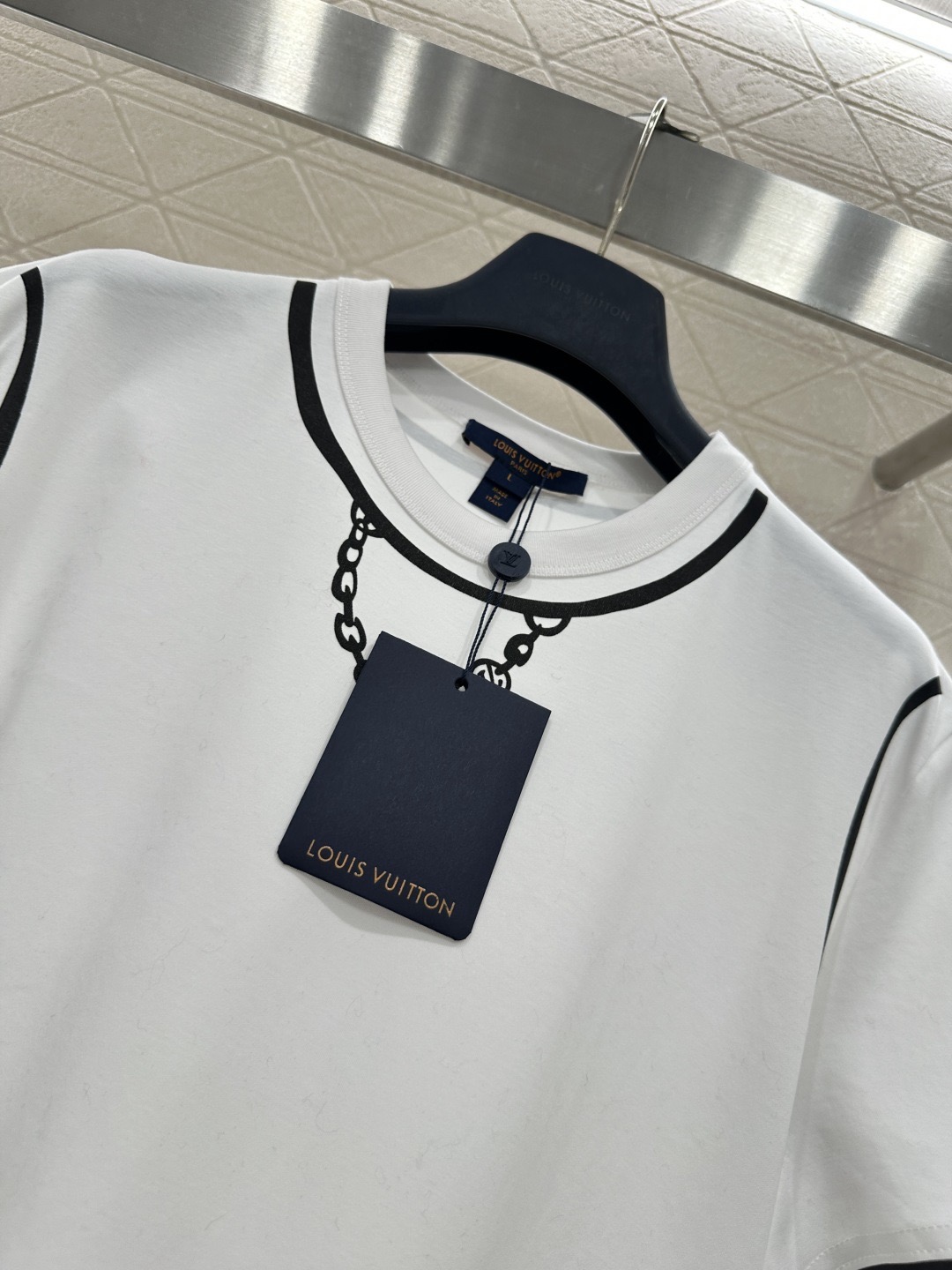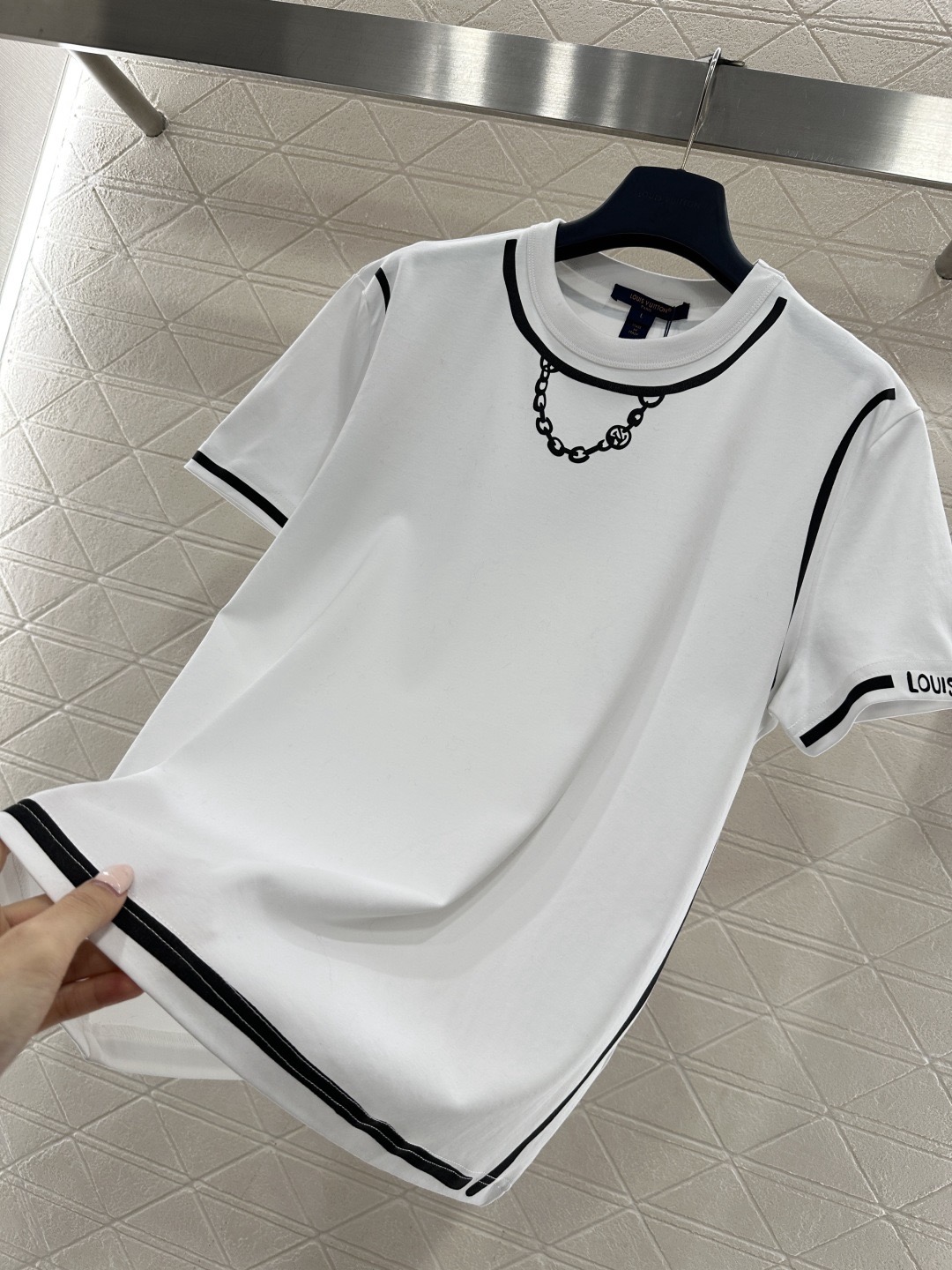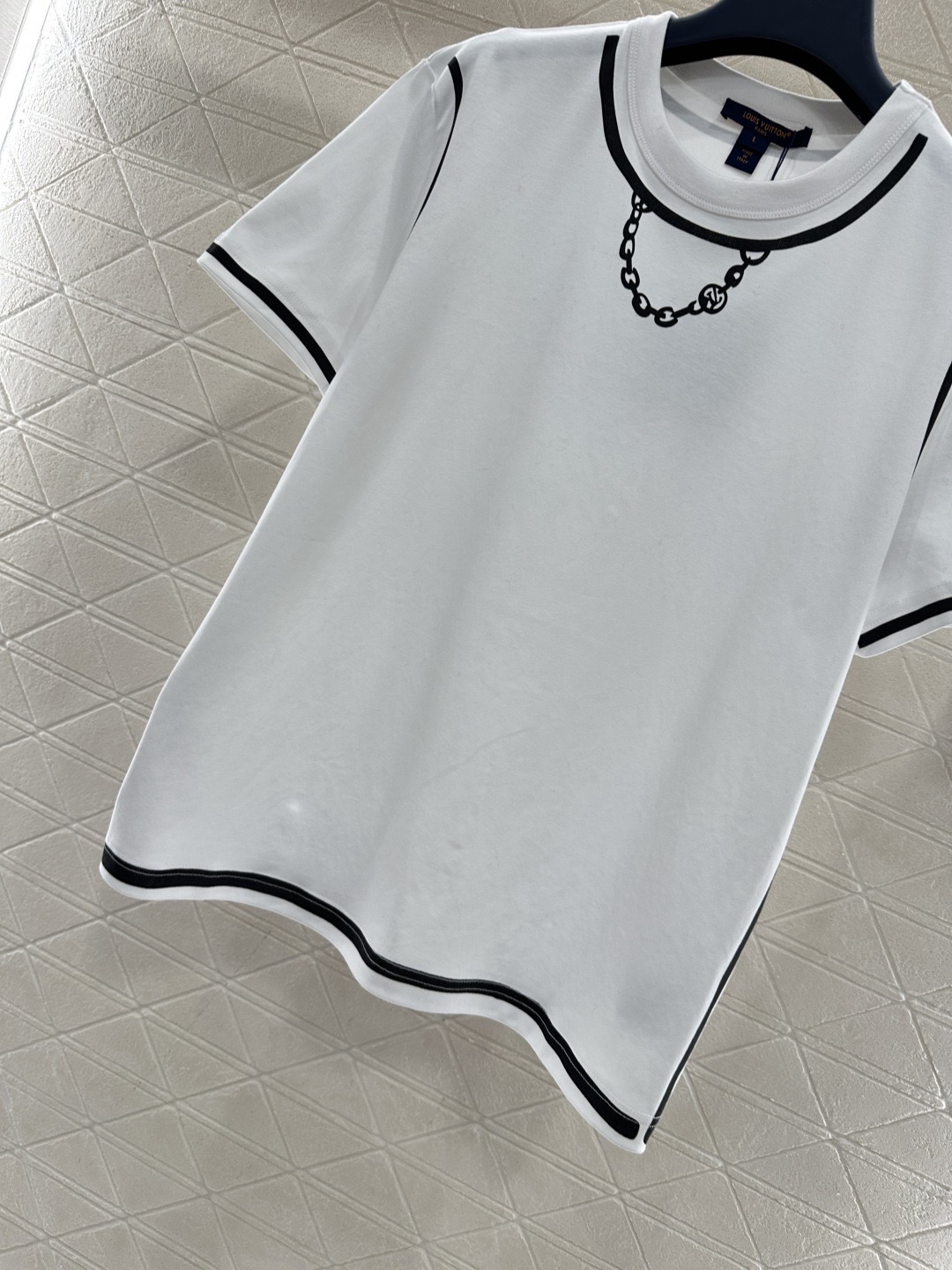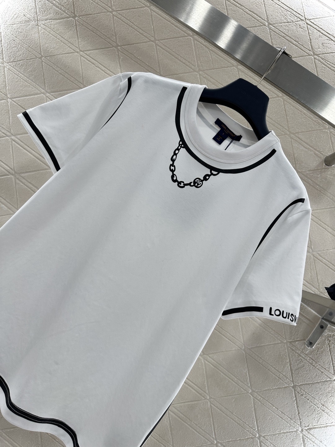 Details: Chain Print Round Neck T-shirt, Breathable Cotton, Classic Fit, Essential Wardrobe Piece