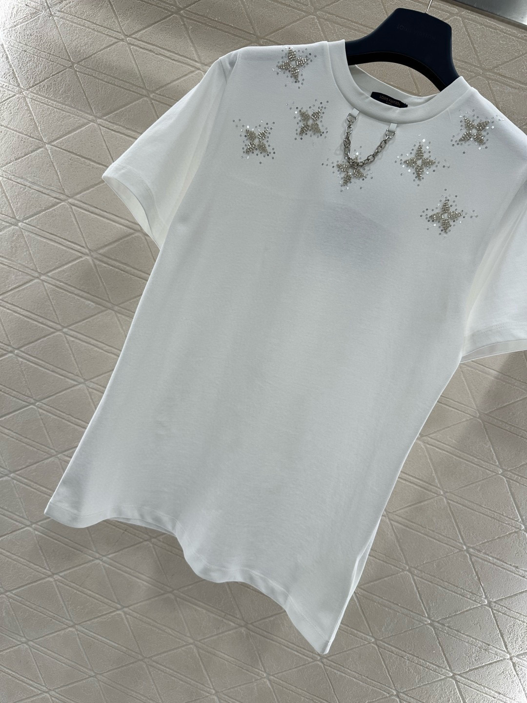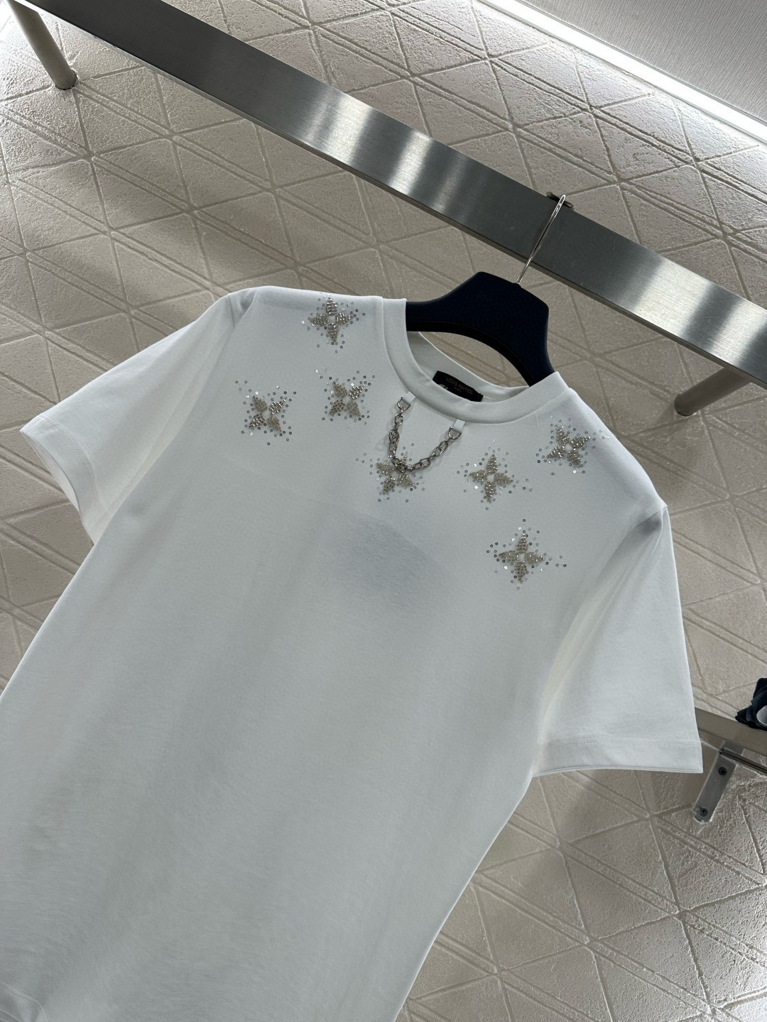 Details: New T - shirt, customized cotton, starlight print, metal chain, 2 colors