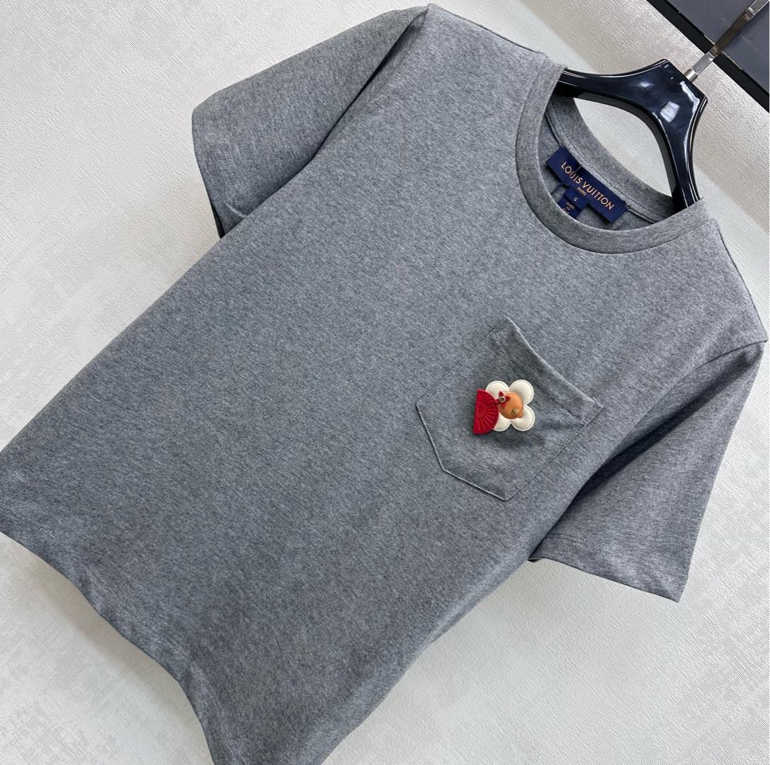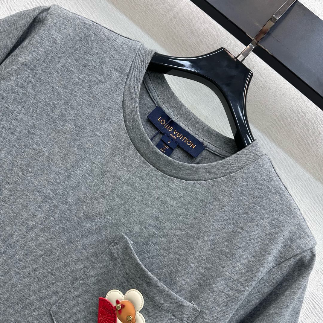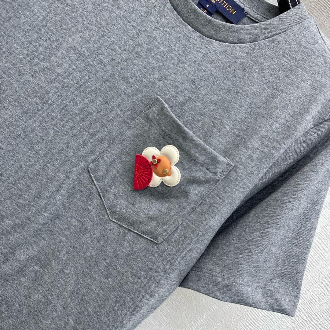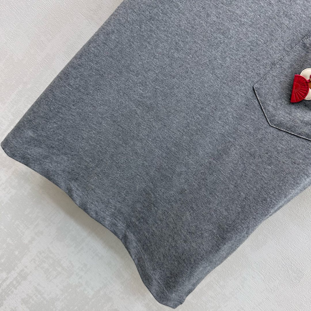 Details: Round-neck T-shirt with Pocket and Logo, High-quality Cotton, Stylish, High-end Customization, Fine Workmanship