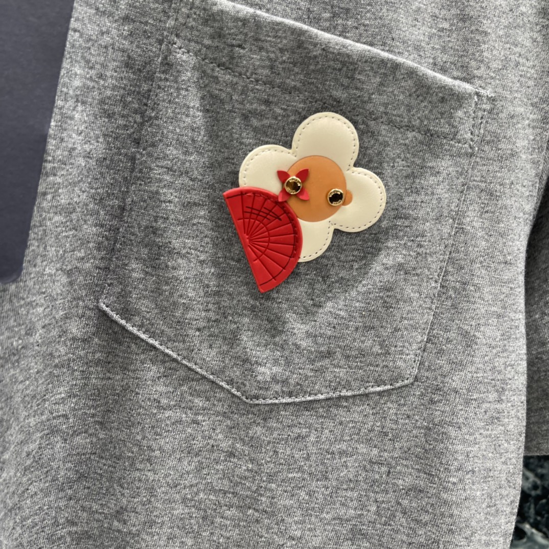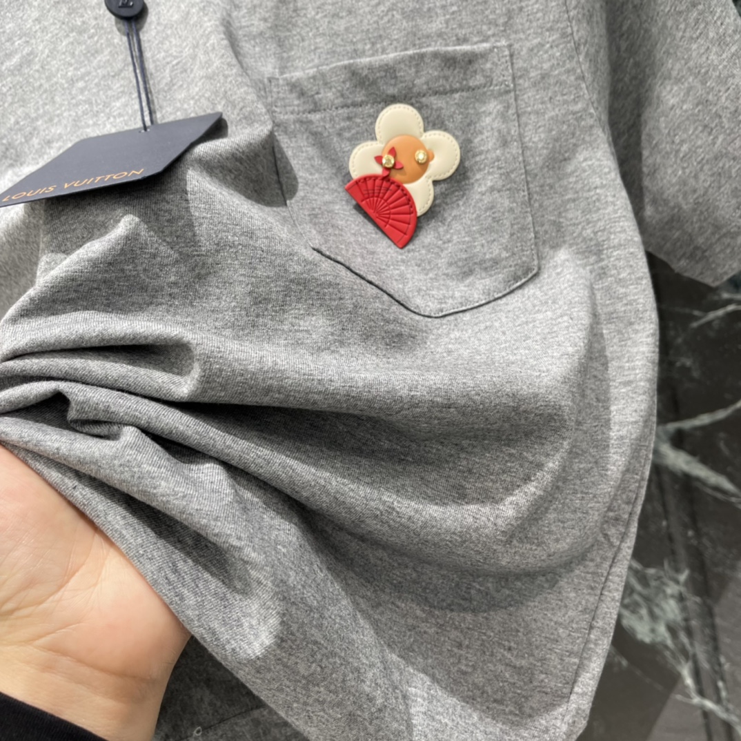 Details: Spring new flower pocket T-shirt, 3D flower embroidery badge, suitable for daily and social occasions, one color SML.