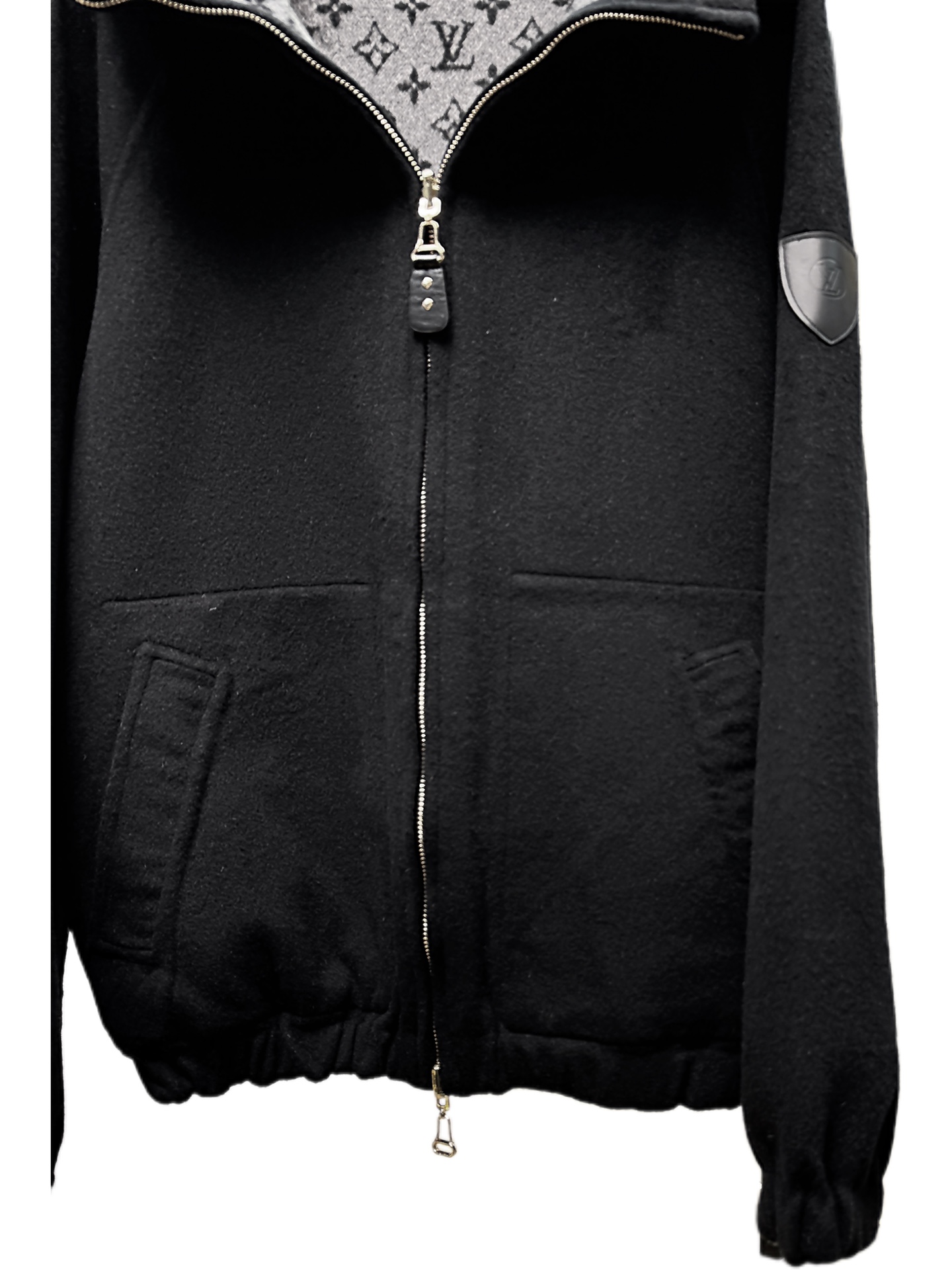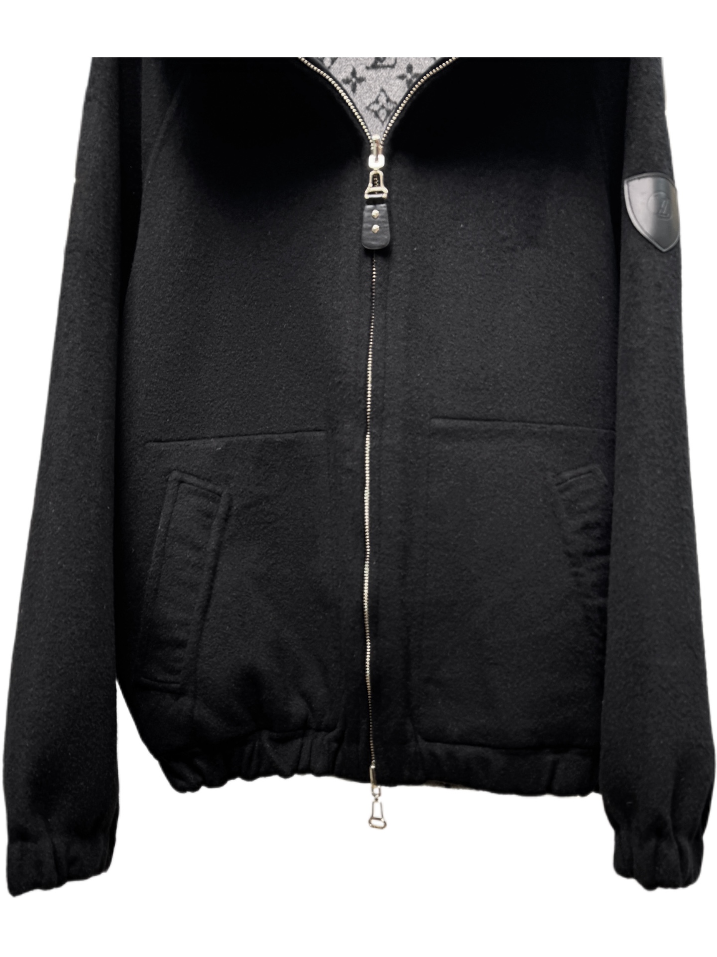 Details: Black baseball jacket, sizes 34-40, 99% wool, 1% silk