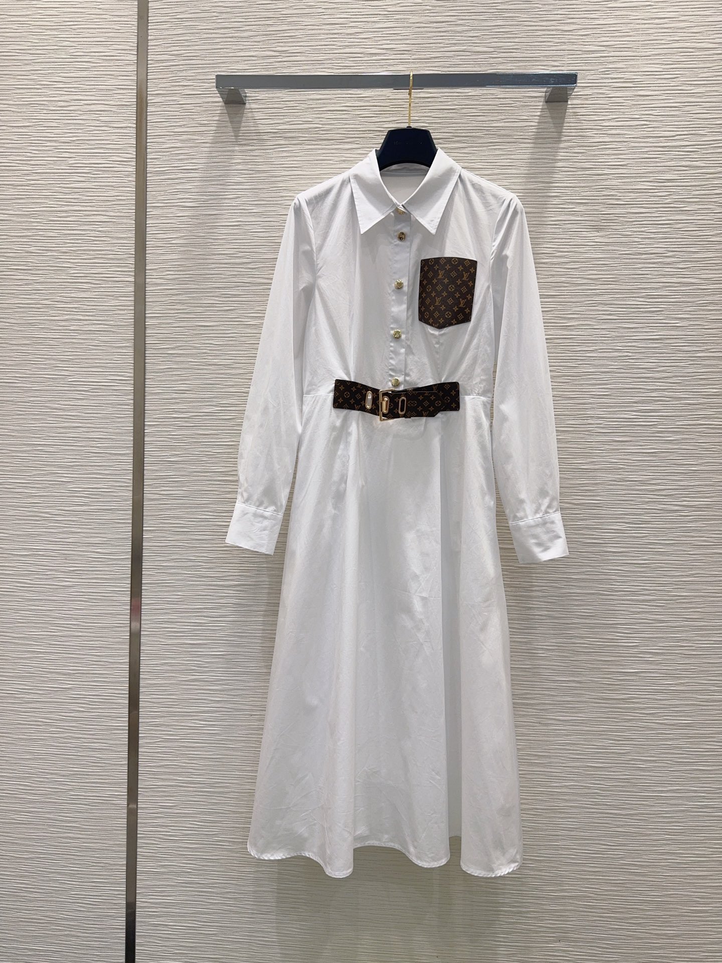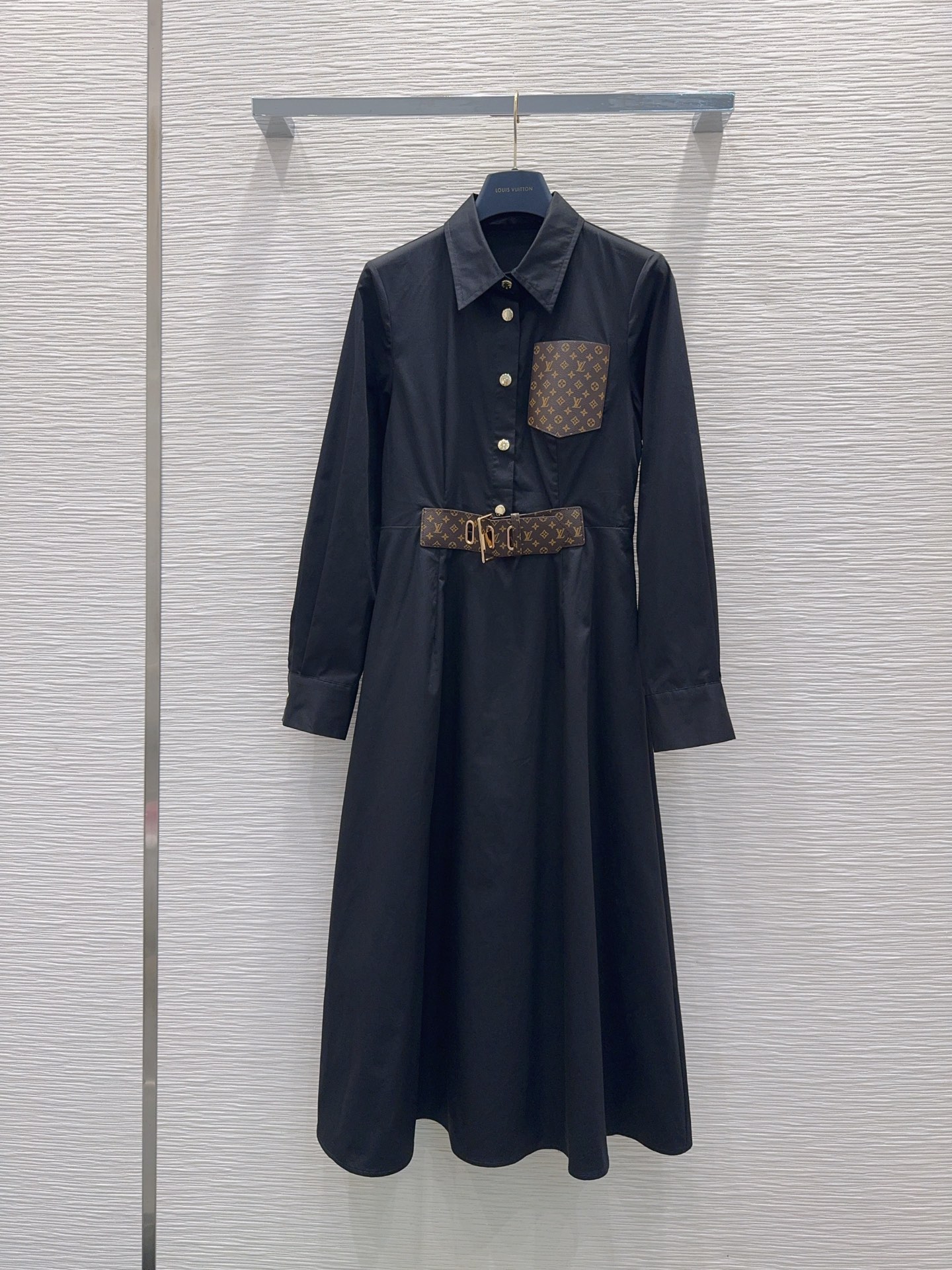 Details: Collared belted shirt dress in black and white, made of custom twill cotton, suitable for all seasons.