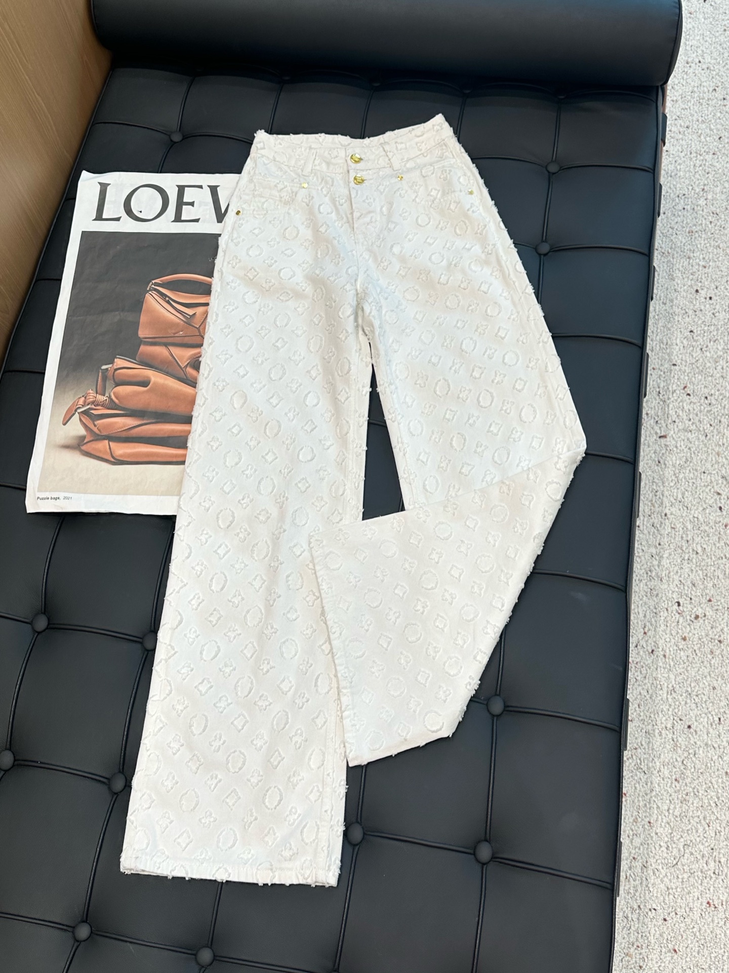 Details: Three-dimensional Jacquard Straight-leg Jeans, Platinum Contrast, High-end Custom, Fine Workmanship, Elegant