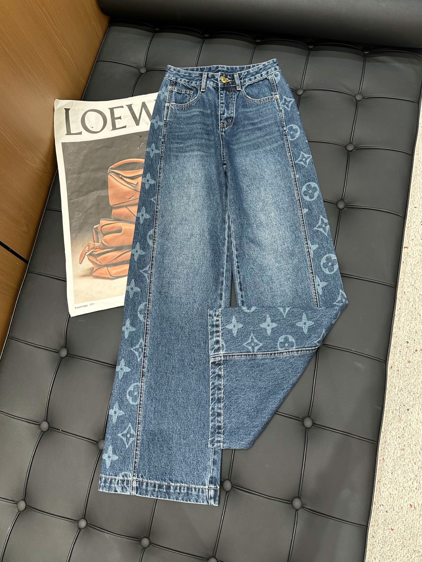 Louis Vuitton Designer Original Side Floral Jeans with Stylish Features