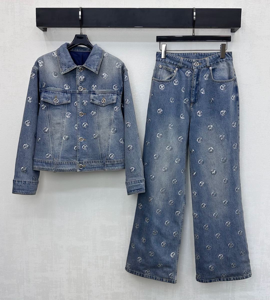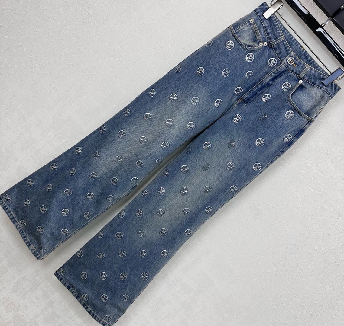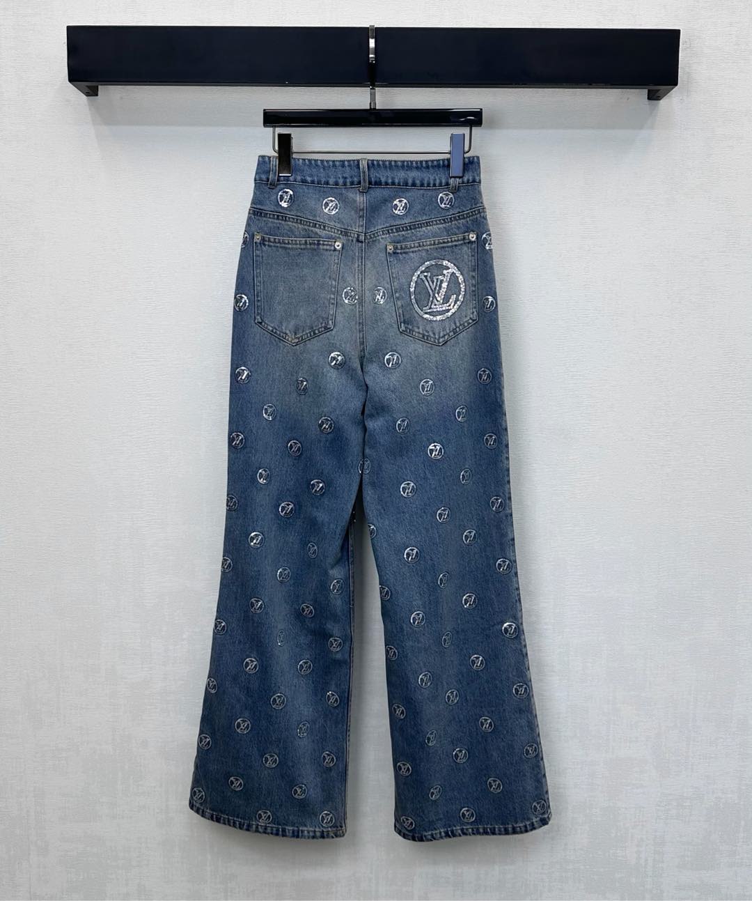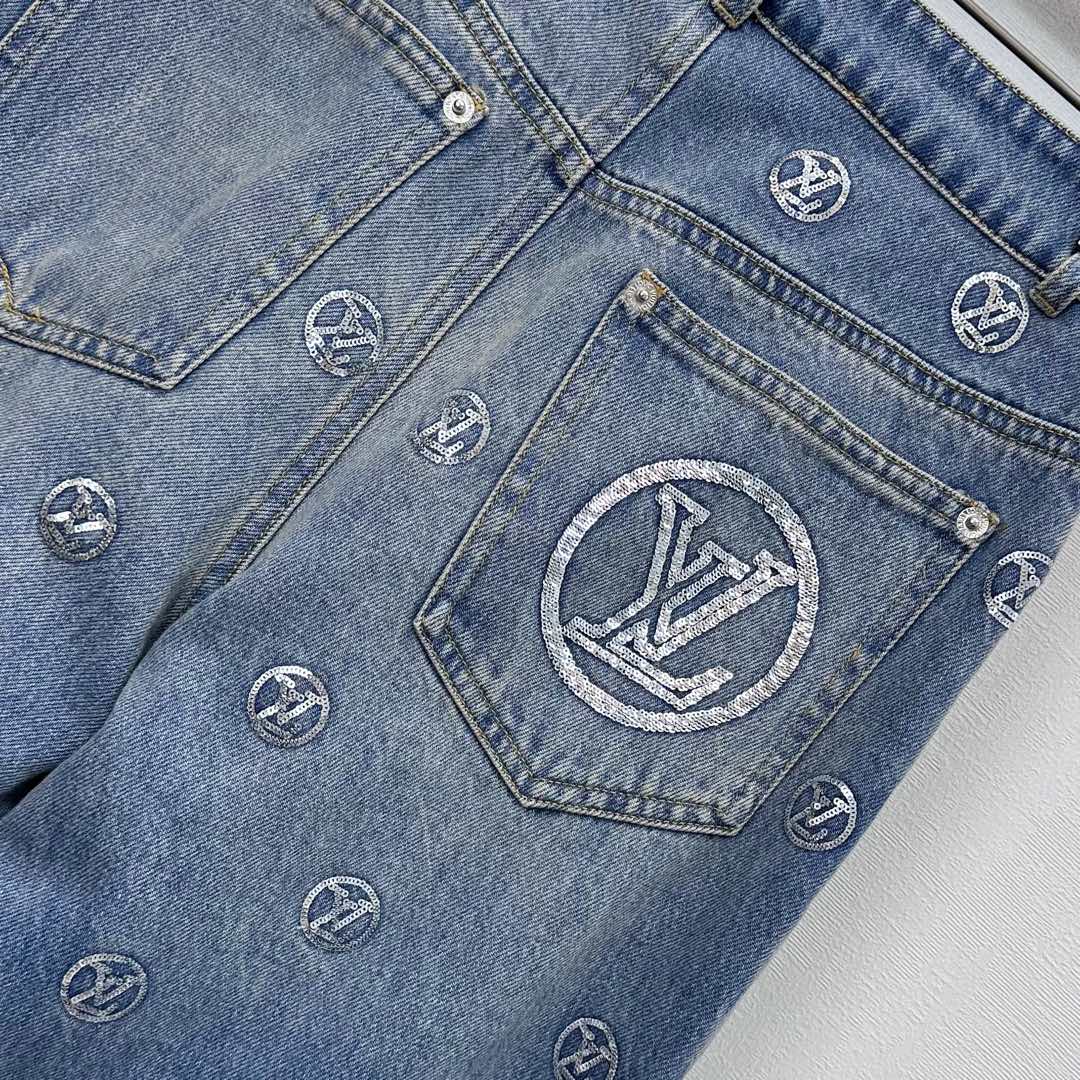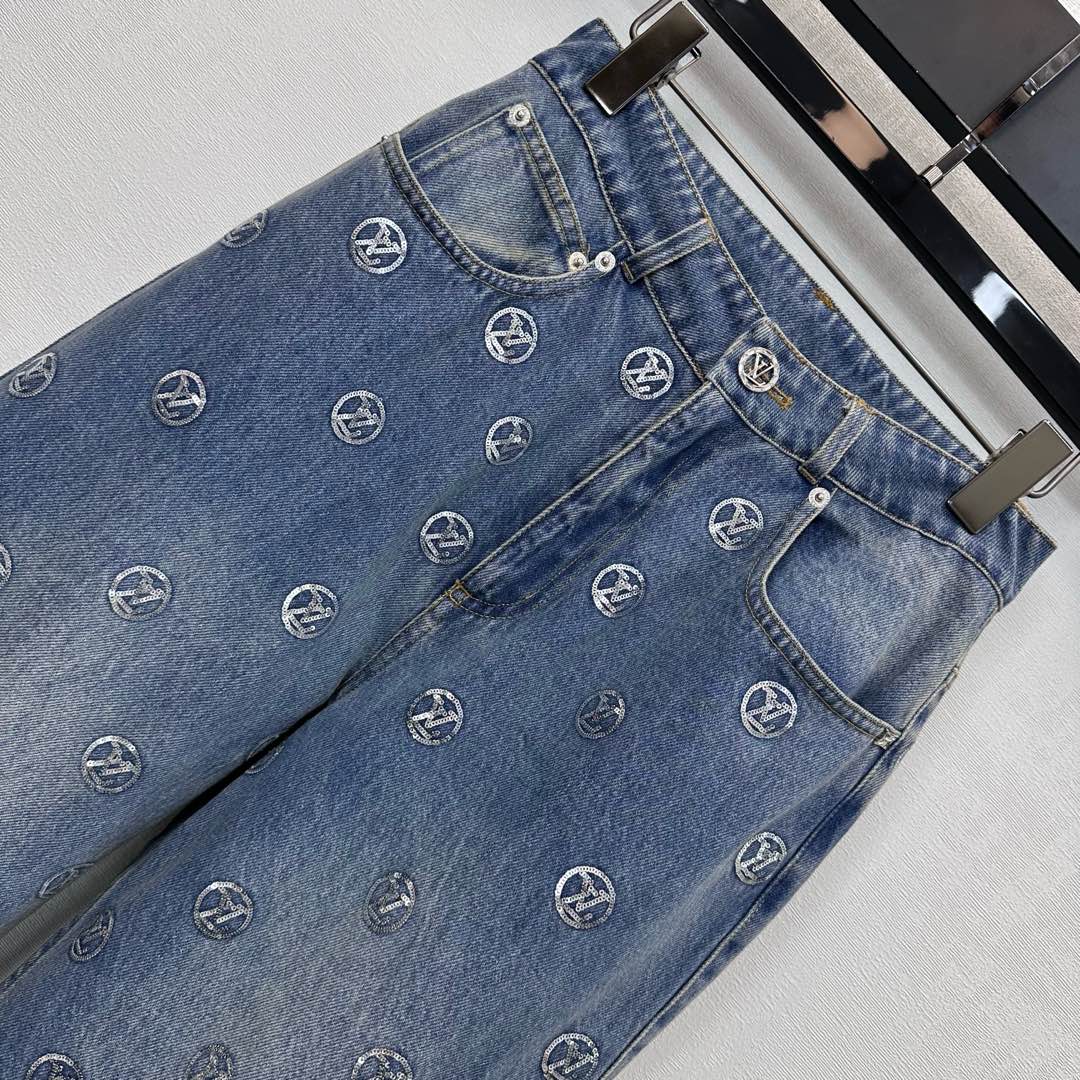Details: Embroidered Sequin Denim Trousers, Straight-leg and Trendy