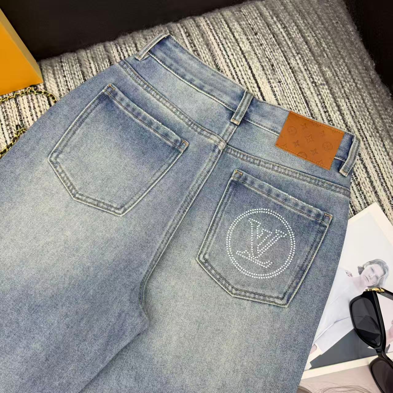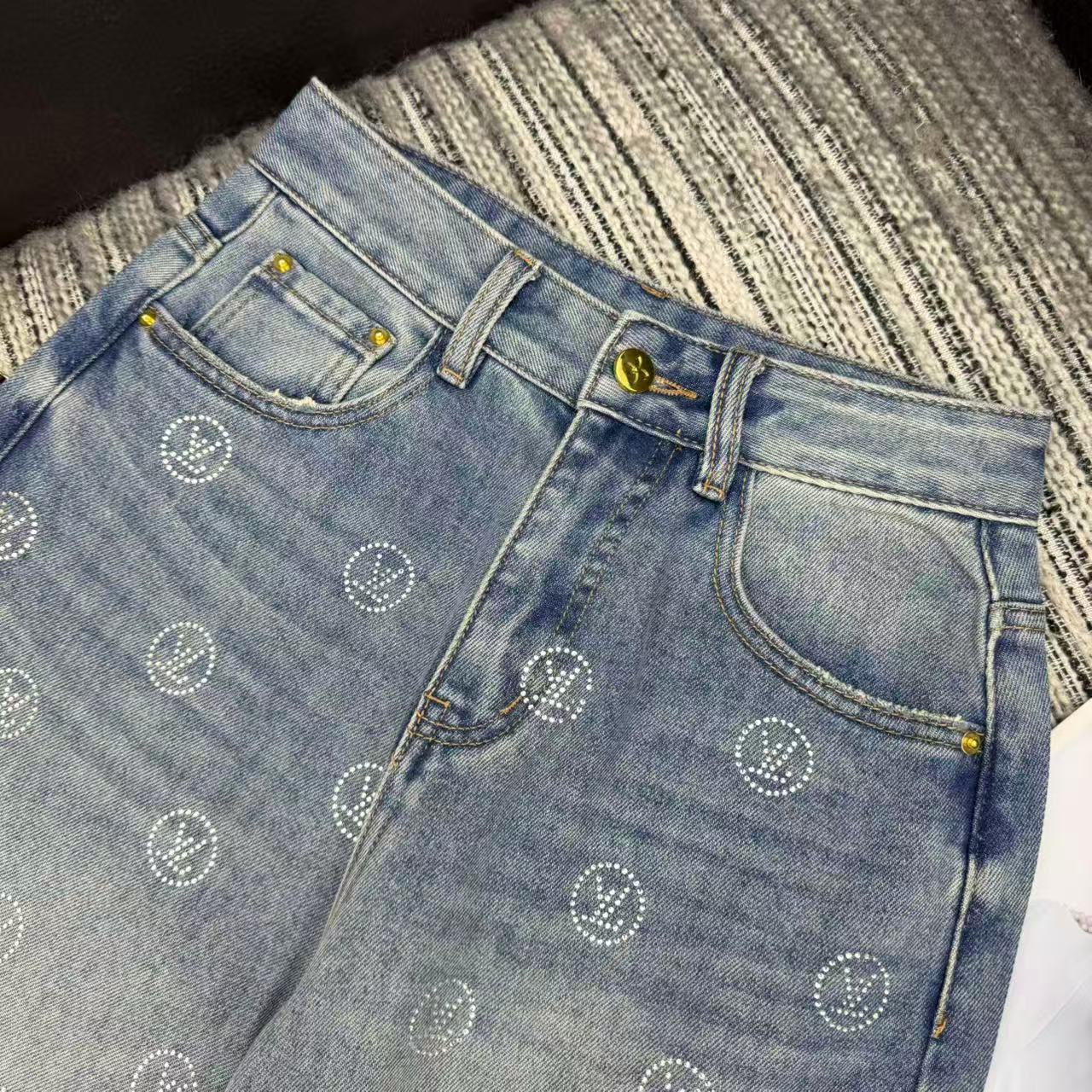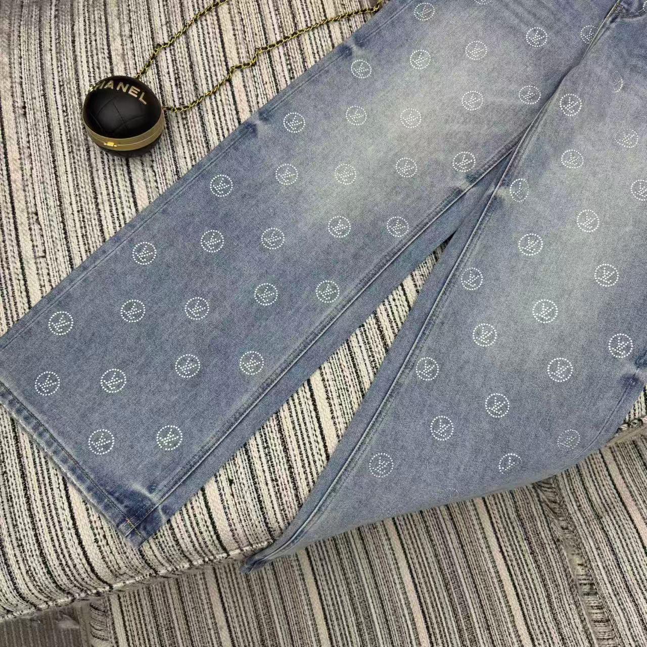 Details: New rhinestone logo denim wide-leg pants for the early autumn and winter, with a nice wash color, available in S, M, L, XL sizes