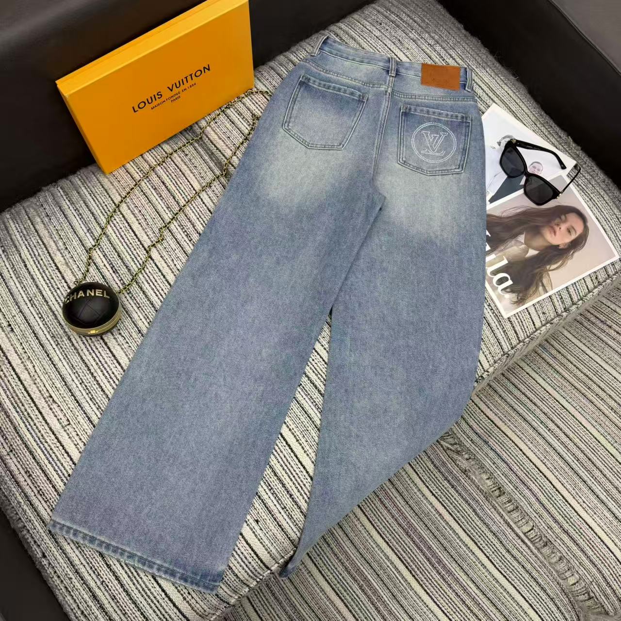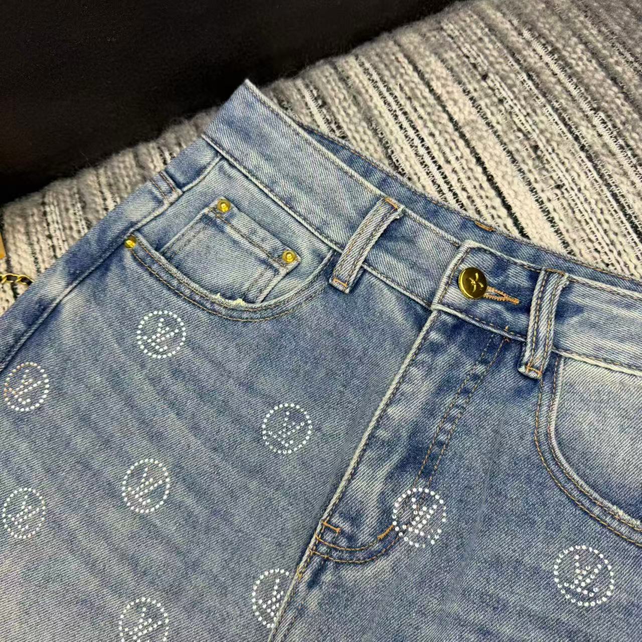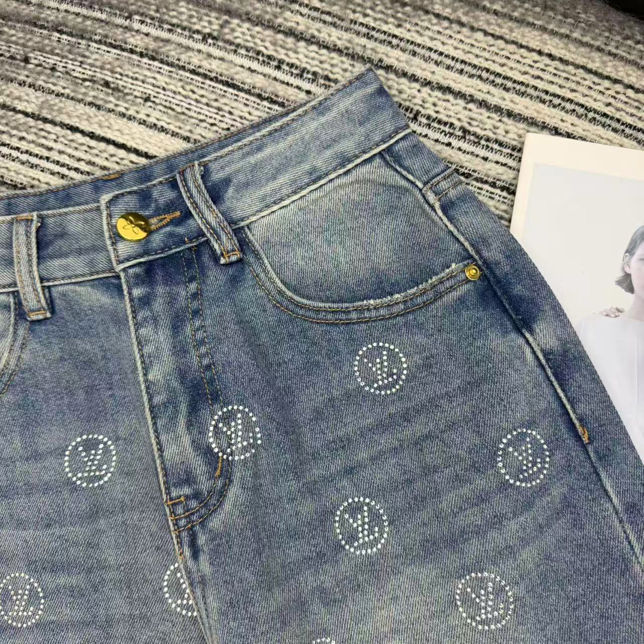 Details: New rhinestone logo denim wide-leg pants for the early autumn and winter, with a nice wash color, available in S, M, L, XL sizes