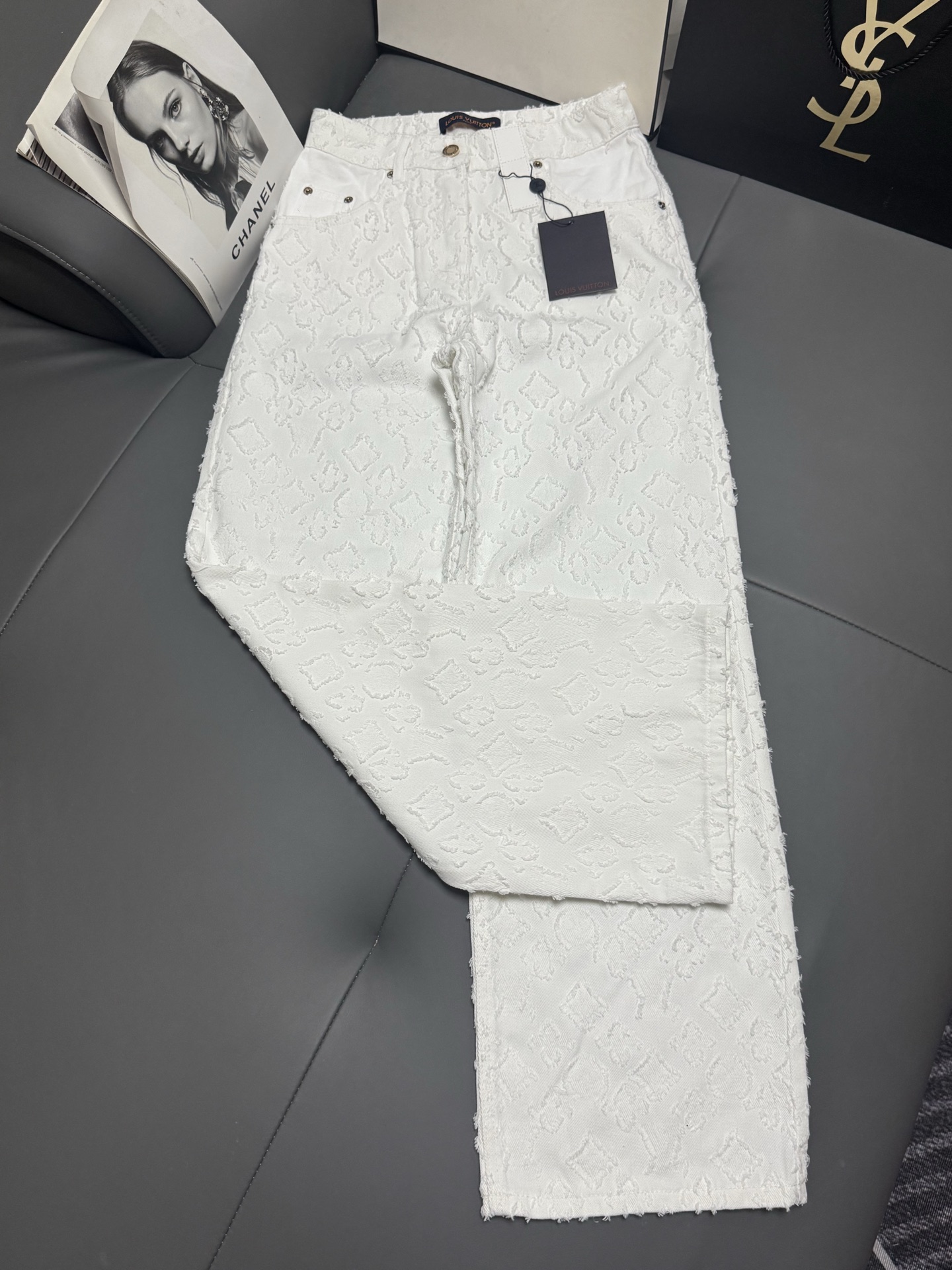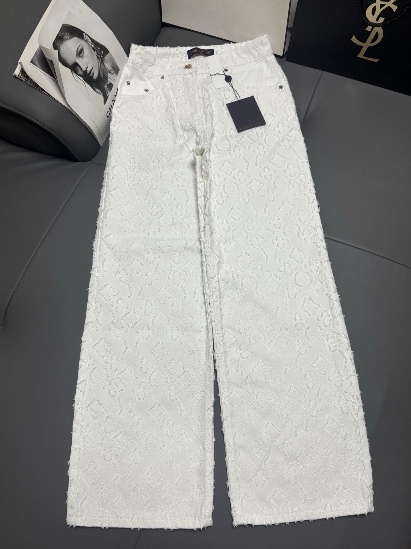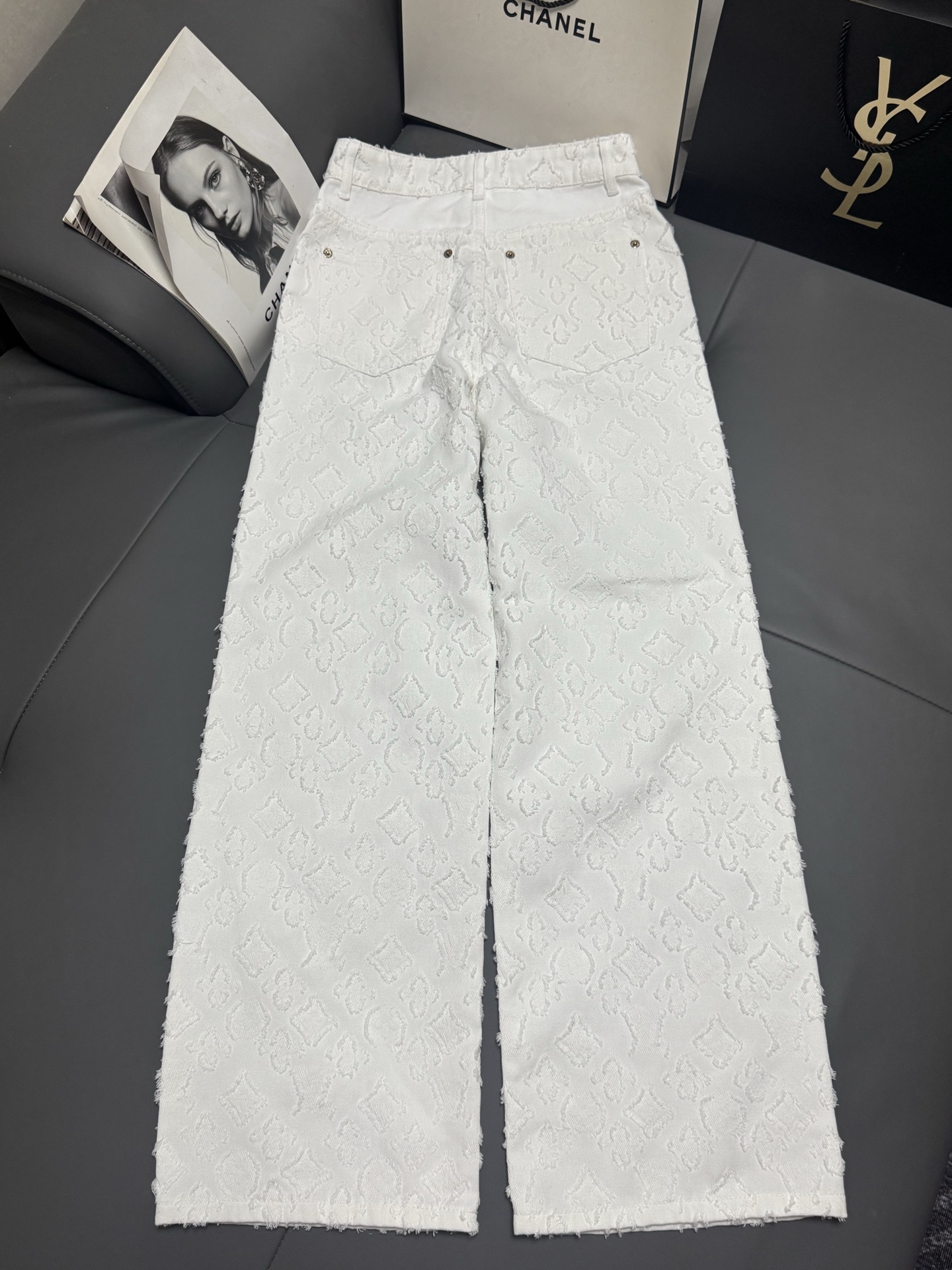 Details: New early autumn white denim trousers, soft and luxurious, high-waisted wide-leg style