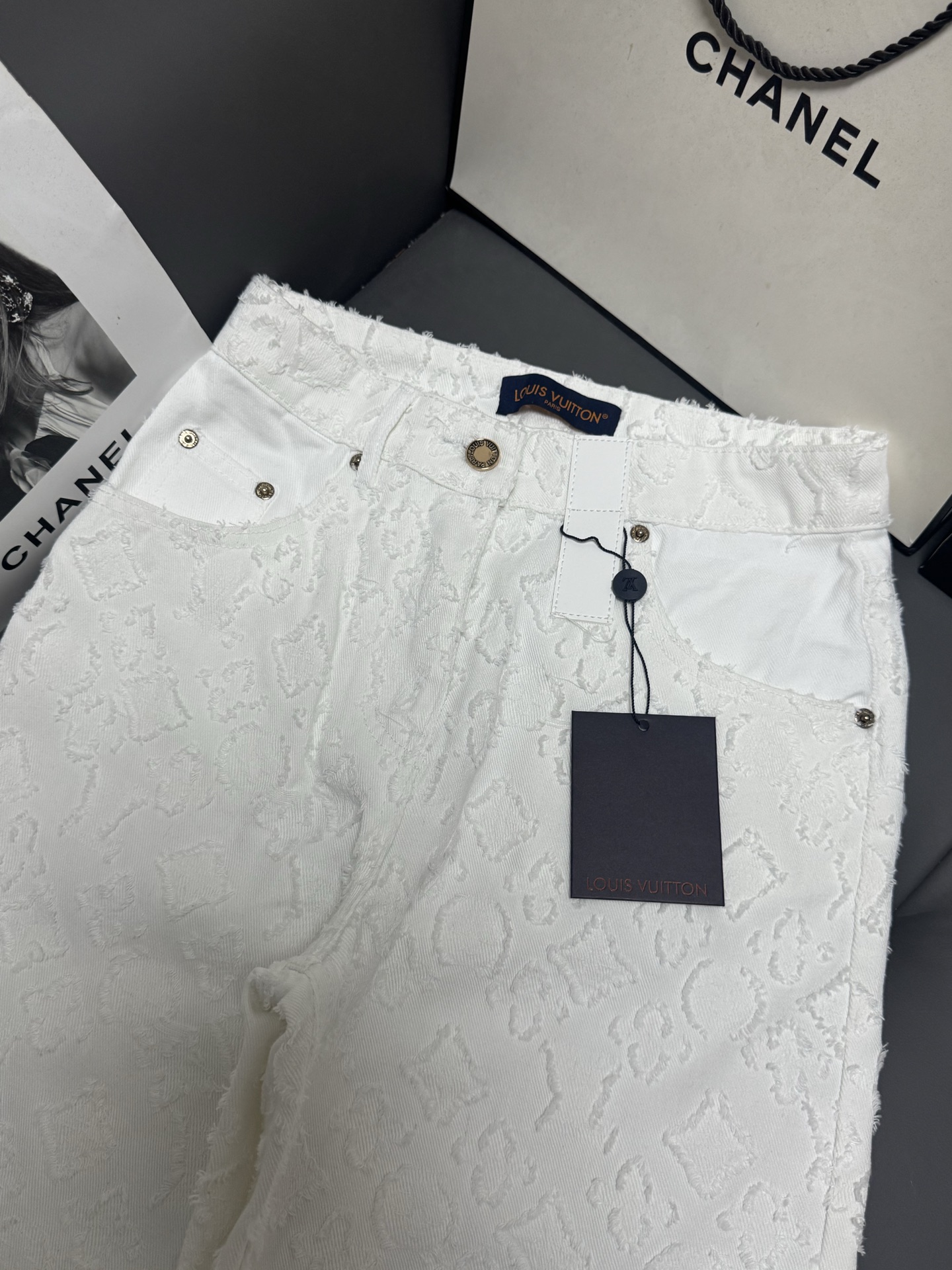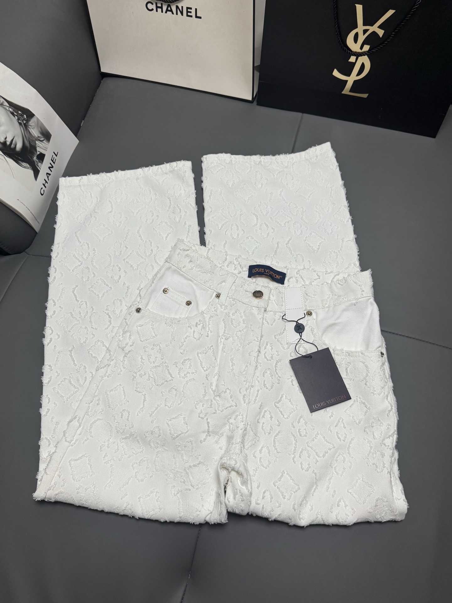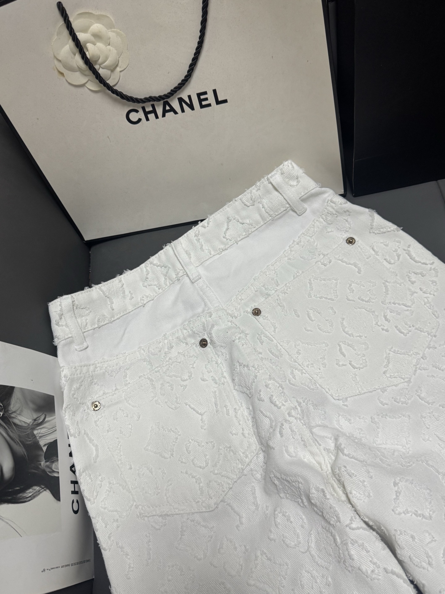 Details: New early autumn white denim trousers, soft and luxurious, high-waisted wide-leg style
