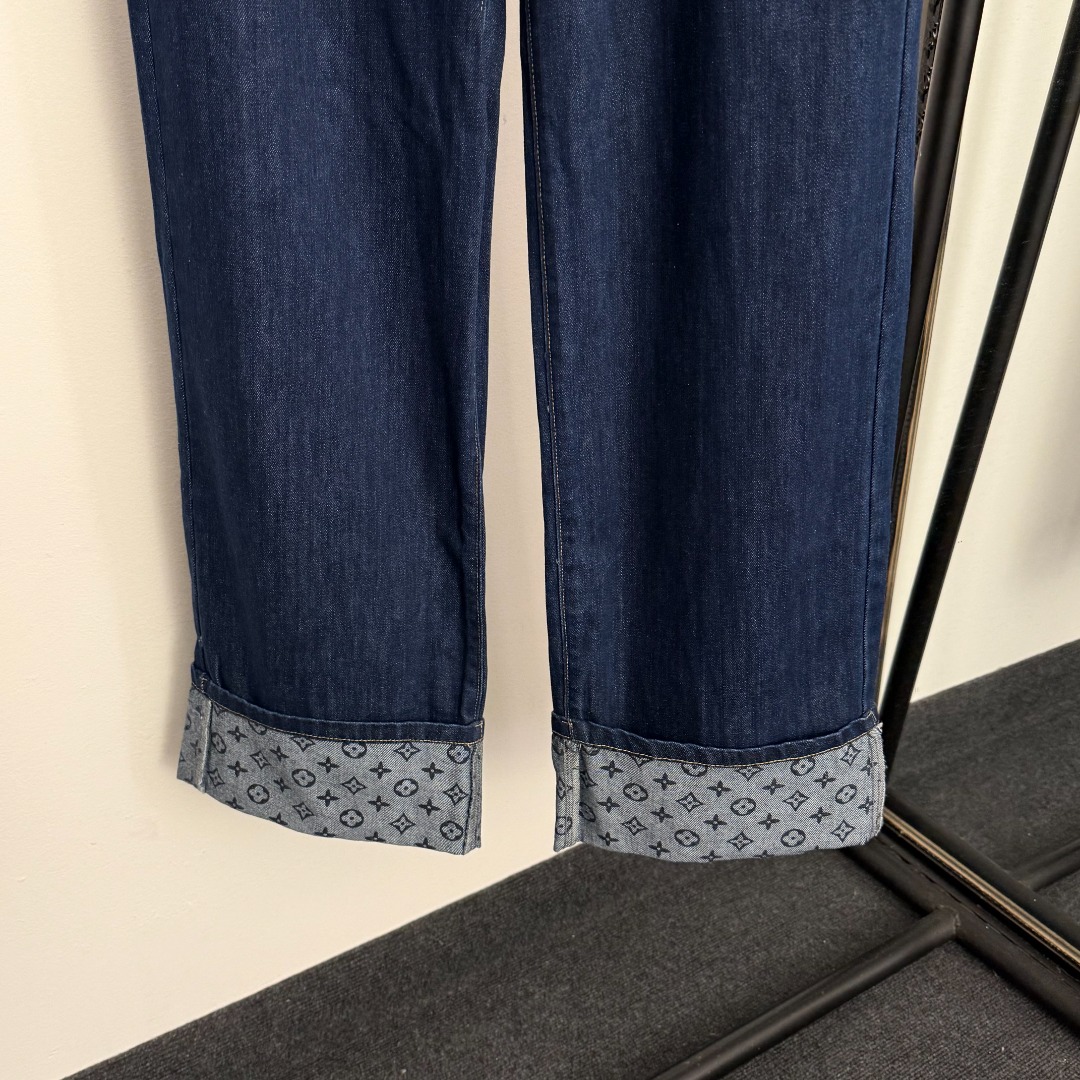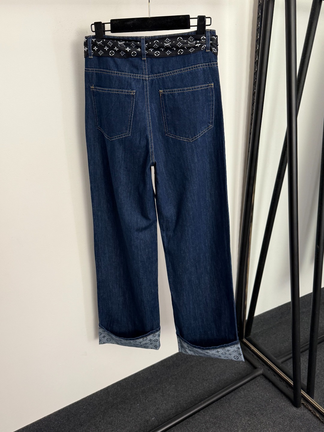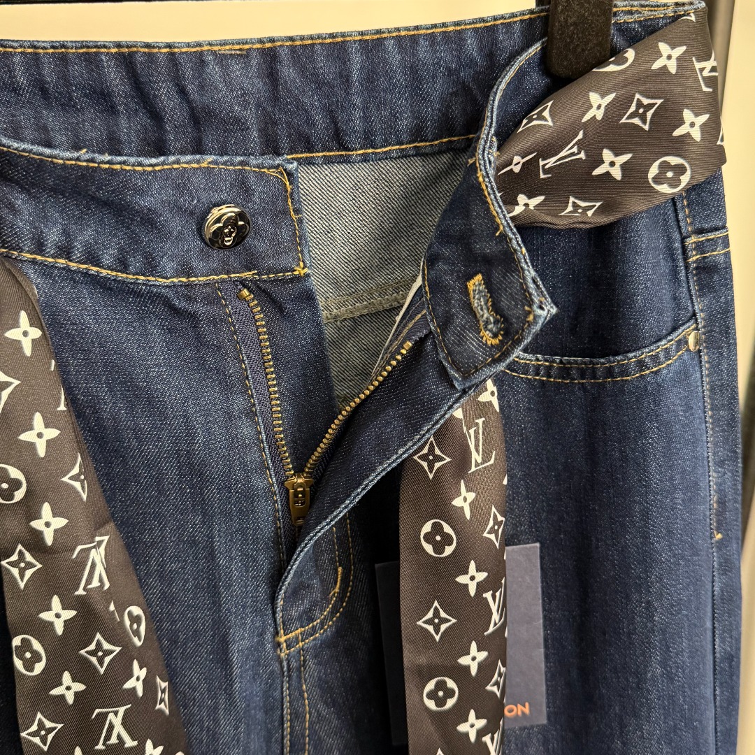 Louis Vuitton New Monogram Logo Scarf Belted High-Waisted Slimming Jeans in Blue