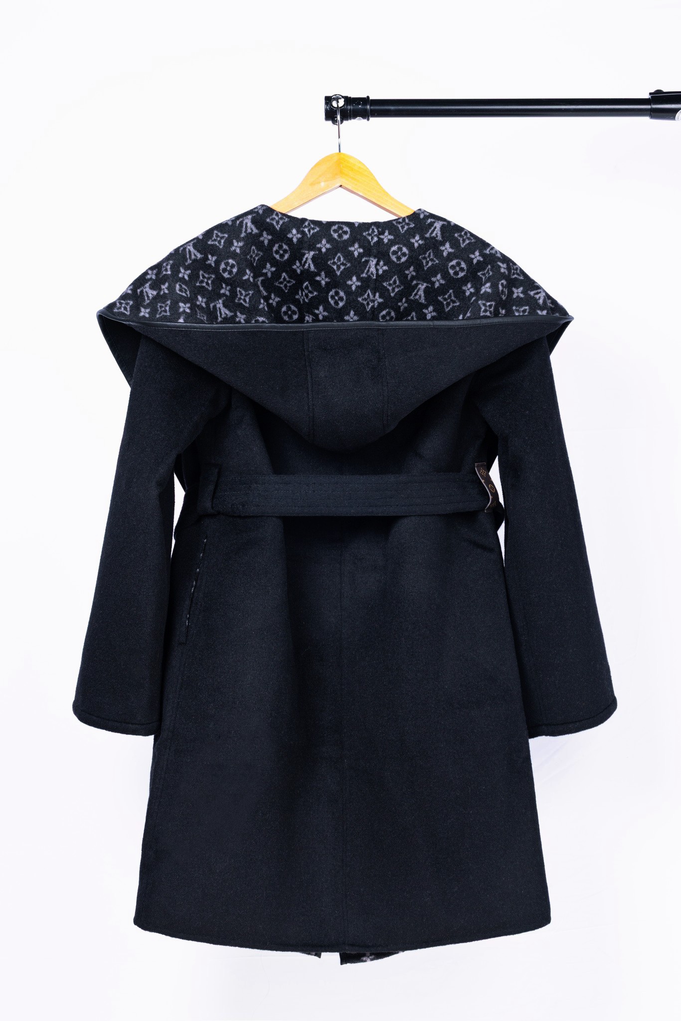 Details: Black small flower long coat, size 34-40, made of 99% wool and 1% silk, comes with a dust bag. High-end custom with fine workmanship