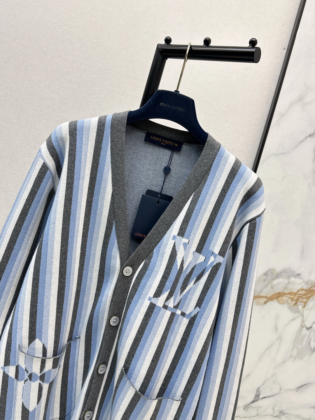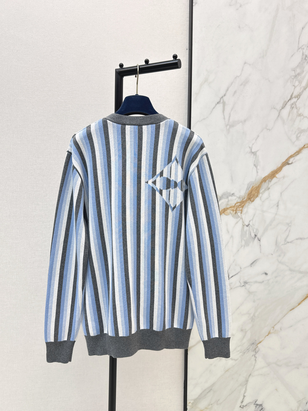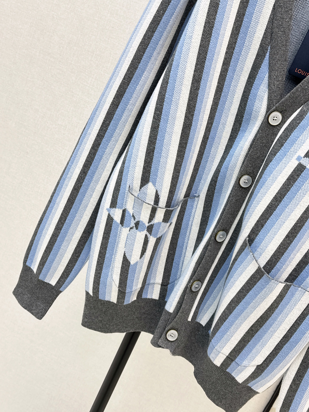 Details: Unisex Striped Knit Cardigan with V-Neck, Lazy Style, Suitable for Single or Layered Wear, One Color Available