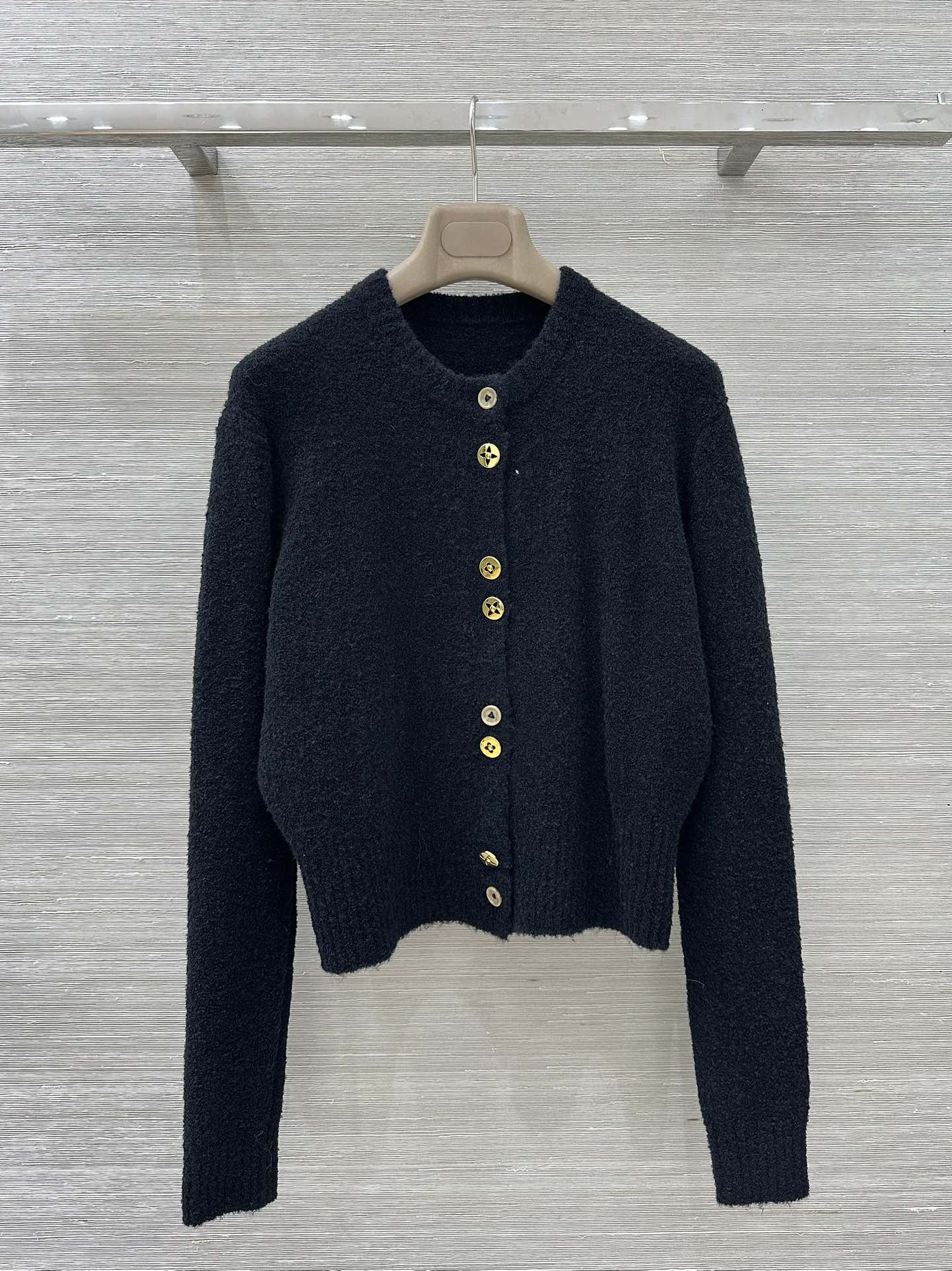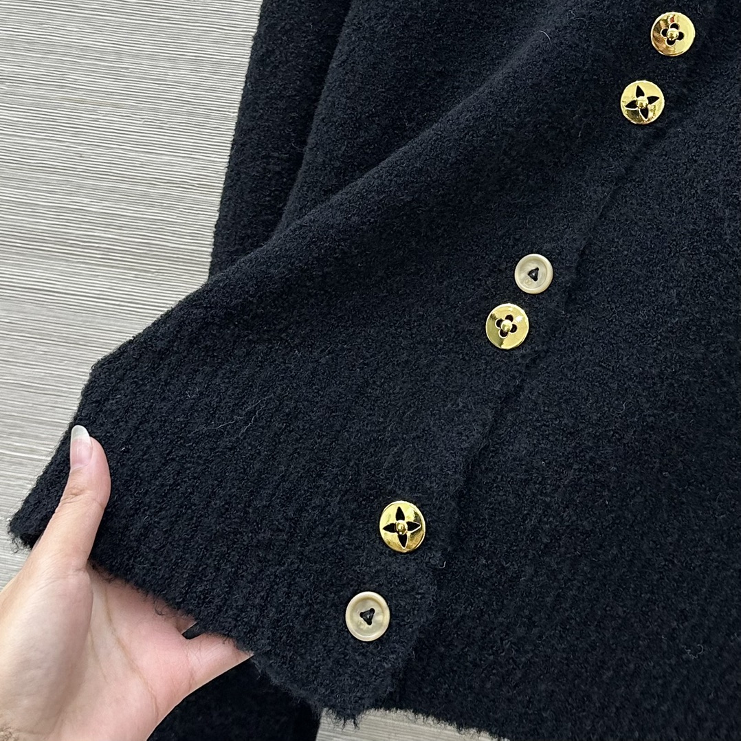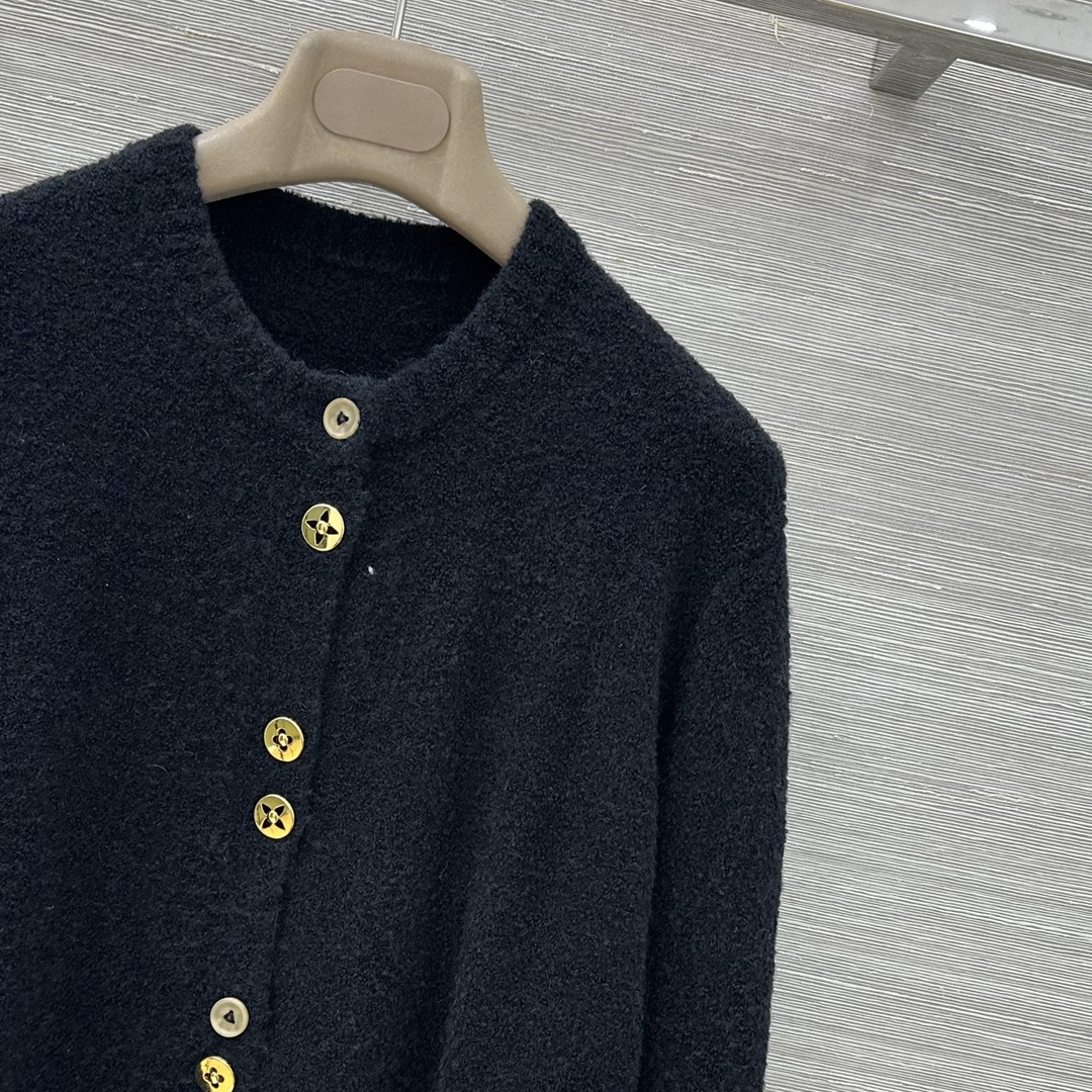 Details: Premium lamb s wool cardigan with custom four-leaf clover gold buttons, high-end customization, exquisite craftsmanship