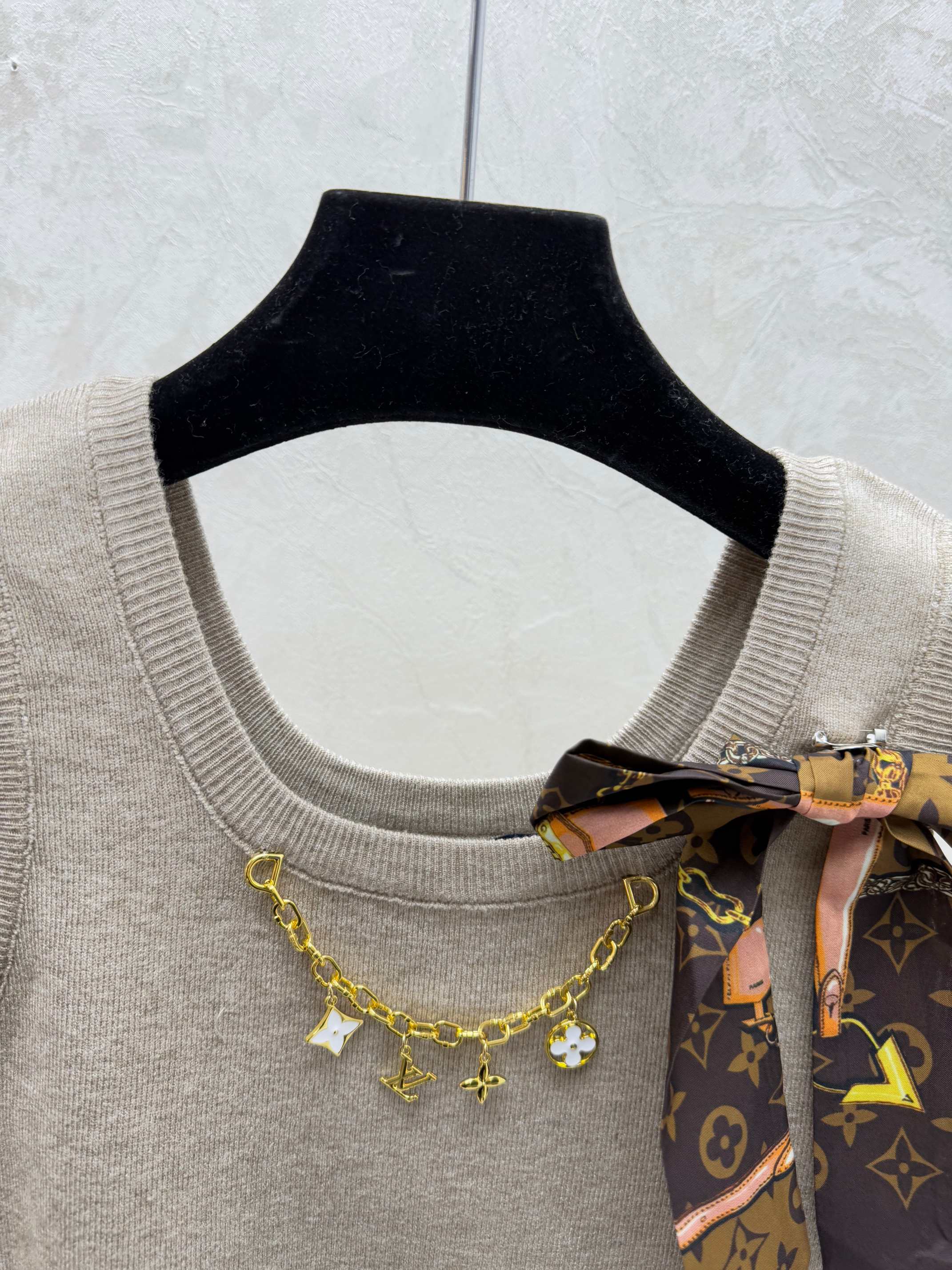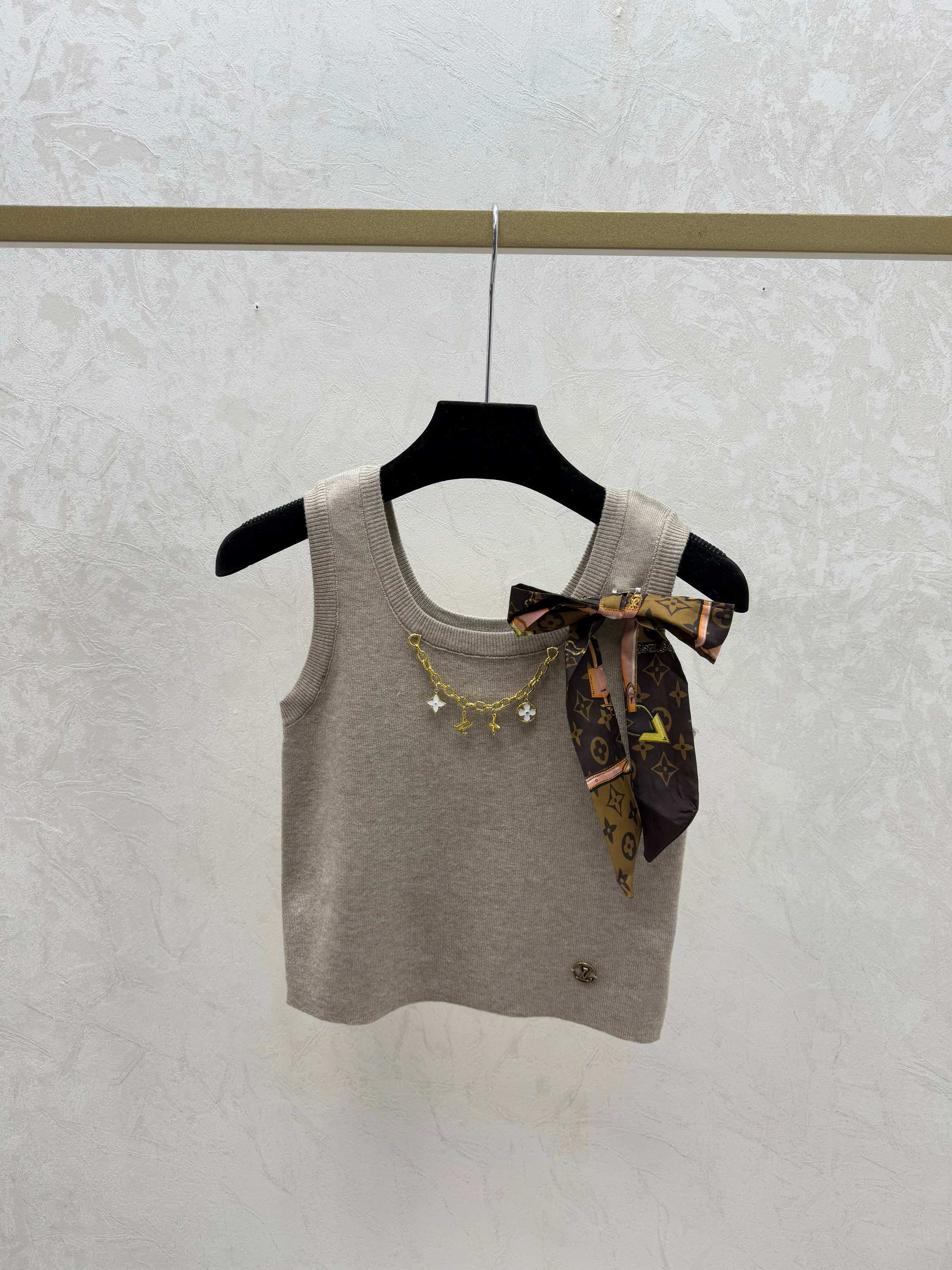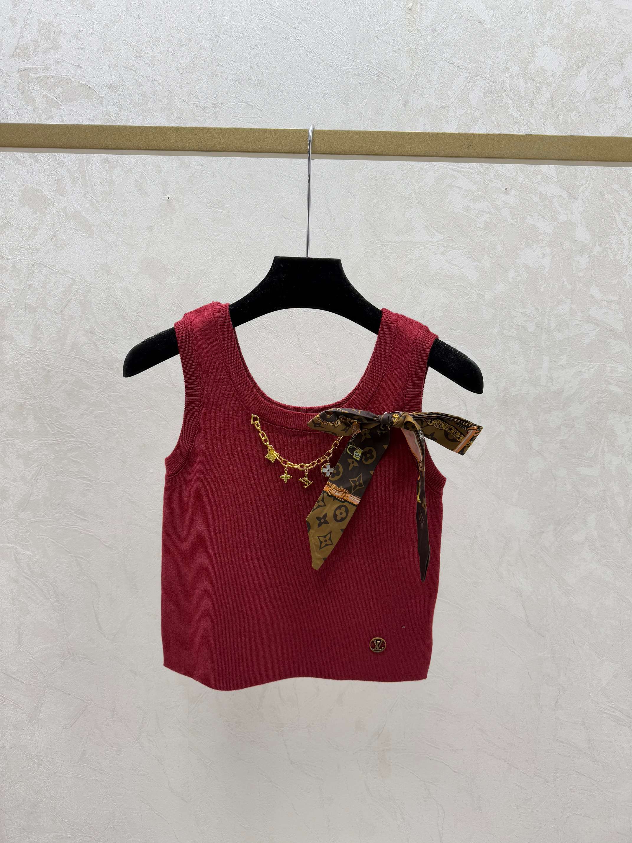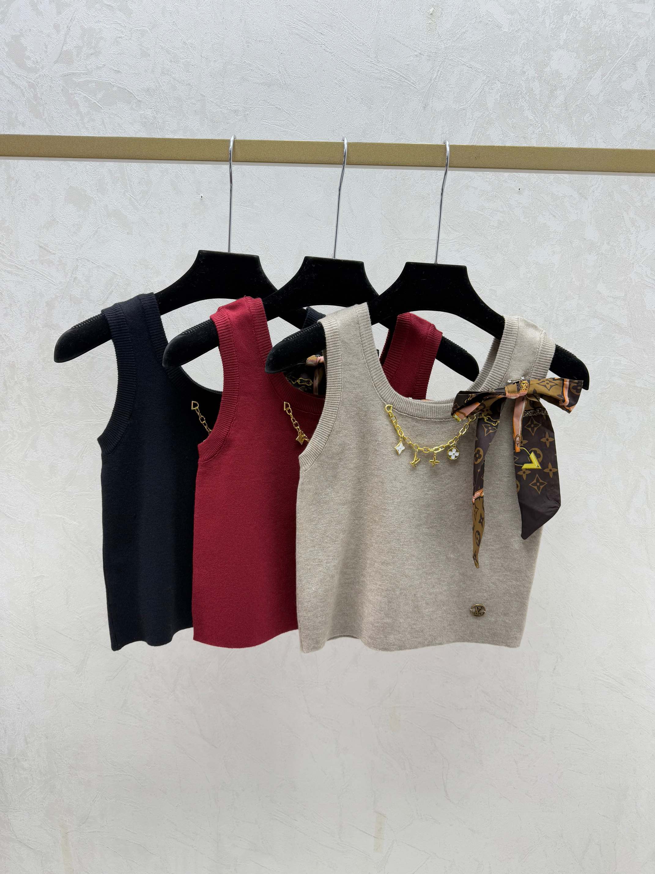 Details: Early spring new look: Color-block chain butterfly round neck knitted vest in khaki, red, and black, sizes 36-40. Fine craftsmanship and original replica quality.
