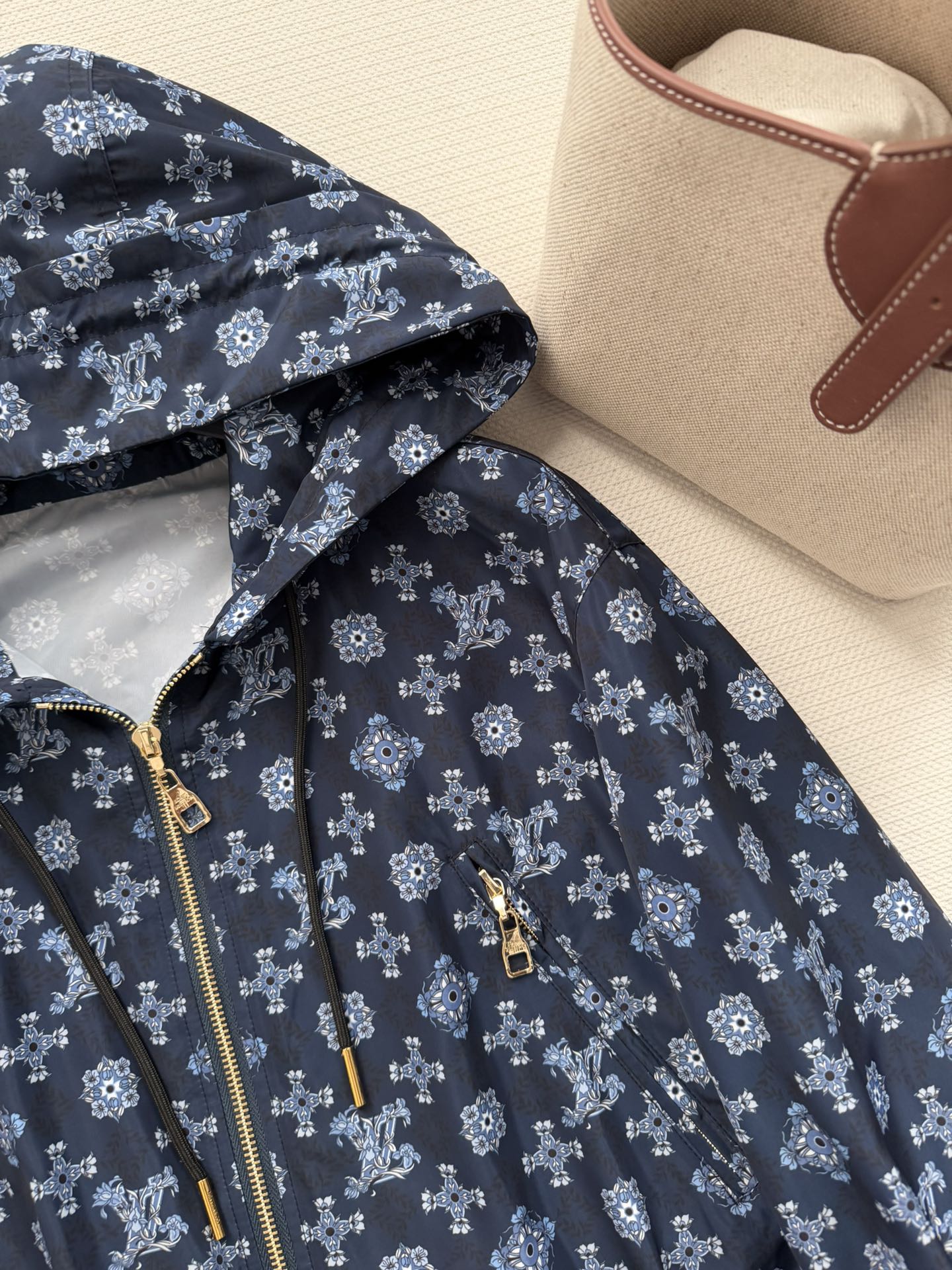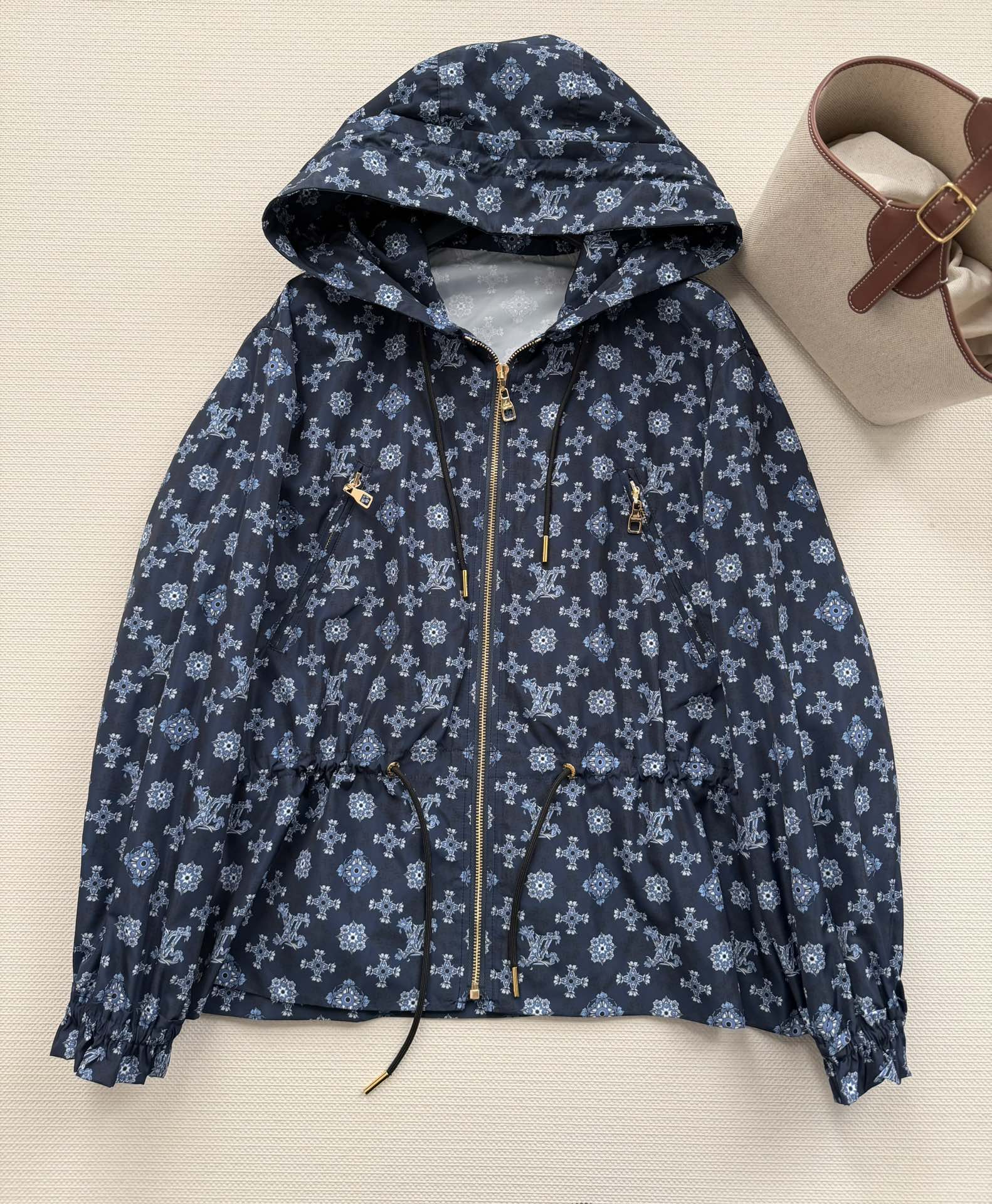 Details: New SS Drawstring Hooded Jacket with floral and letter prints, made of light nylon, adjustable waist for a stylish fit, high-end customization, and fine workmanship, ensuring original quality.