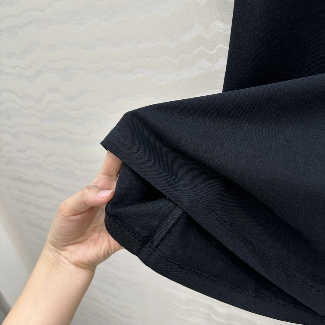 Details: Early Spring New MONOGRAM Hot-fix Rhinestone Logo Denim Patch Pocket Short Sleeve T-shirt, Soft Cotton, Classic and Chic, Flattering Fit