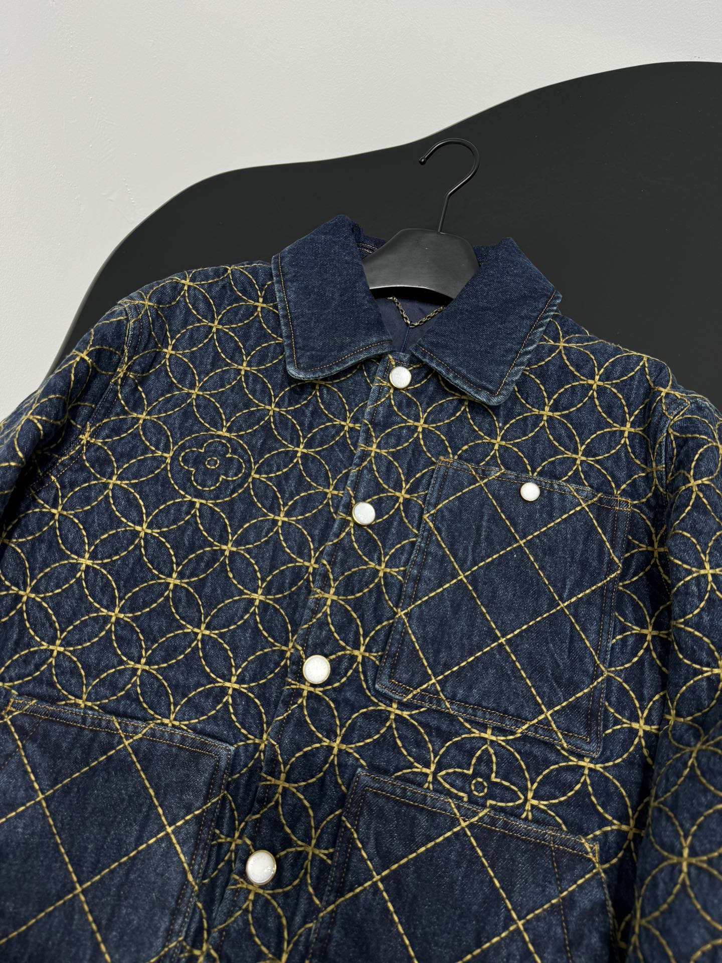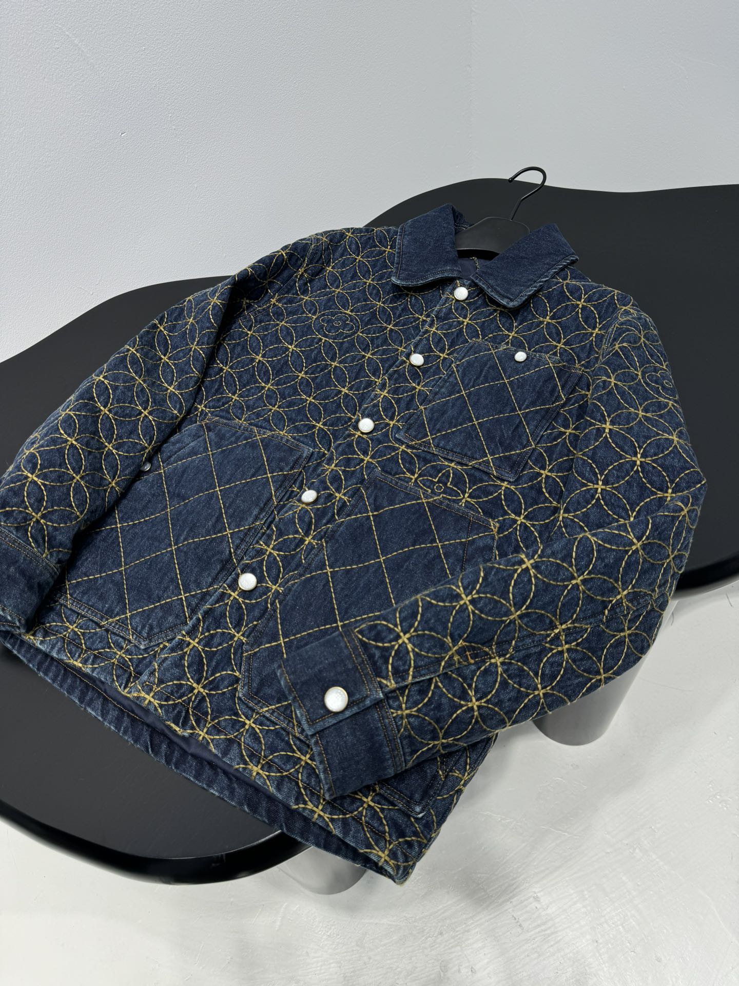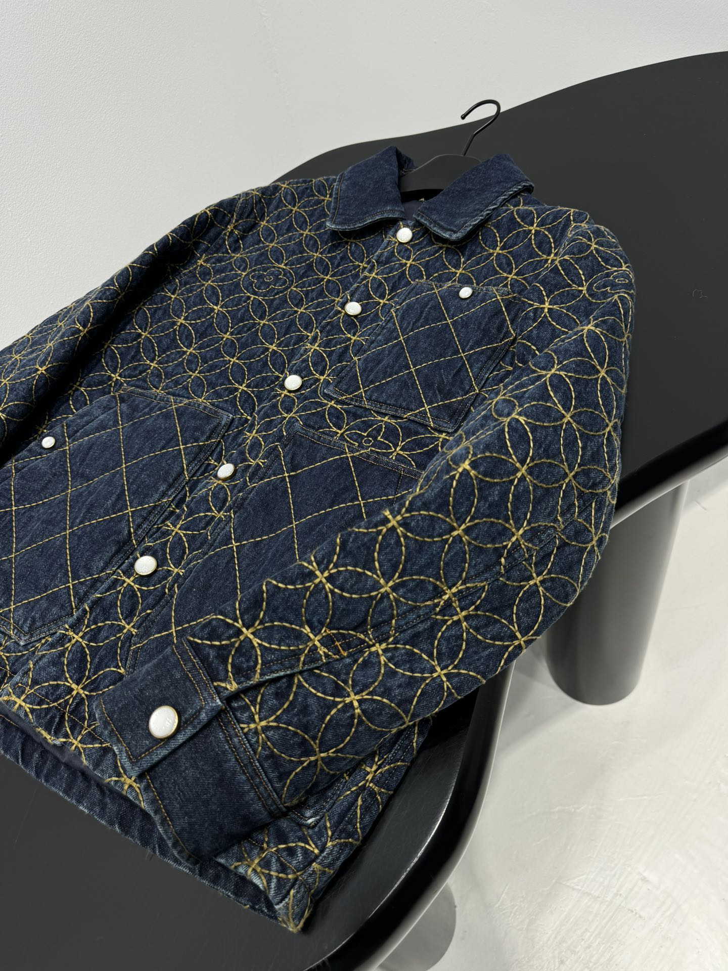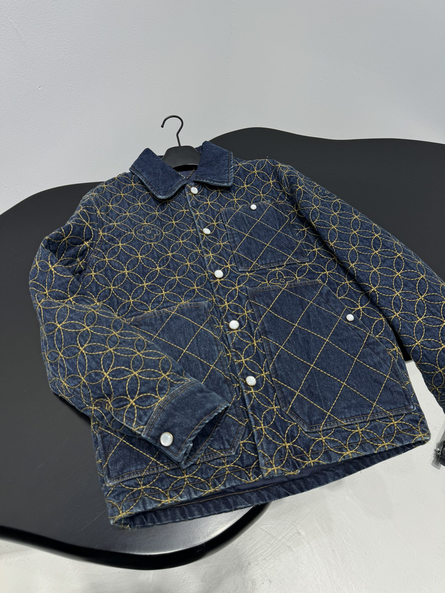 Details: New embroidered denim jacket, washed denim, full quilting, monogram pattern, unisex, high-end customization, fine workmanship