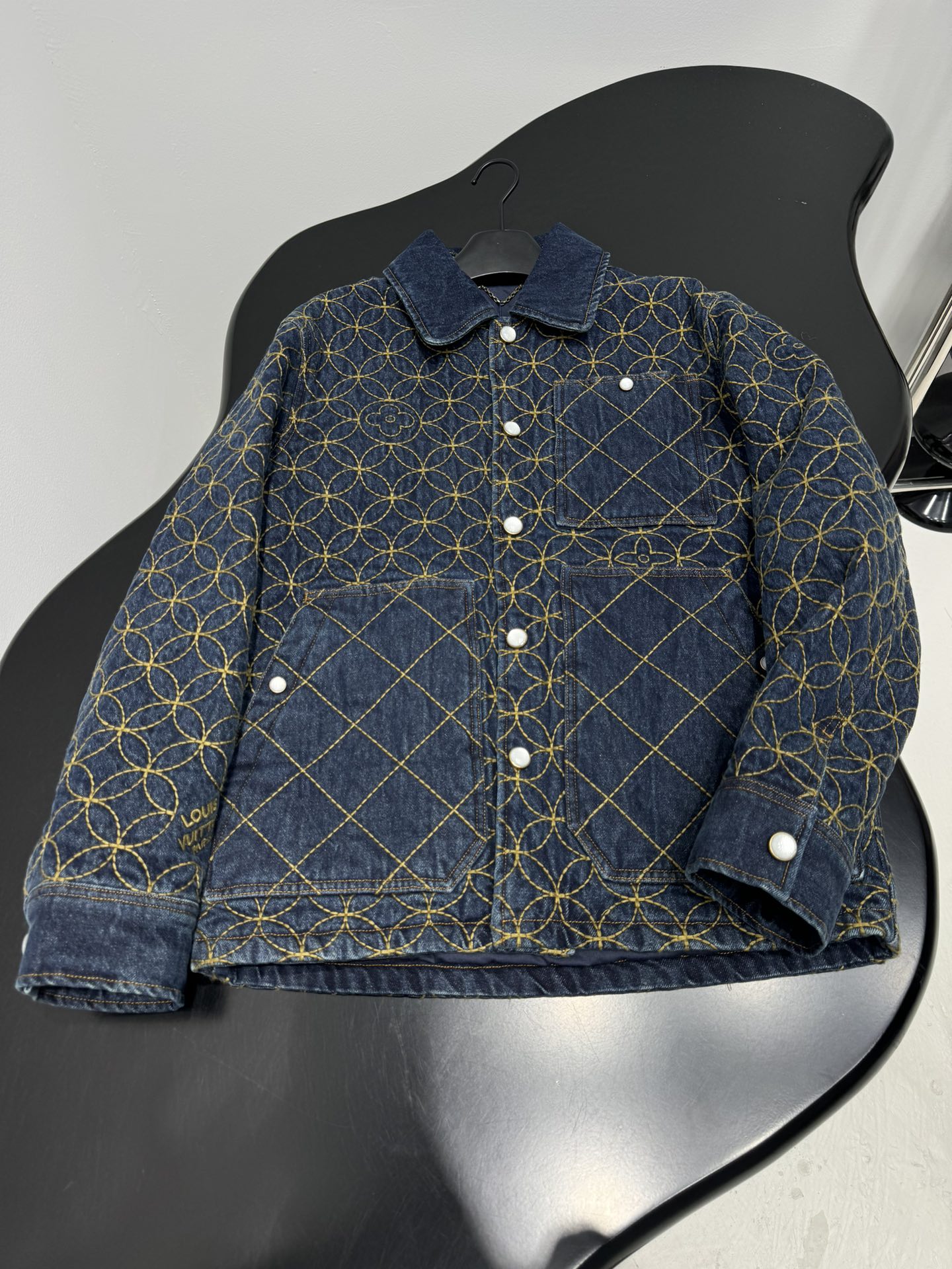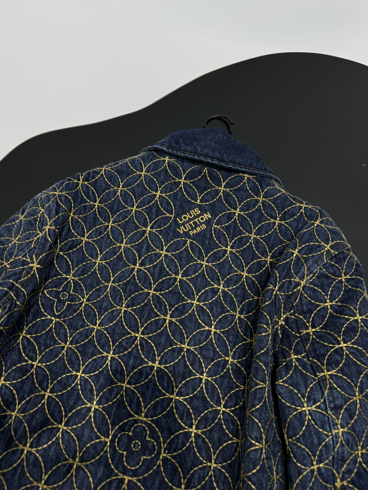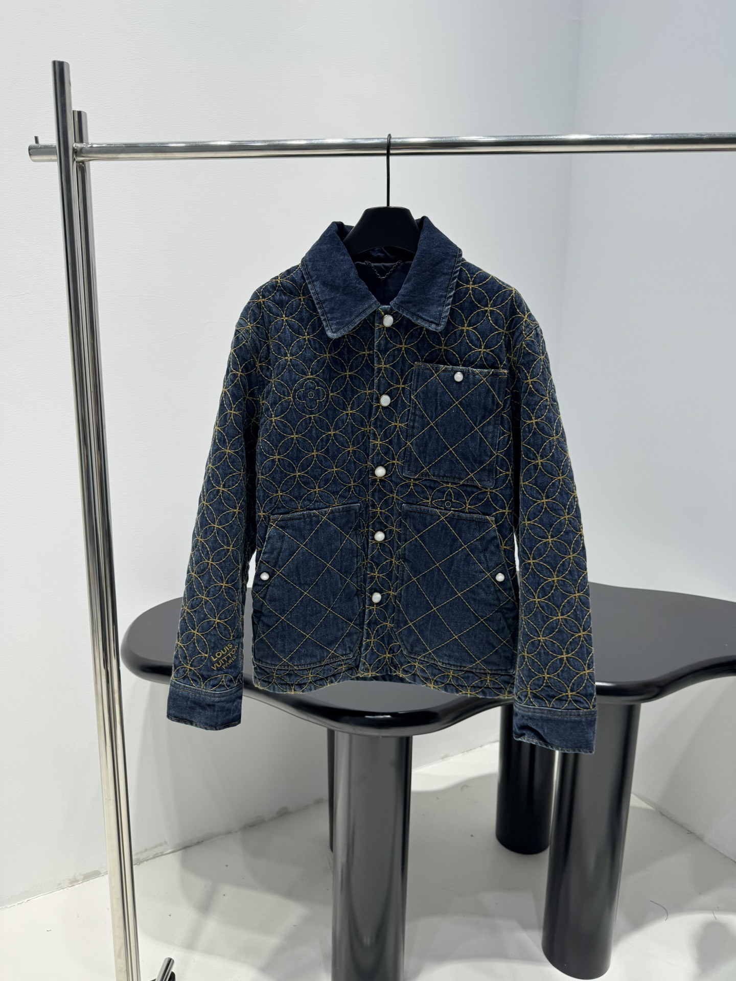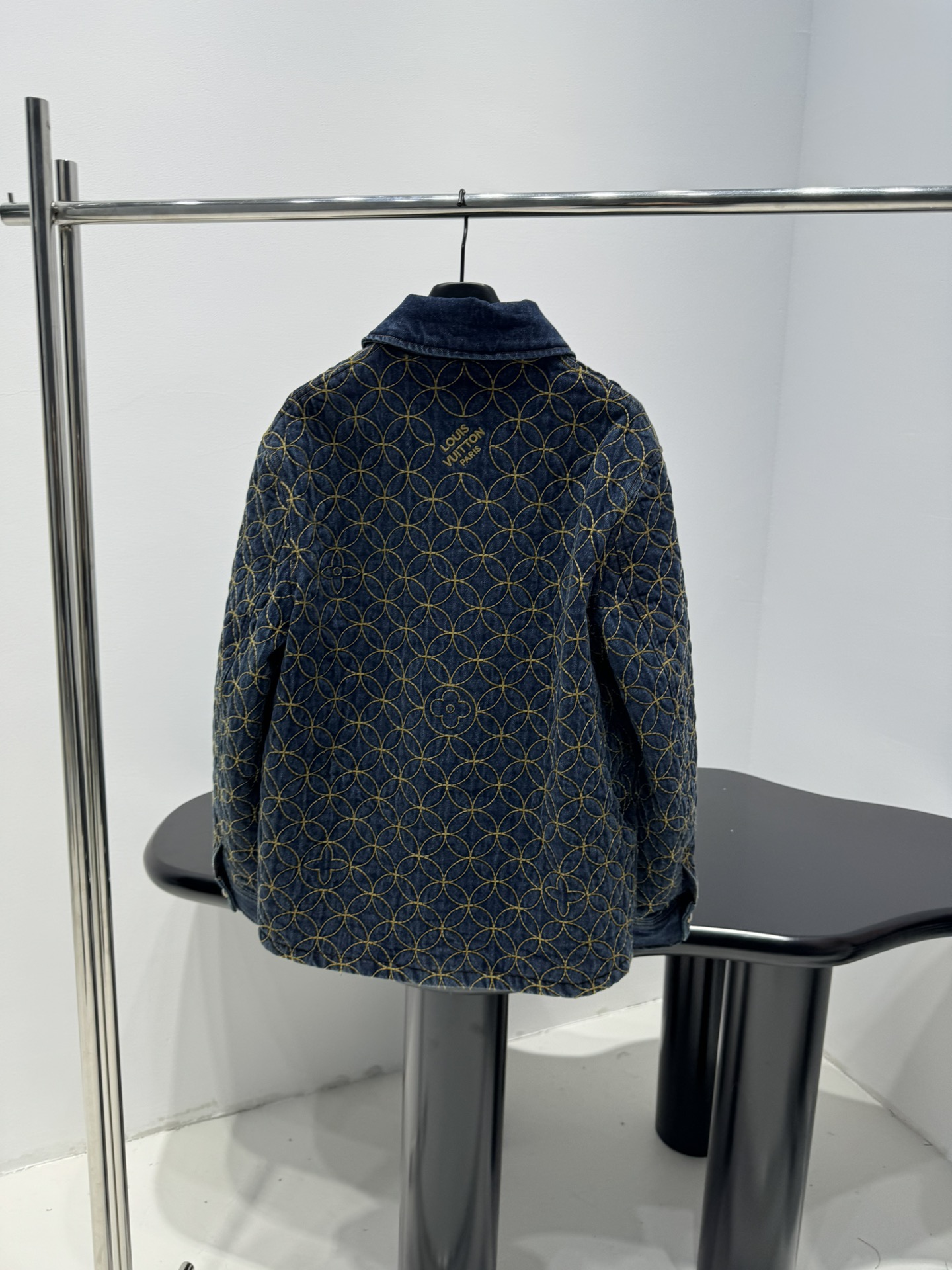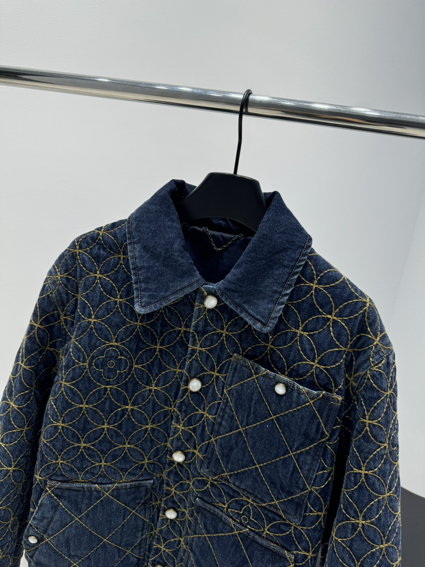 Details: New embroidered denim jacket, washed denim, full quilting, monogram pattern, unisex, high-end customization, fine workmanship