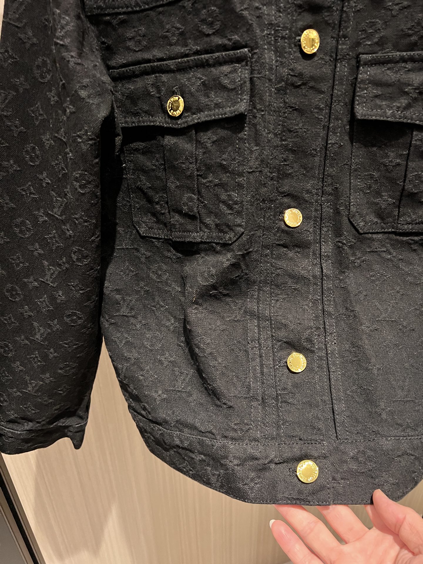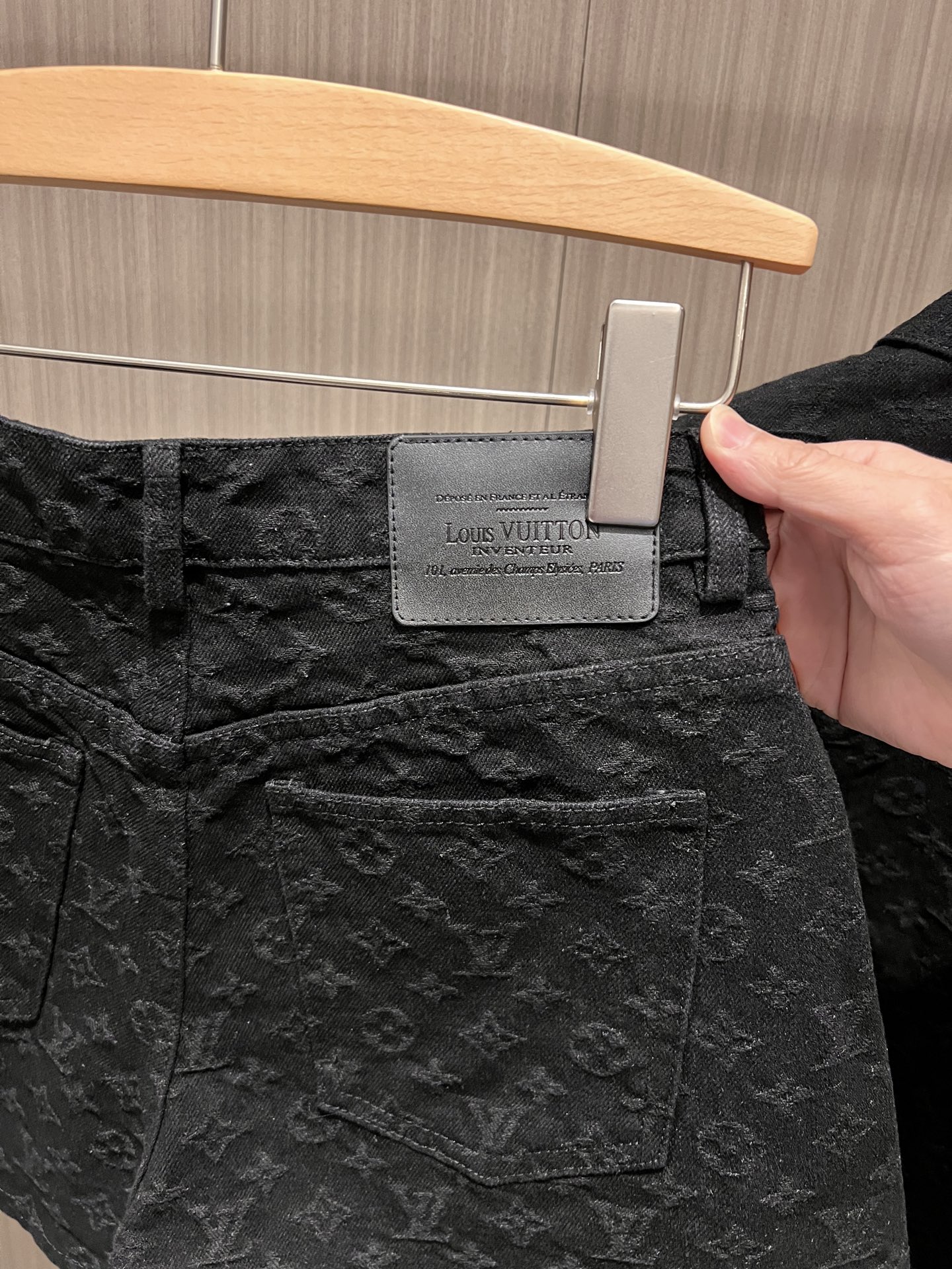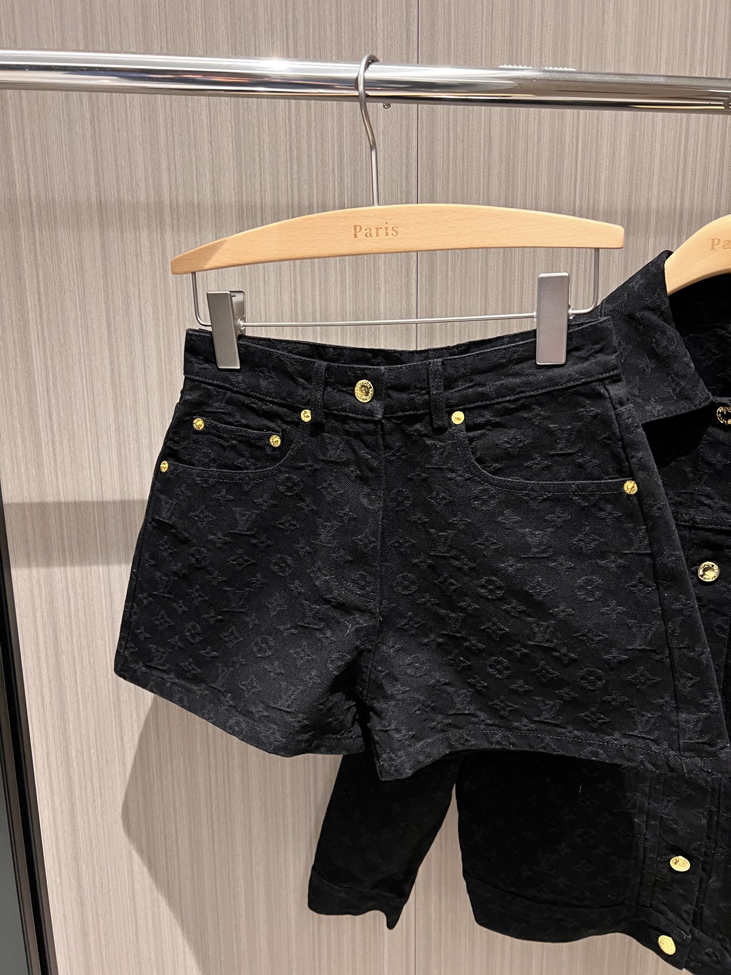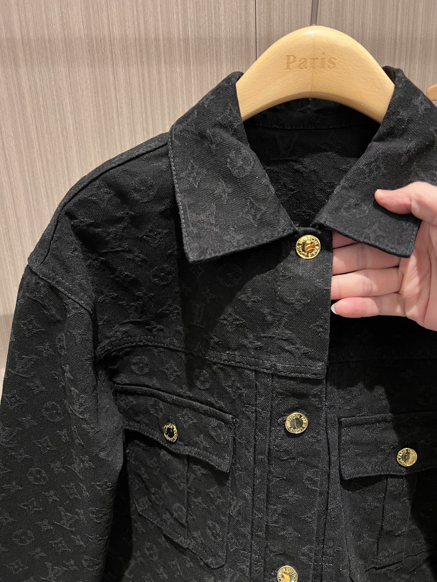 Details: New floral black denim jacket and shorts, fashion - versatile with die - cast hardware, suitable for all ages