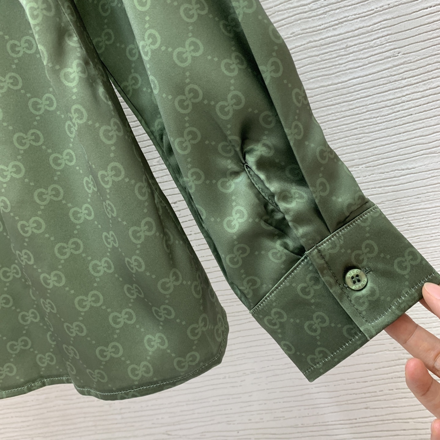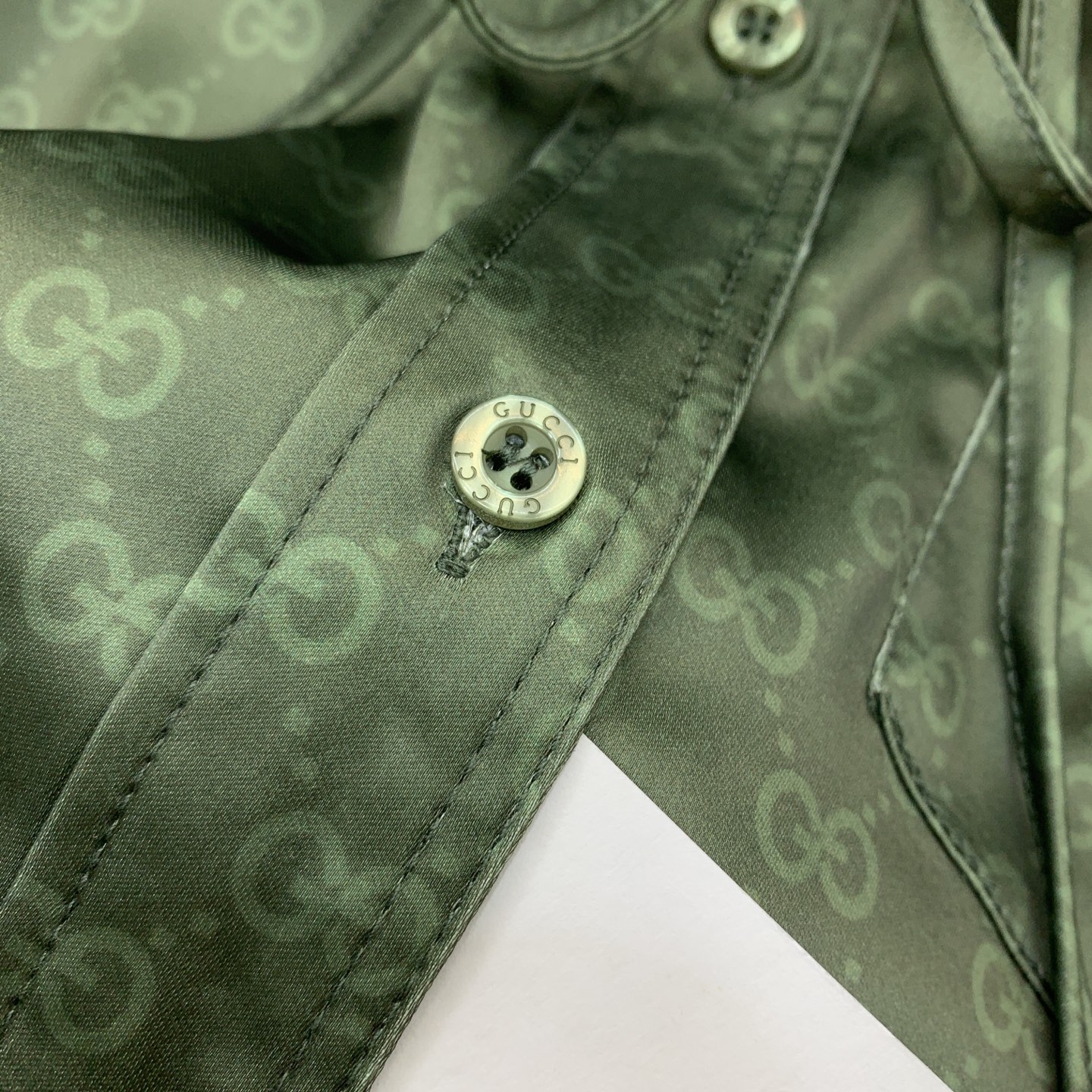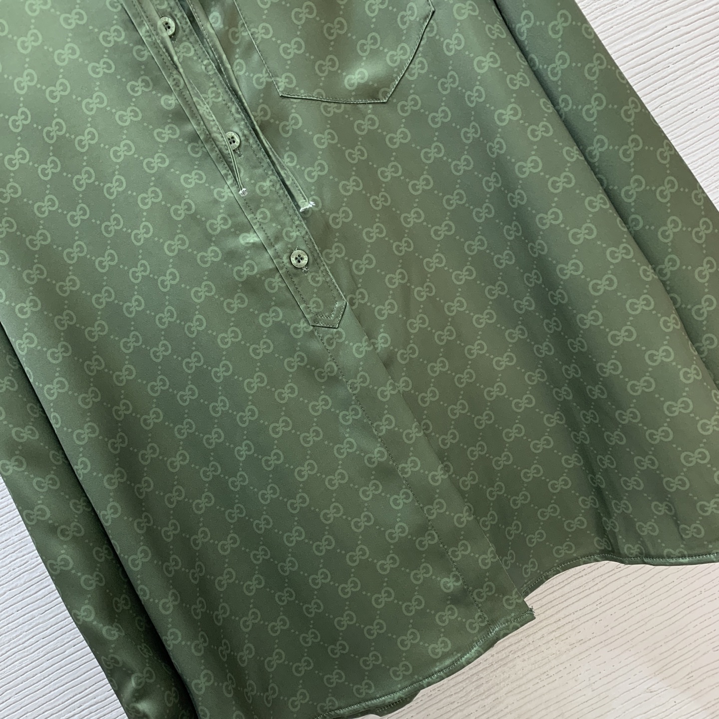 Details: New GG-printed shirt with logo buttons, green, loose, high-end custom, fine workmanship
