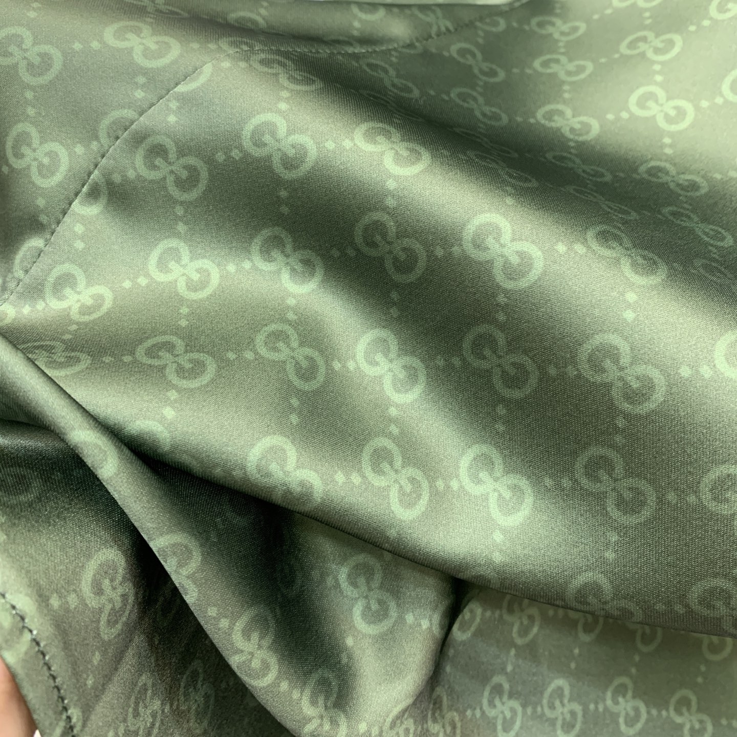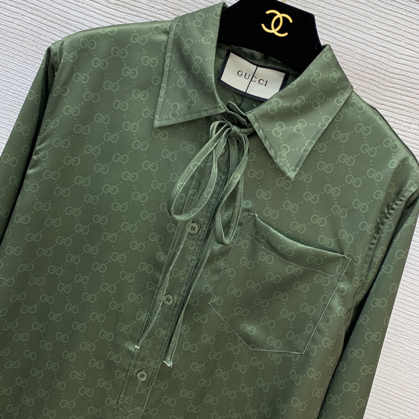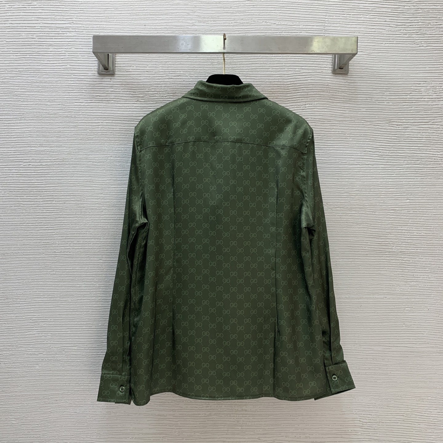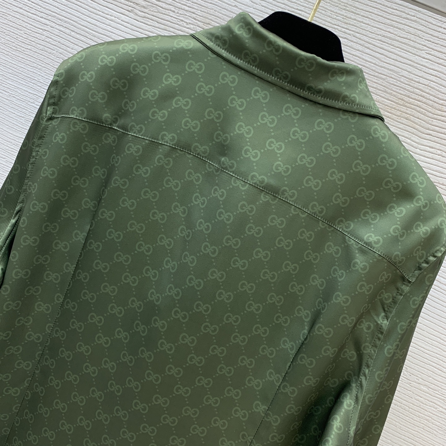 Details: New GG-printed shirt with logo buttons, green, loose, high-end custom, fine workmanship